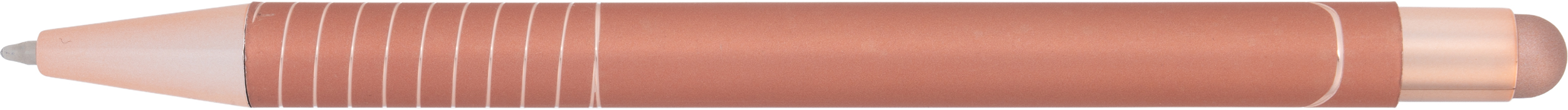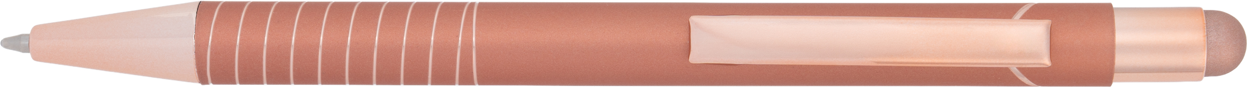 Długopis z końcówką do ekranów dotykowcyh touch-pen. Posiada błyszczące, lustrzane wykończenie.