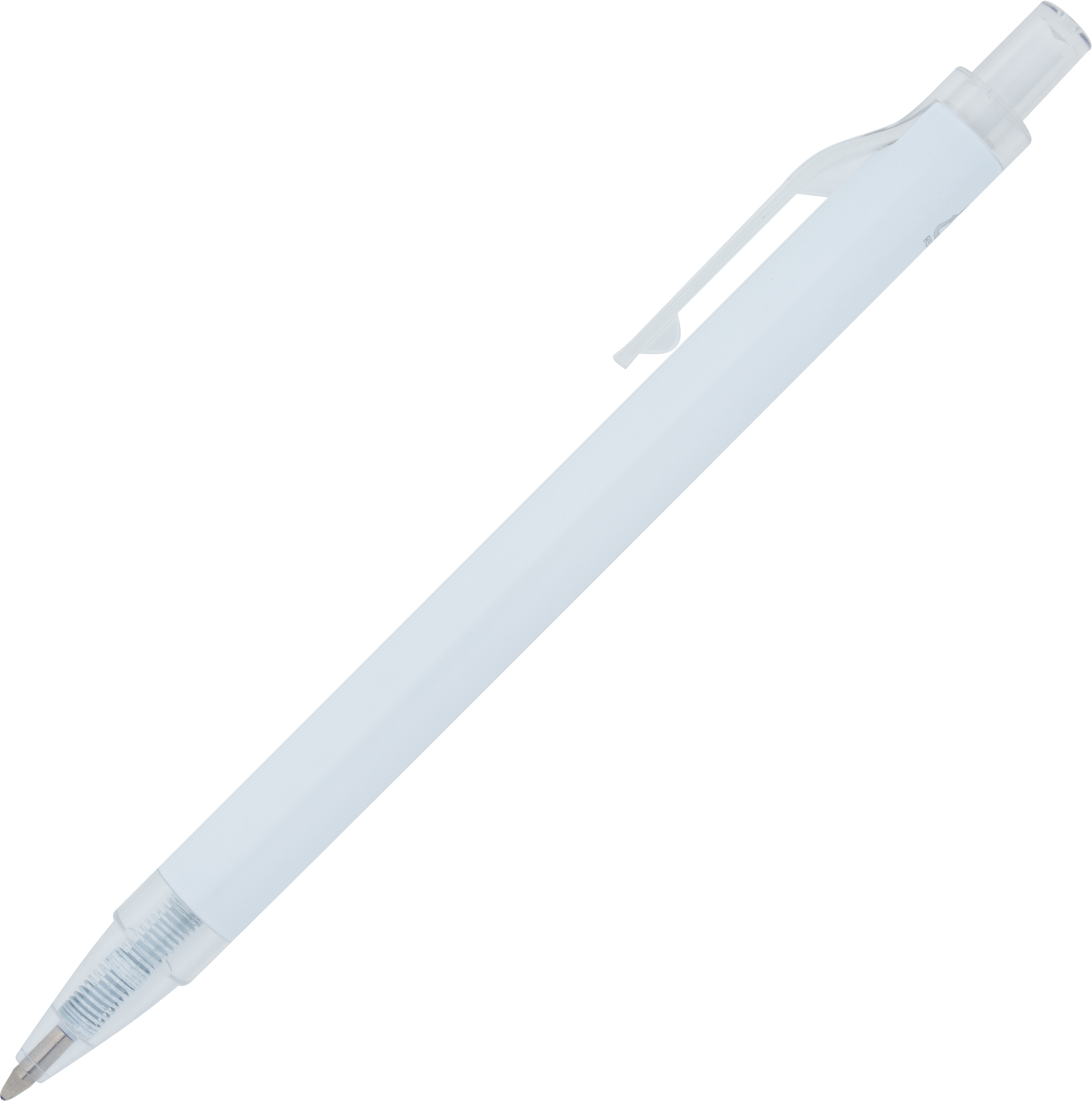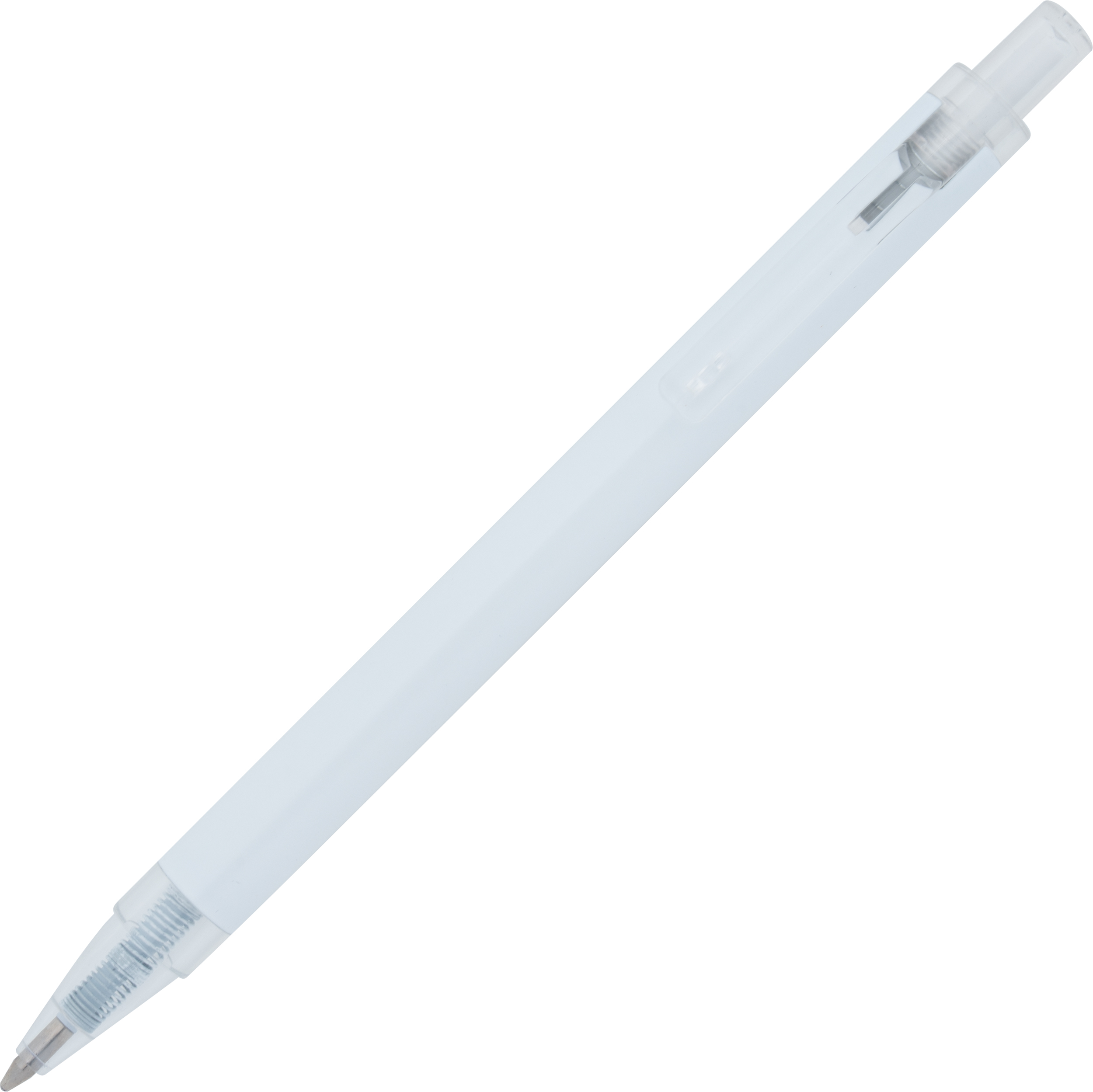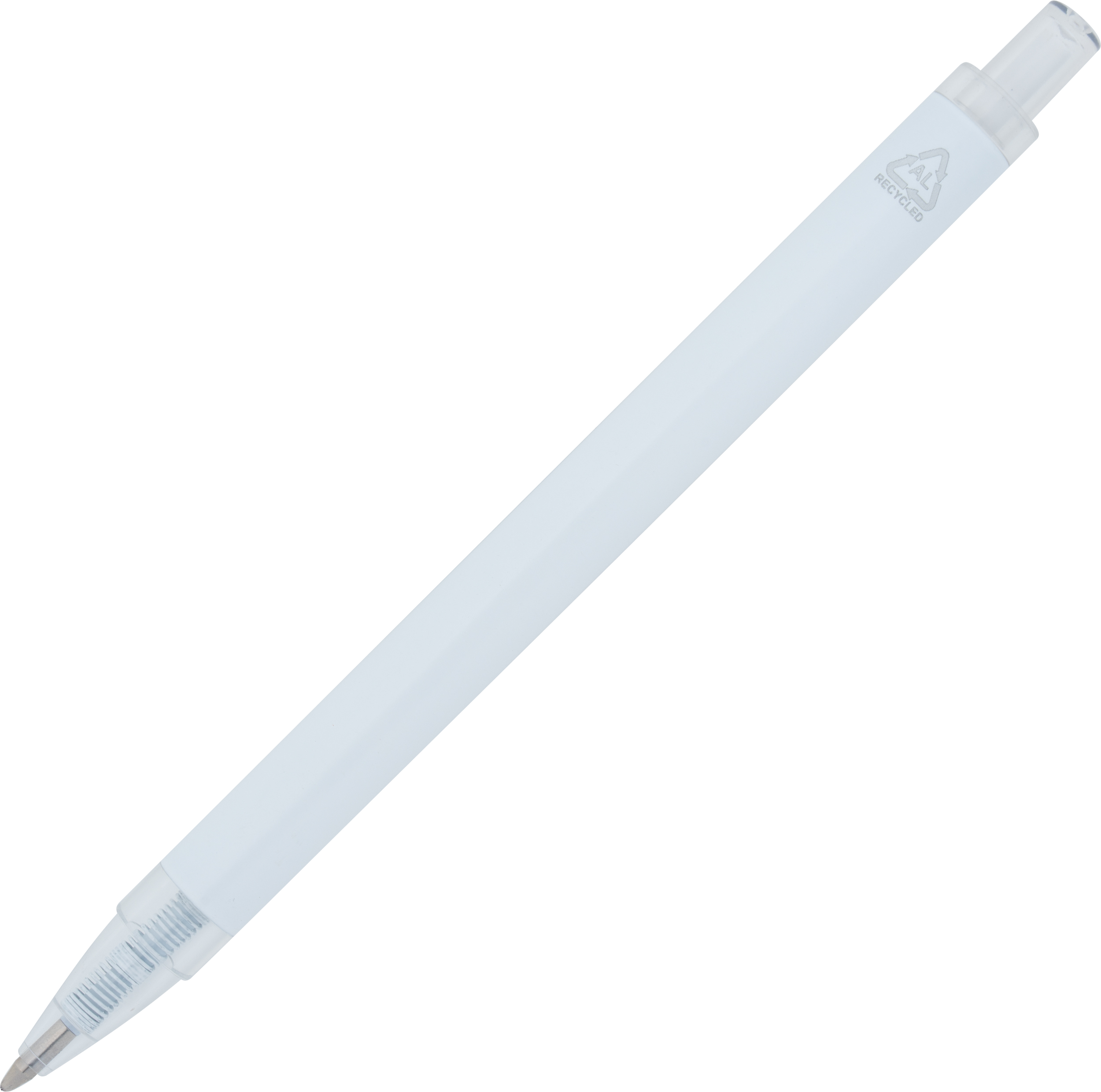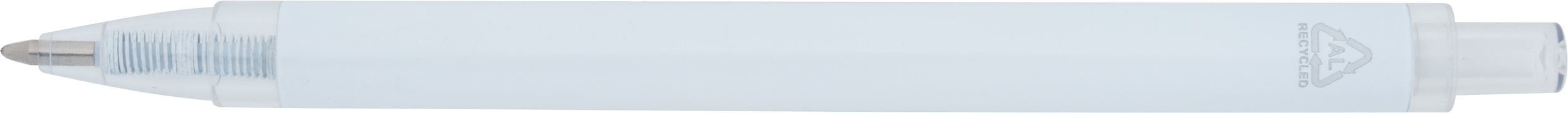 Długopis wykonany z aluminium z recyklingu i RPET, z przezroczystym klipsem i niebieskim wkładem.