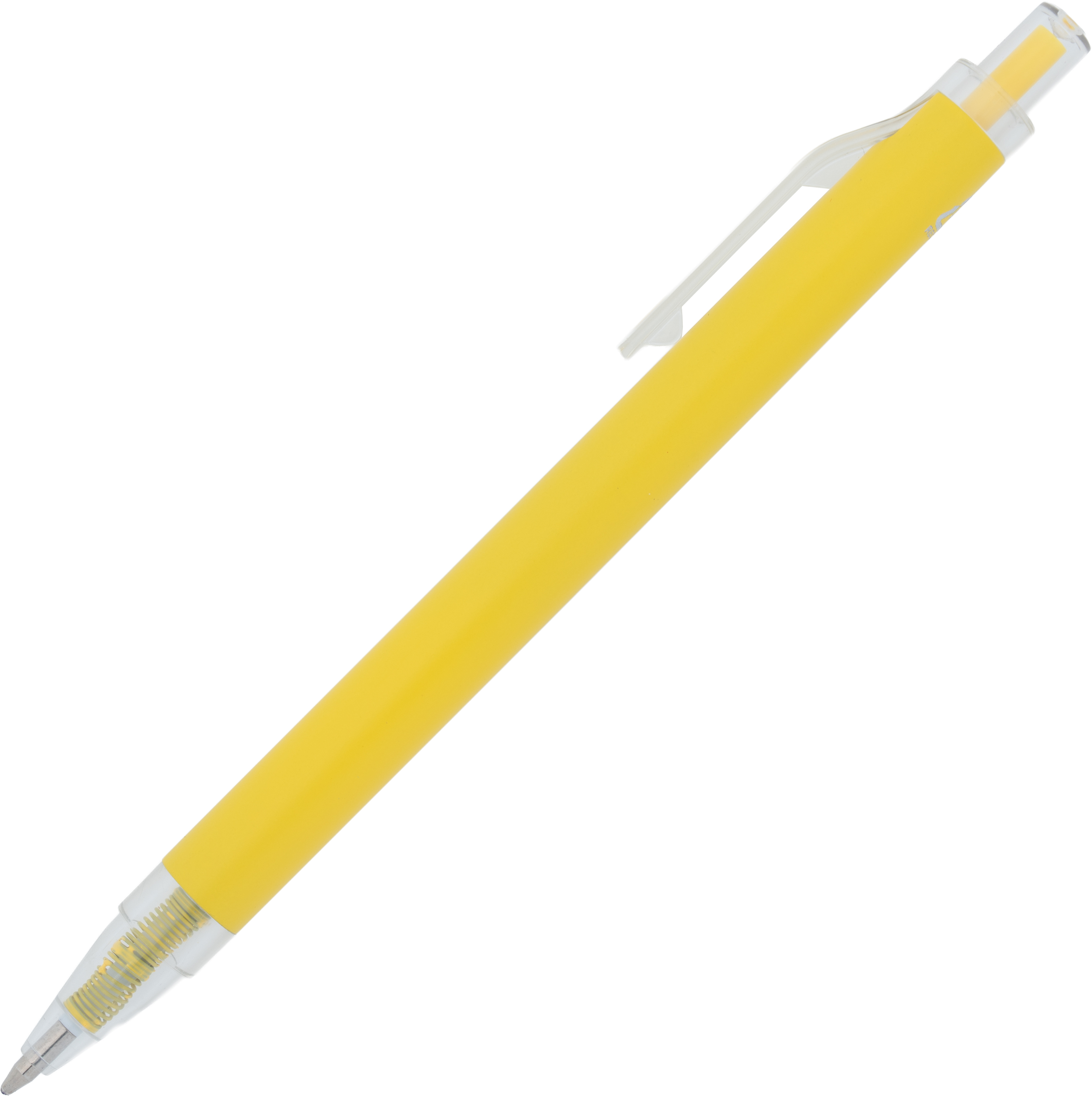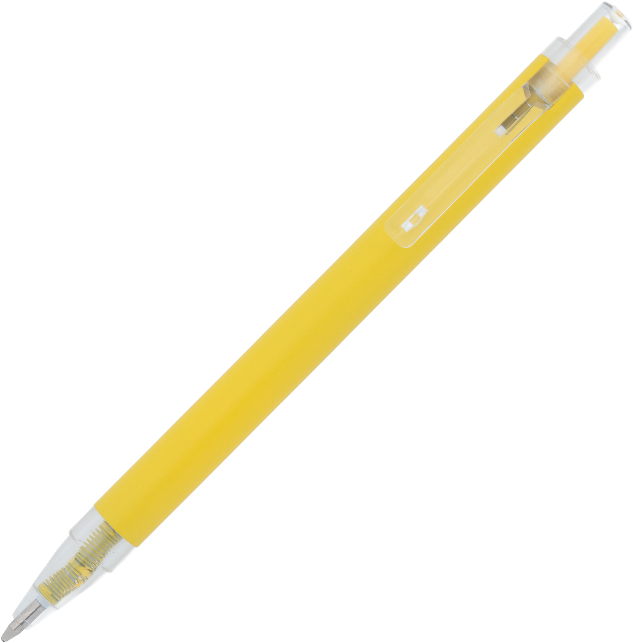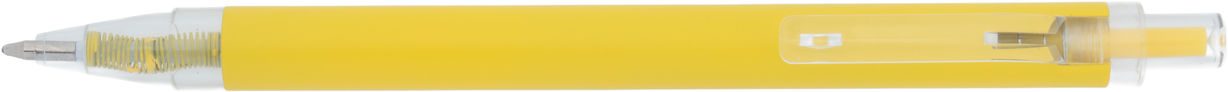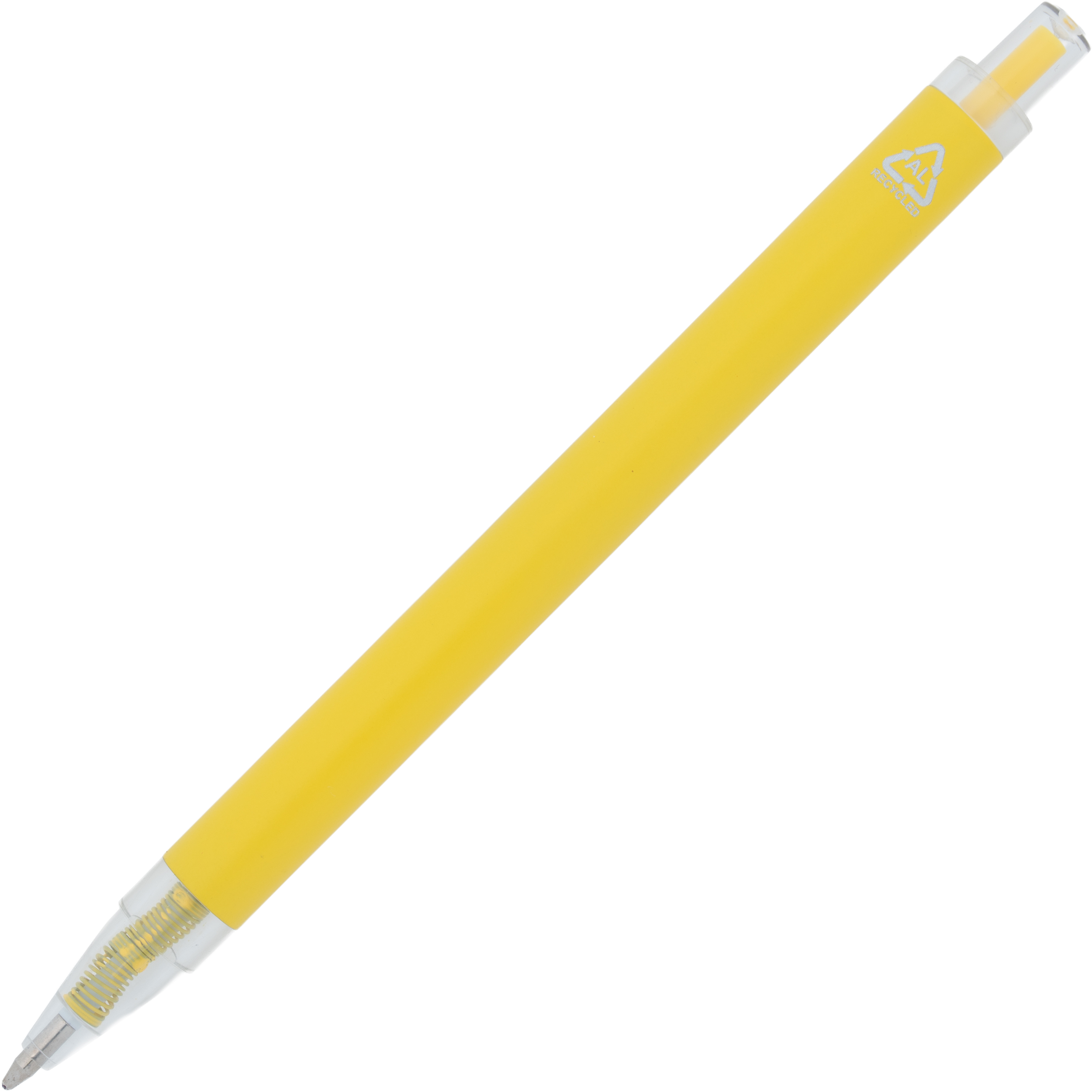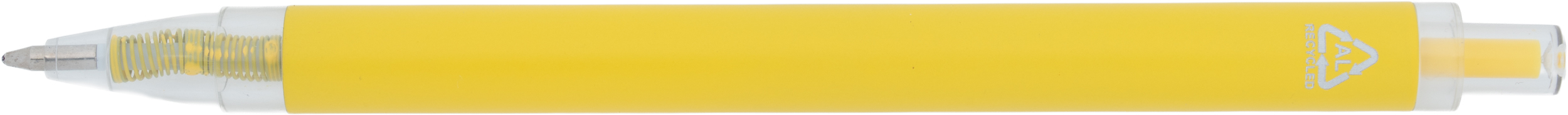 Długopis wykonany z aluminium z recyklingu i RPET, z przezroczystym klipsem i niebieskim wkładem.