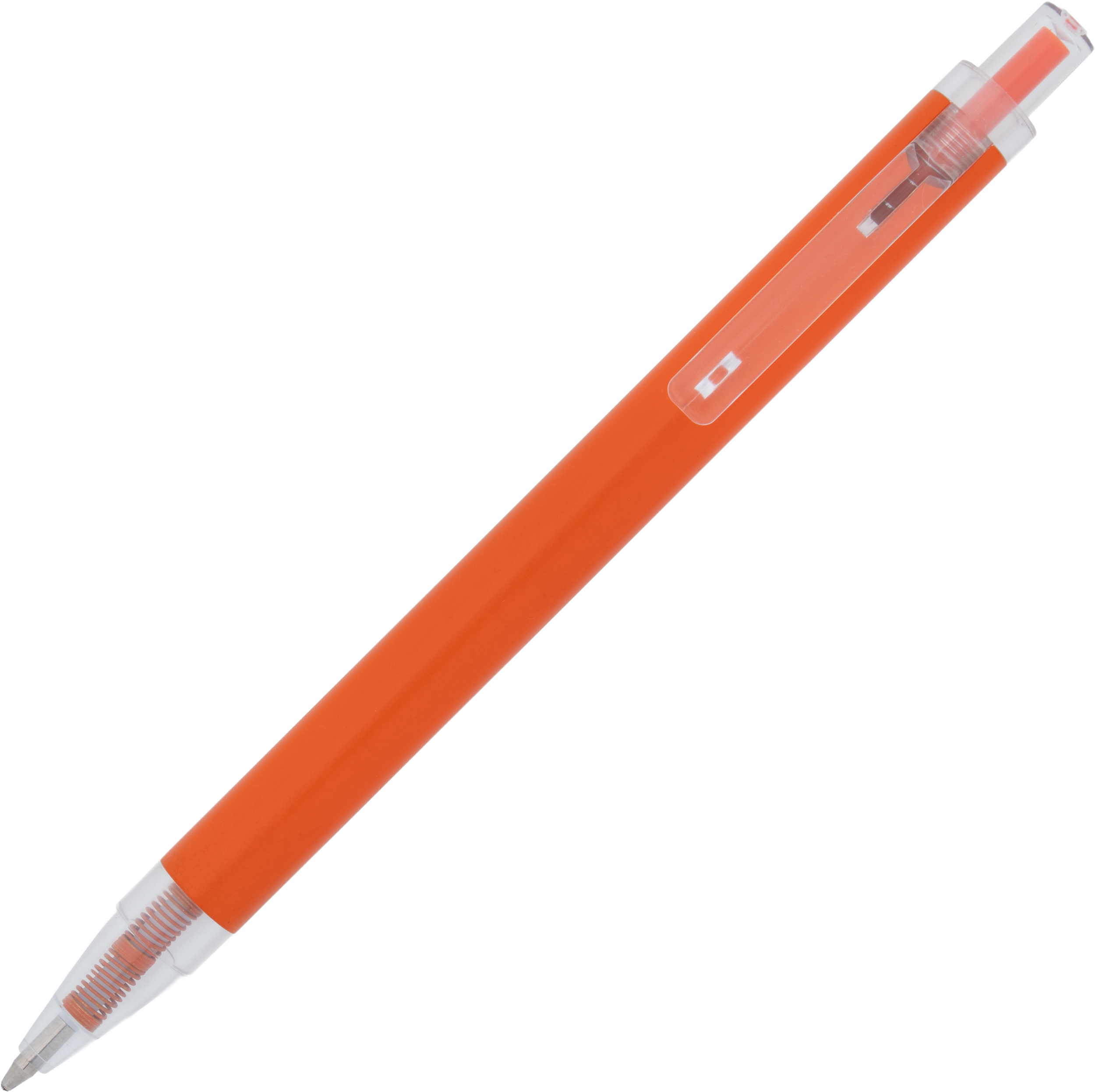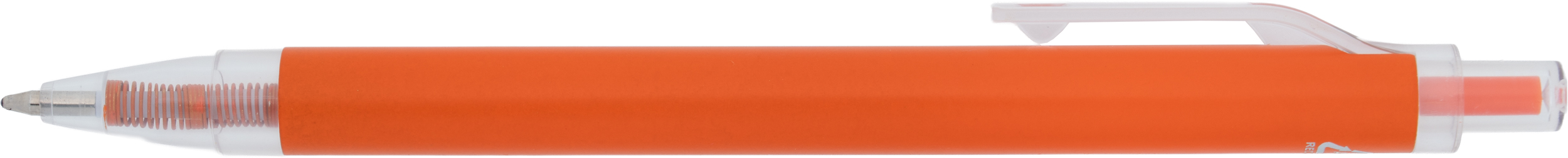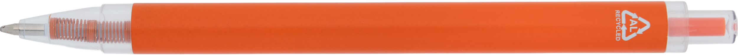 Długopis wykonany z aluminium z recyklingu i RPET, z przezroczystym klipsem i niebieskim wkładem.