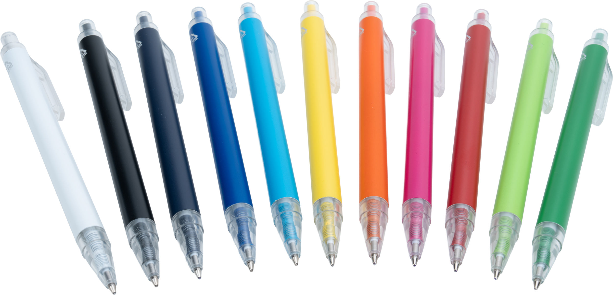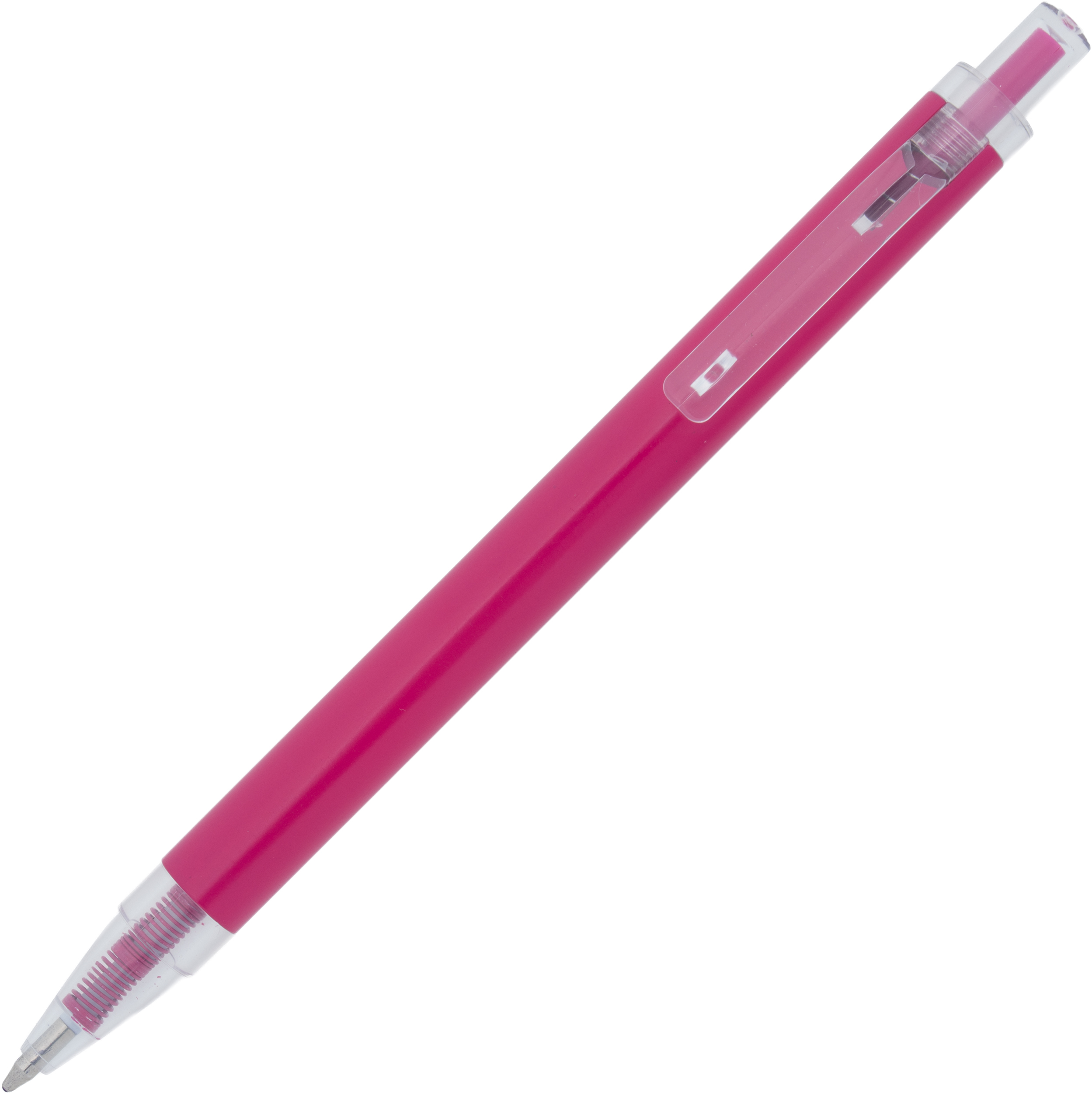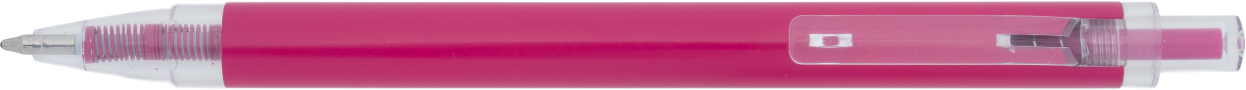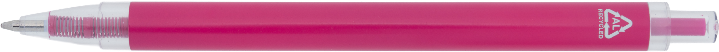 Długopis wykonany z aluminium z recyklingu i RPET, z przezroczystym klipsem i niebieskim wkładem.