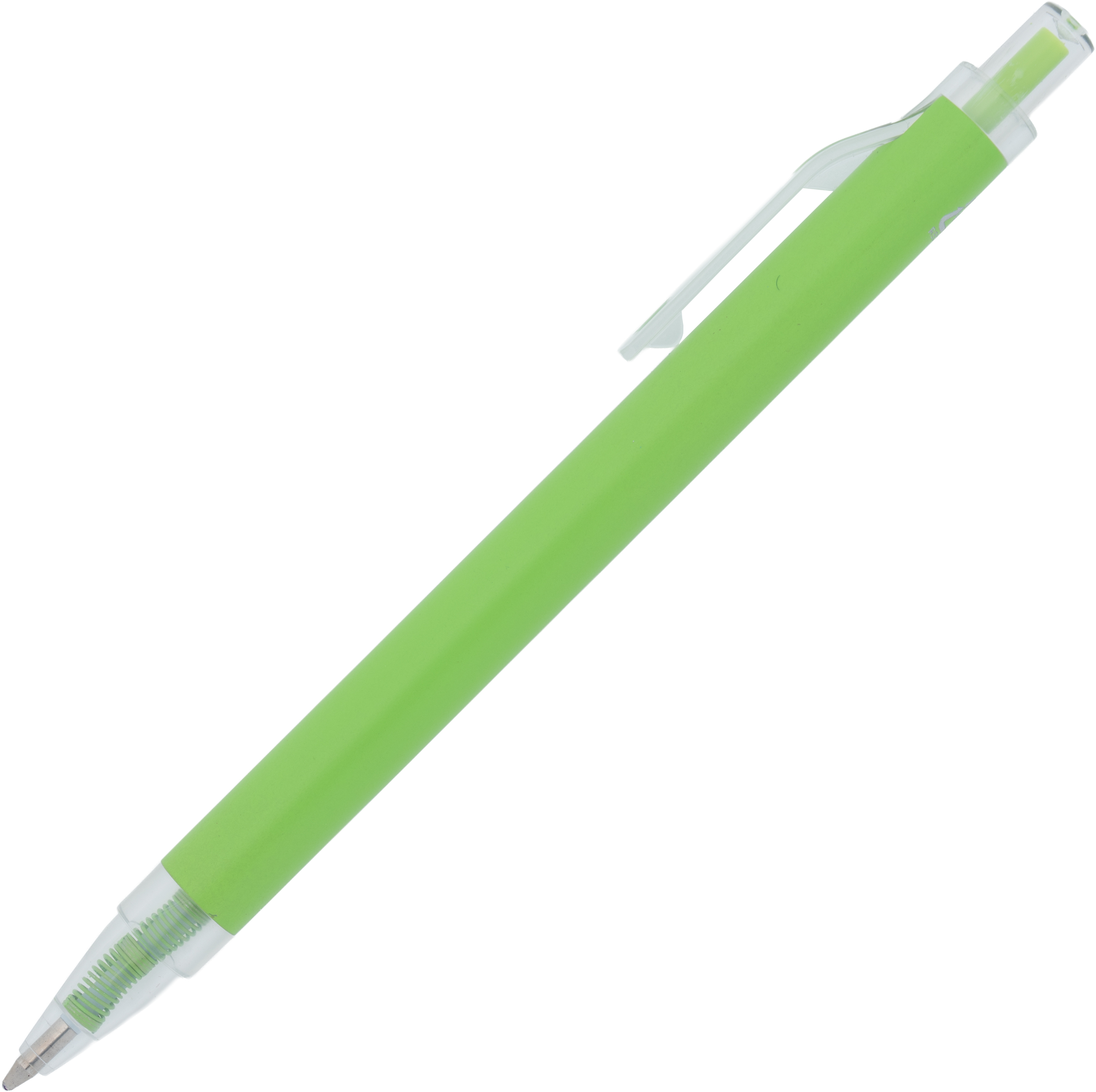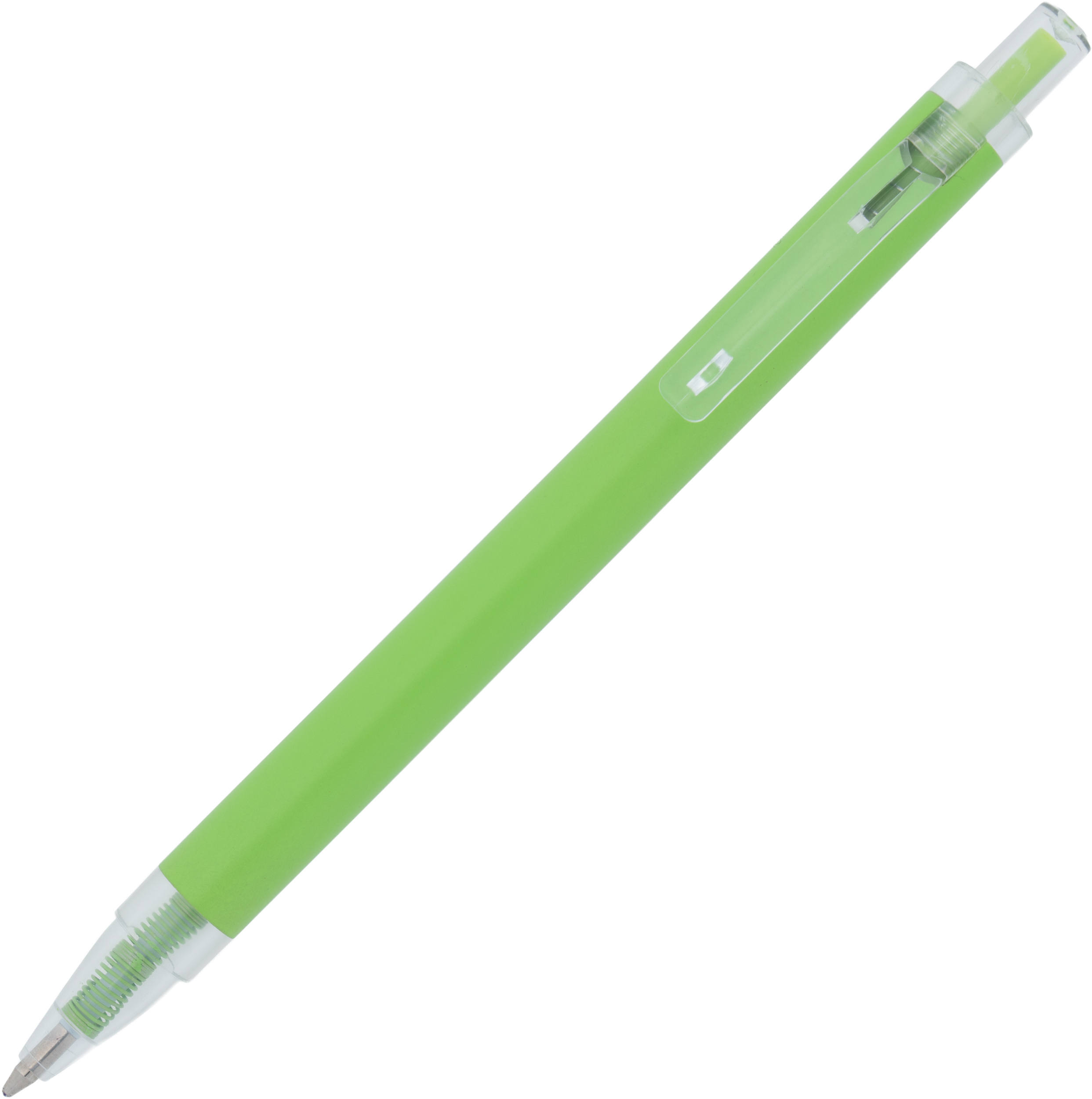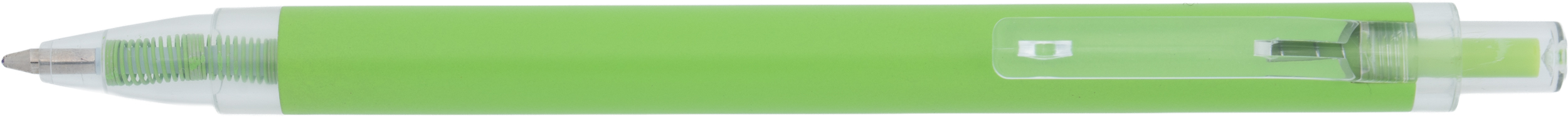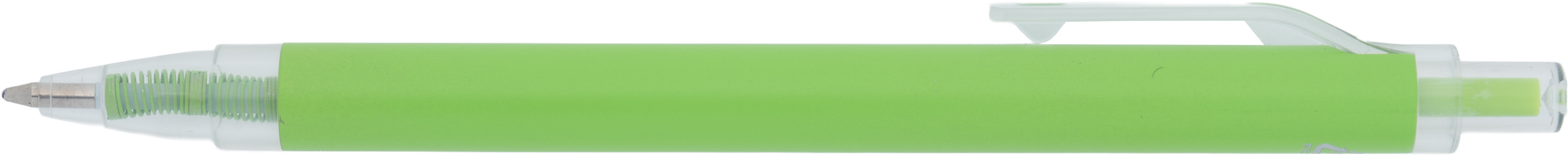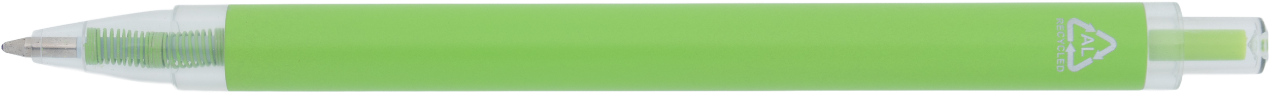 Długopis wykonany z aluminium z recyklingu i RPET, z przezroczystym klipsem i niebieskim wkładem.