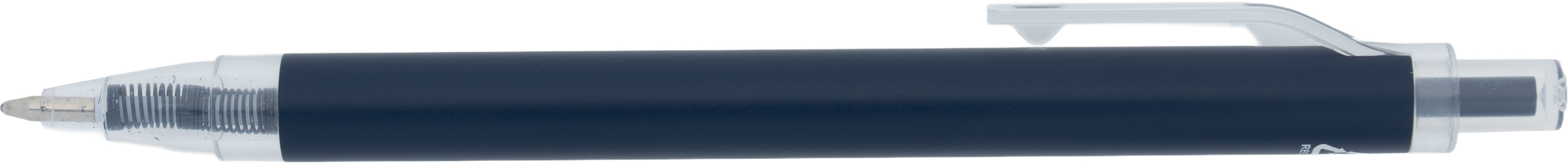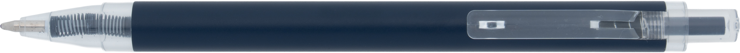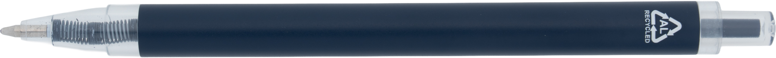 Długopis wykonany z aluminium z recyklingu i RPET, z przezroczystym klipsem i niebieskim wkładem.