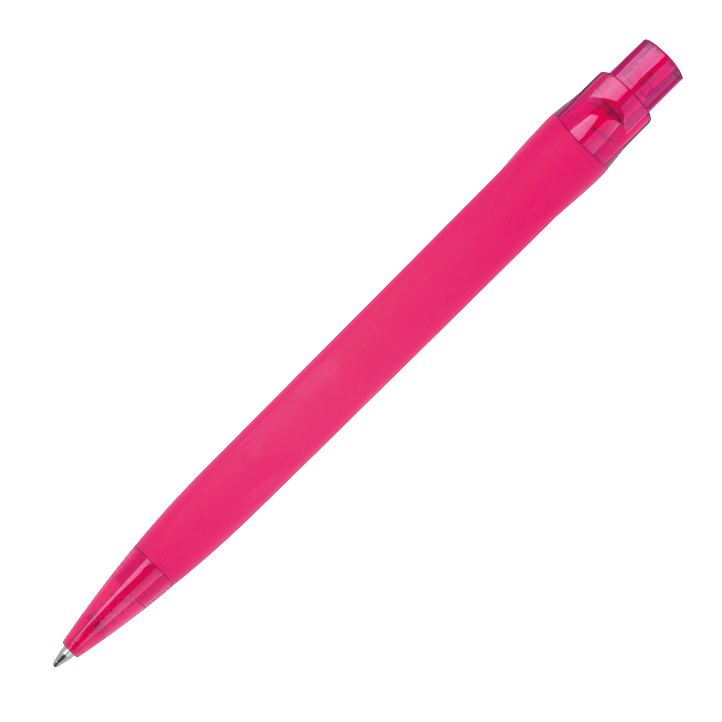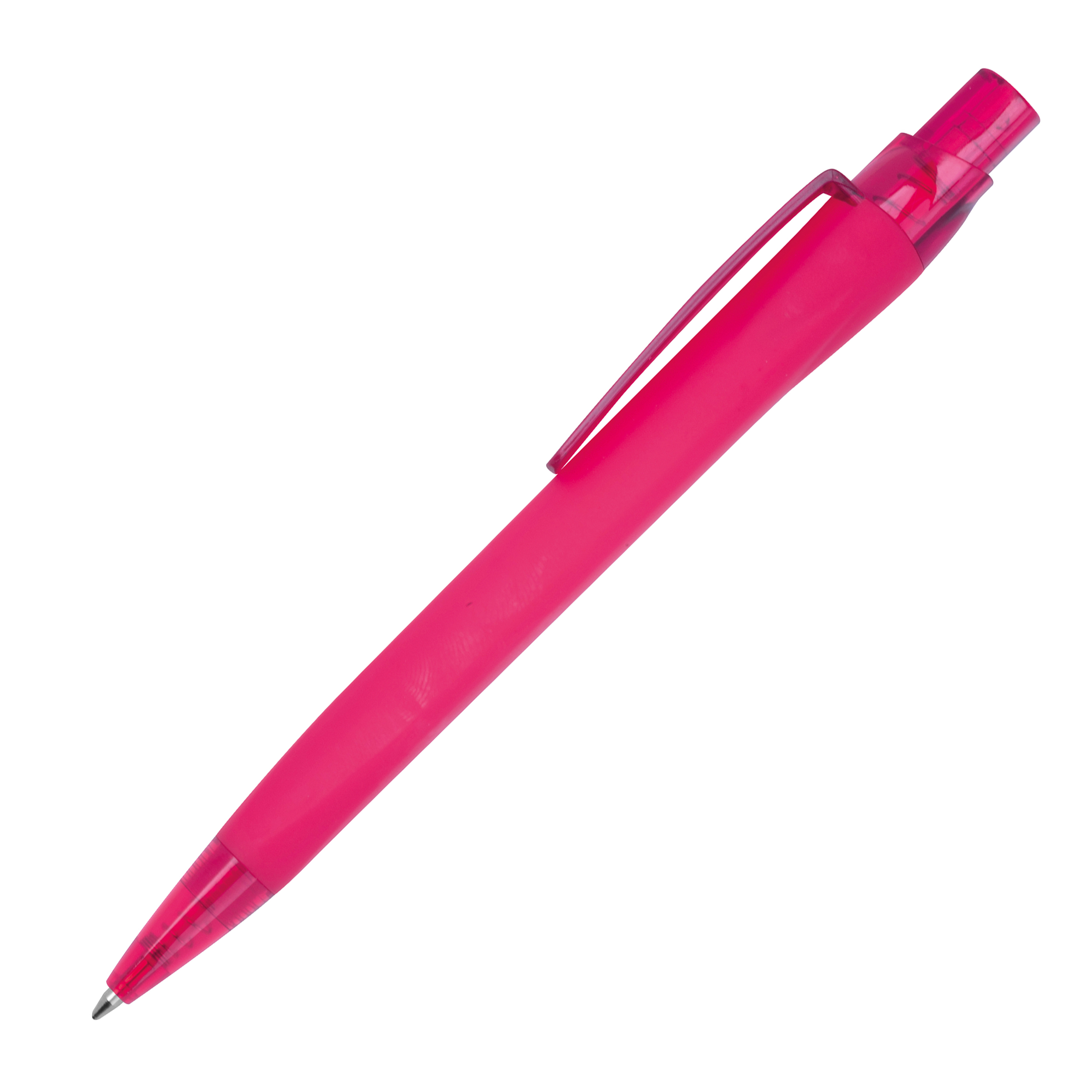 Plastikowy długopis z gumową powłoką i niebieskim wkładem (o długości pisania 800 m).