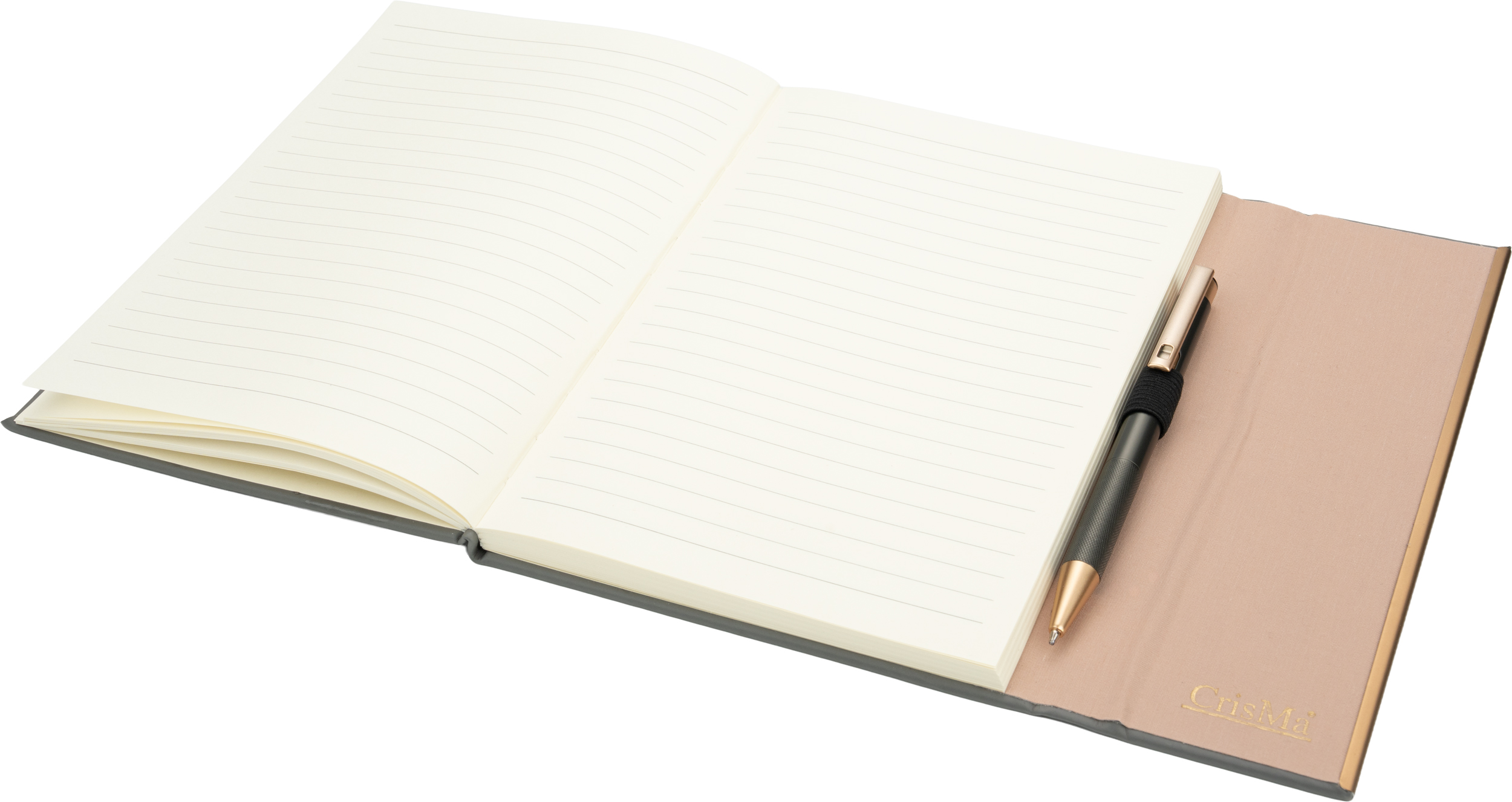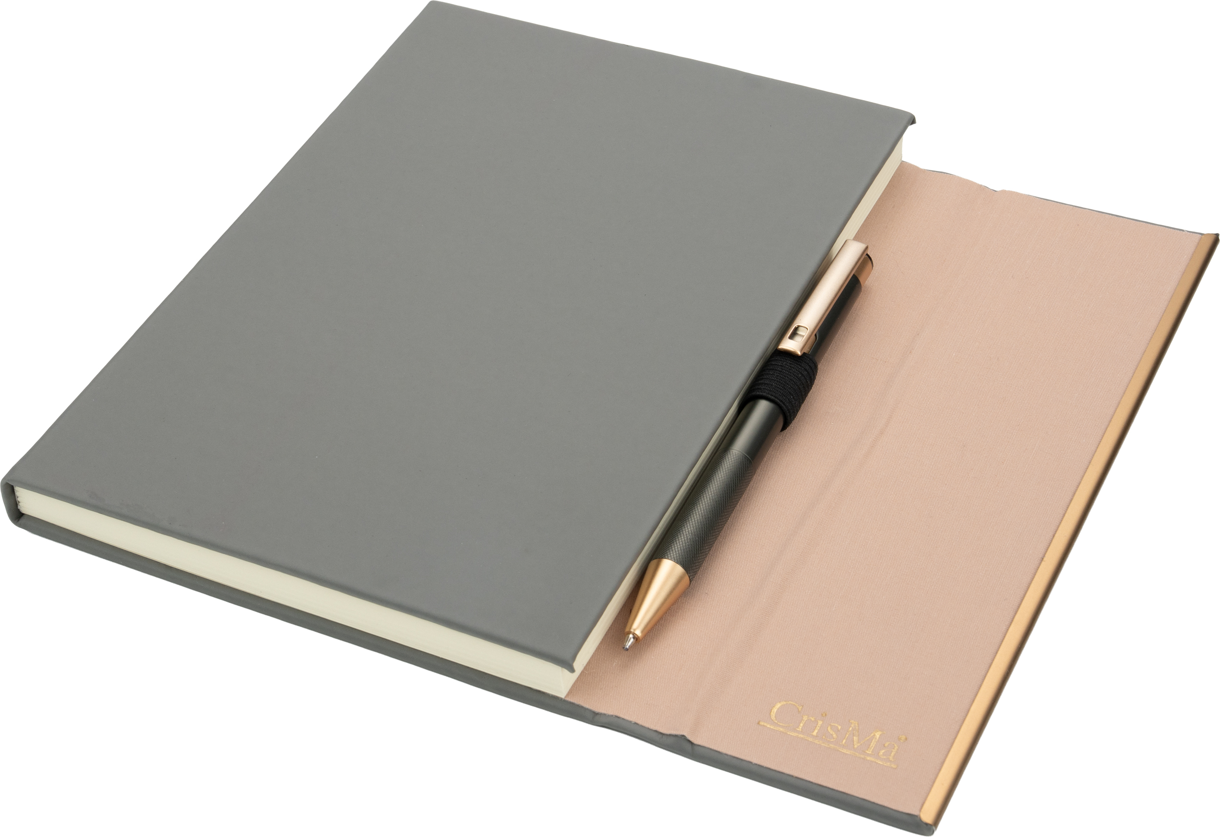 Notatnik A5 ze skóry z recyklingu, w linie z długopisem metalowym CrisMa MAGGIE MC2476377