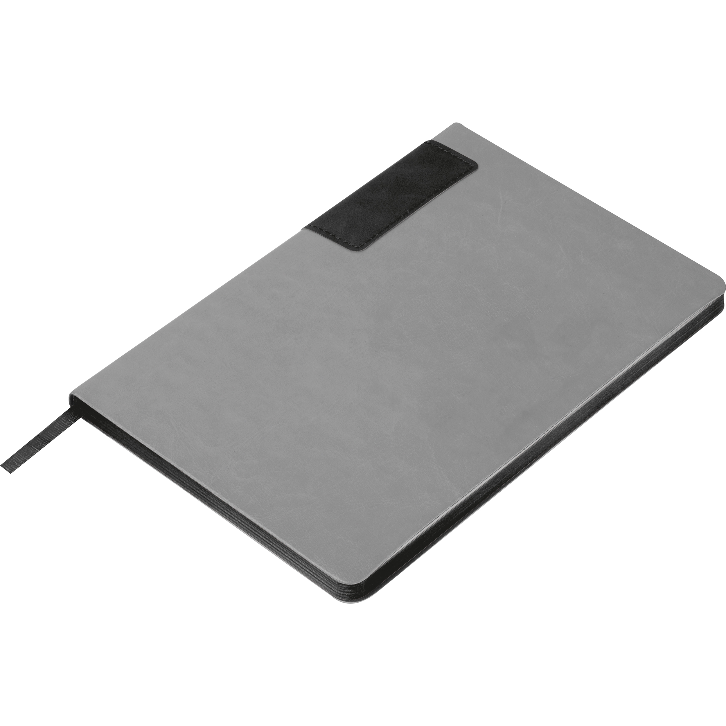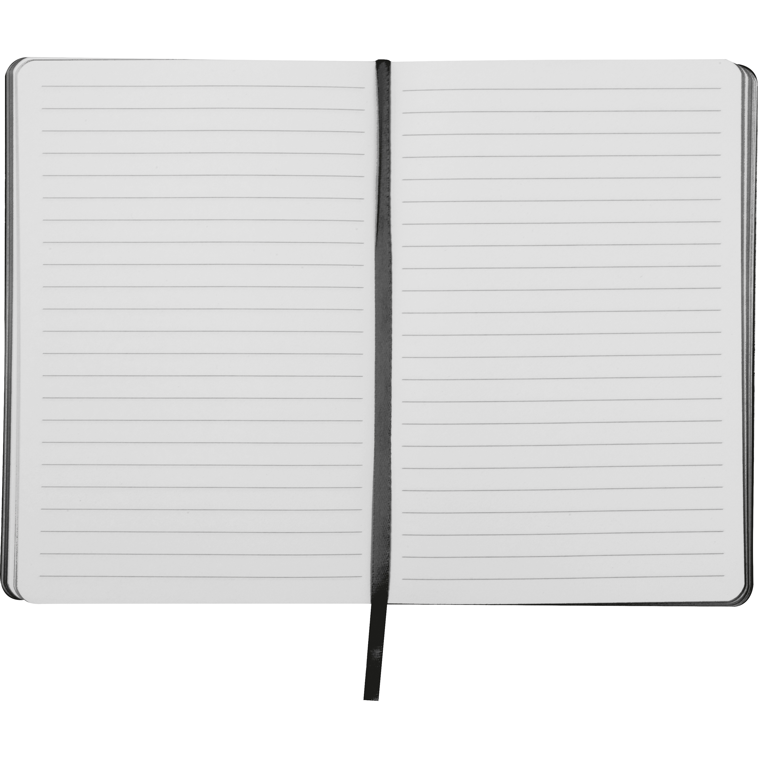 Notes z okładką z PU z recyklingu, 160 stronami w linie, wykonanymi z papieru z recyklingu, z kolorowymi krawędziami i materiałową zakładką.