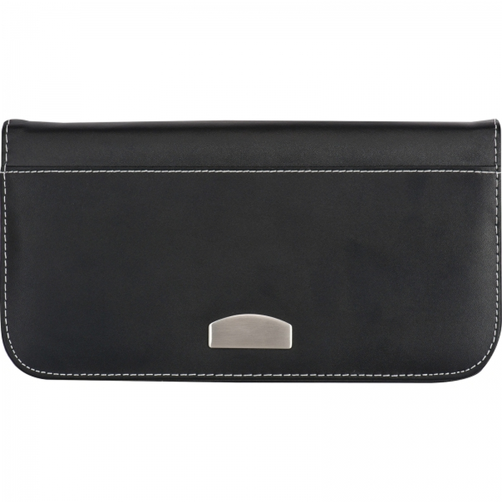 Portfel wykonany ze skóry mielonej z dużą ilością przegródek na dokumenty i karty kredytowe - elegancki i funkcjonalny. Produkt posiada metalową blaszkę, na której można umieścić logotyp.