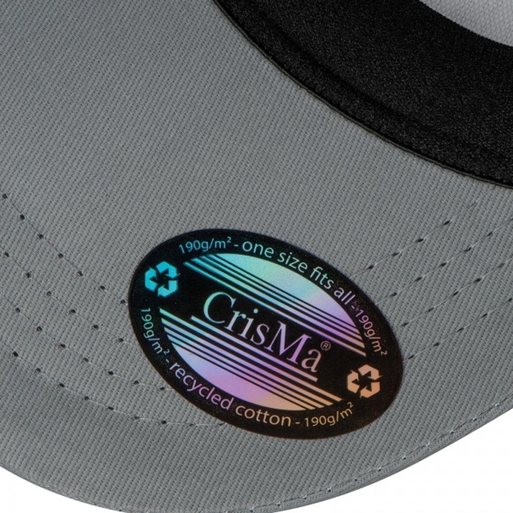 Czapka bejsbolówka z 6 panelami, wykonana z bawełny o gramaturze 190 g/m2 pochodzącej z recyklingu. Brak zapięcia, elastyczna taśma wewnątrz czapki.