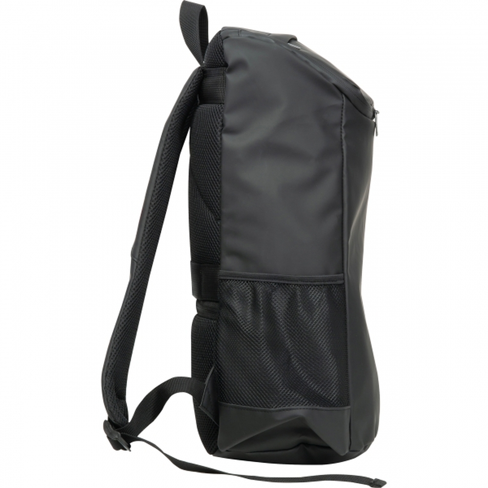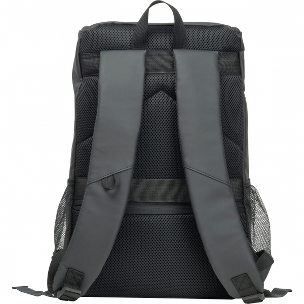 Duży plecak CrisMa, wykonany ze sztucznej skóry, w pojemnej kieszeni głównej, znajduje się specjalna przegródka na tablet. Plecak posiada dwie kieszenie boczne z siatki, kieszonkę antykradzieżową i watowane szelki.