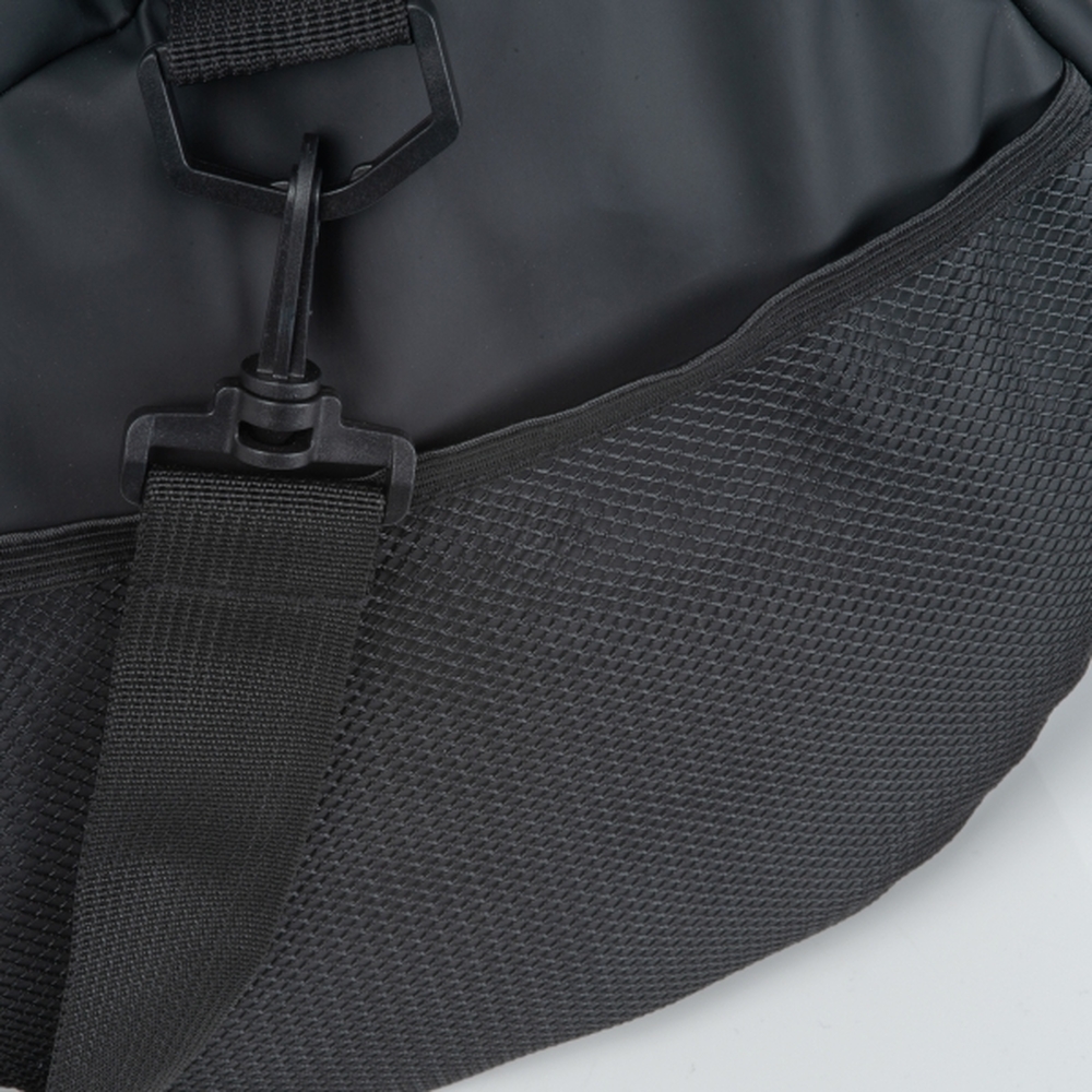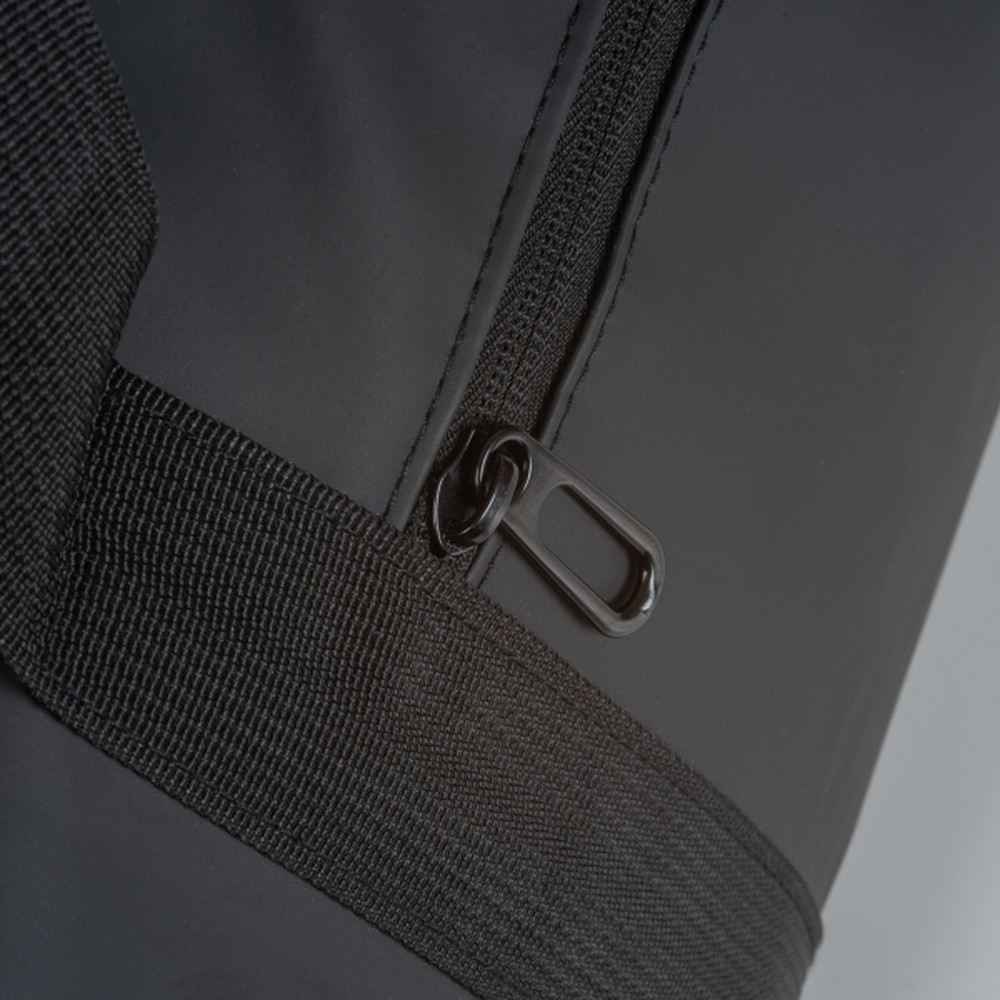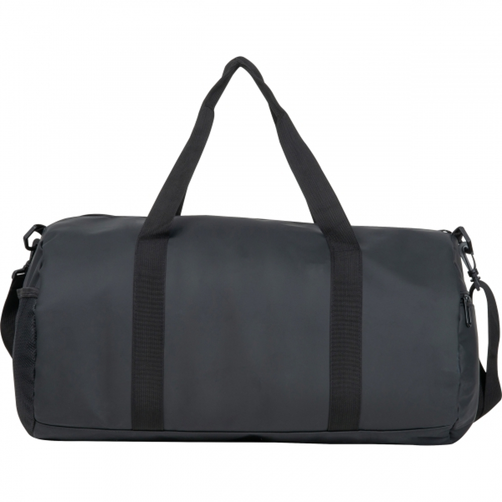 Torba podróżna, wykonana z nieprzemakalnego PU, z bocznymi kieszeniami na zamek.