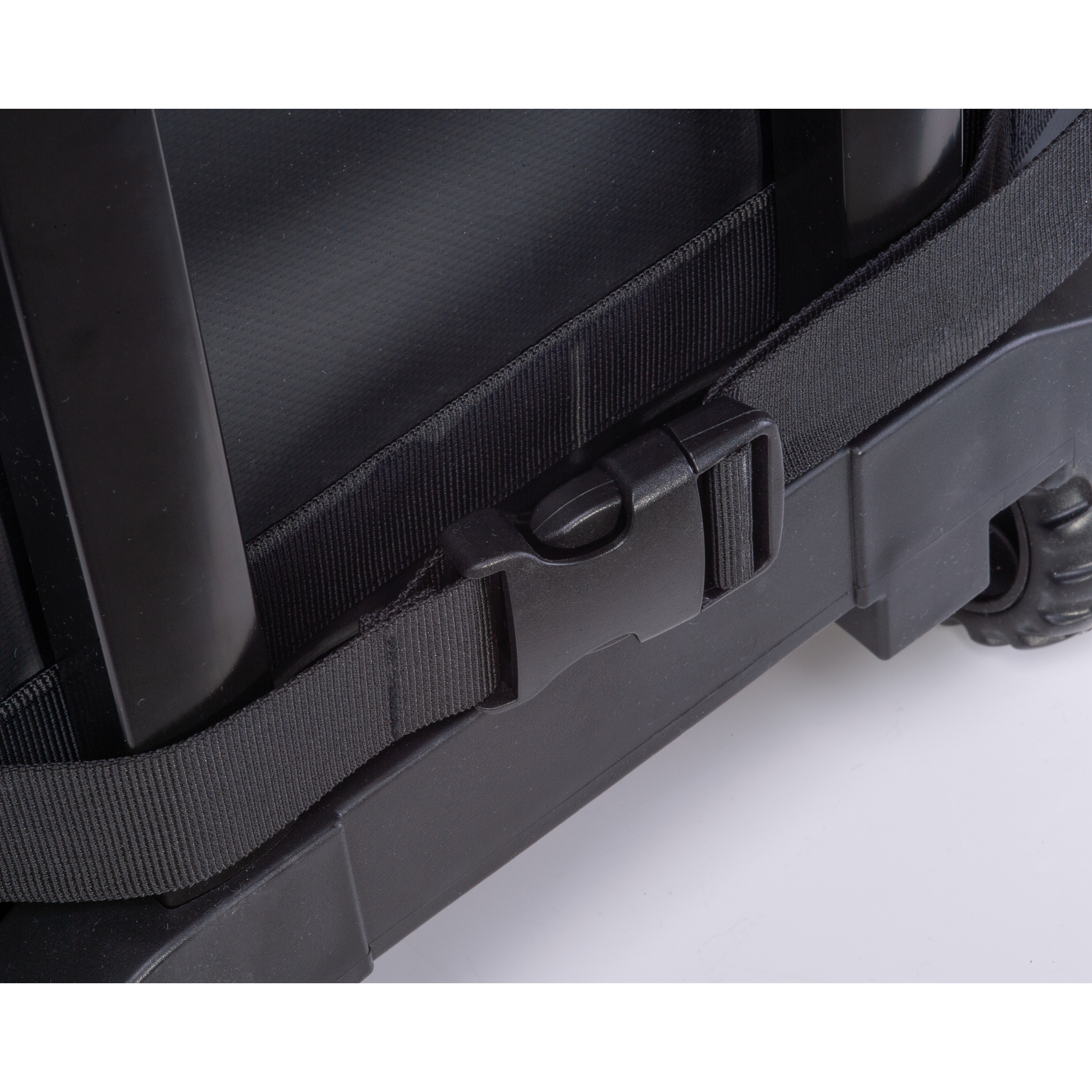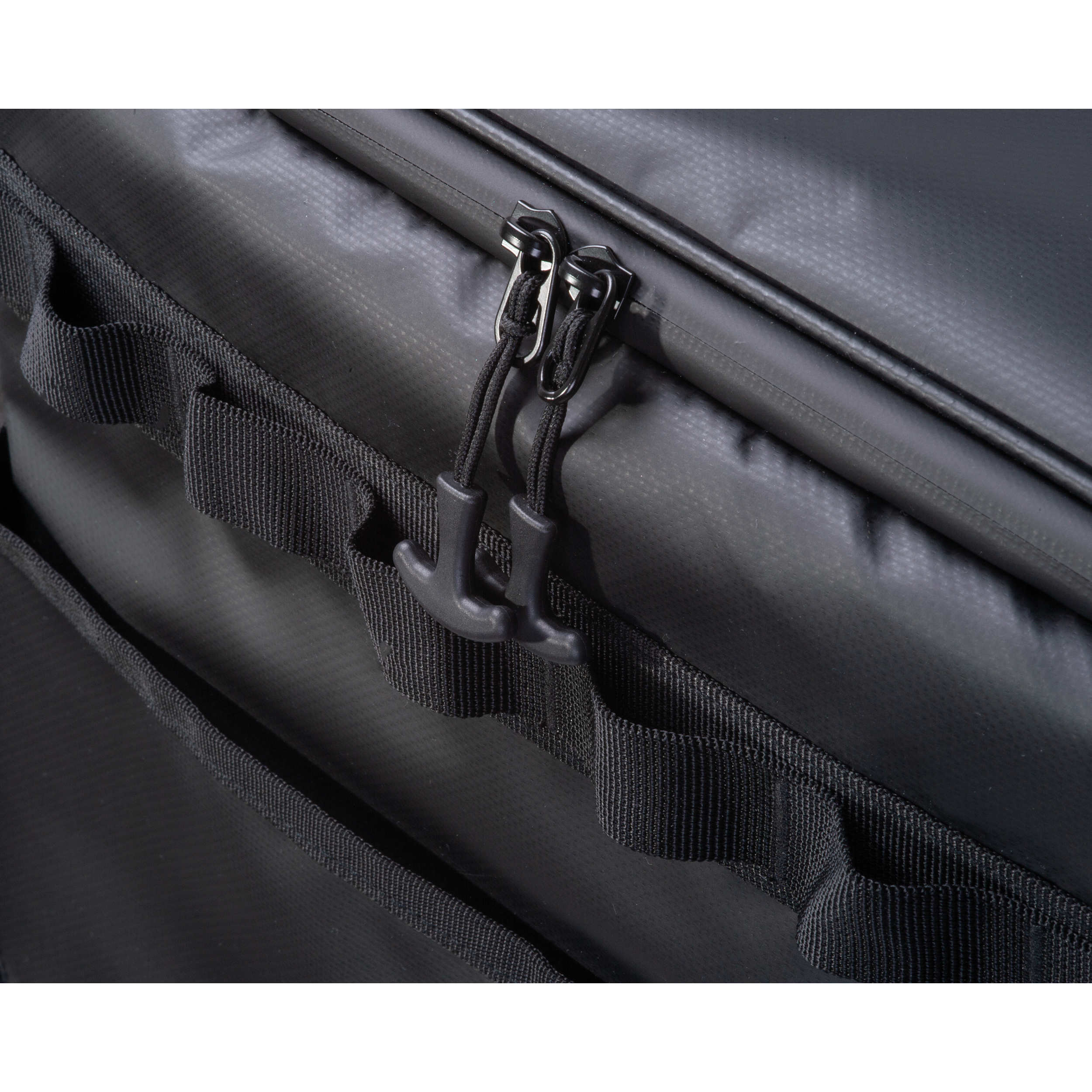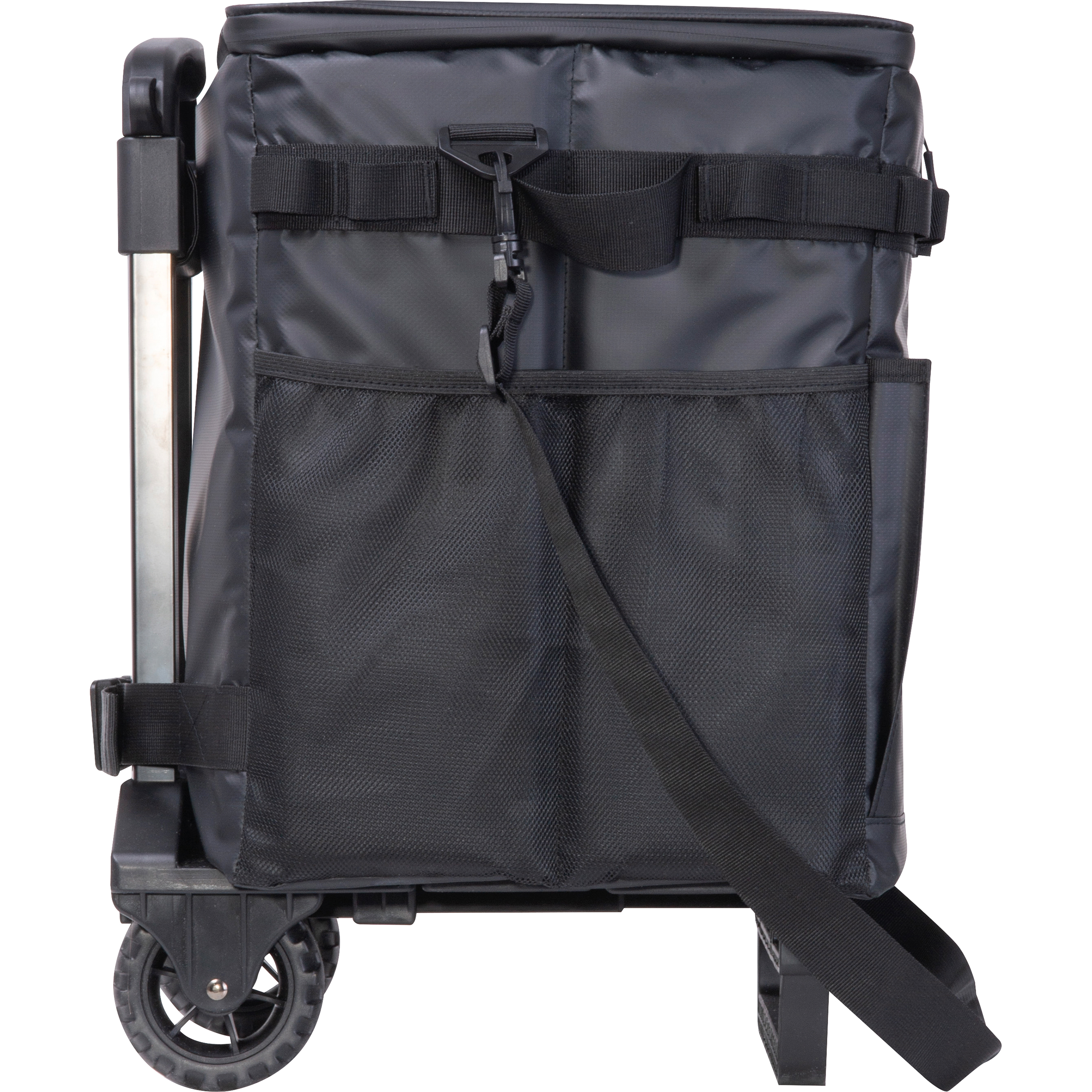 Duża torba termiczna na kółkach o pojemności 35 litrów z wodoodpornym zamkiem błyskawicznym.