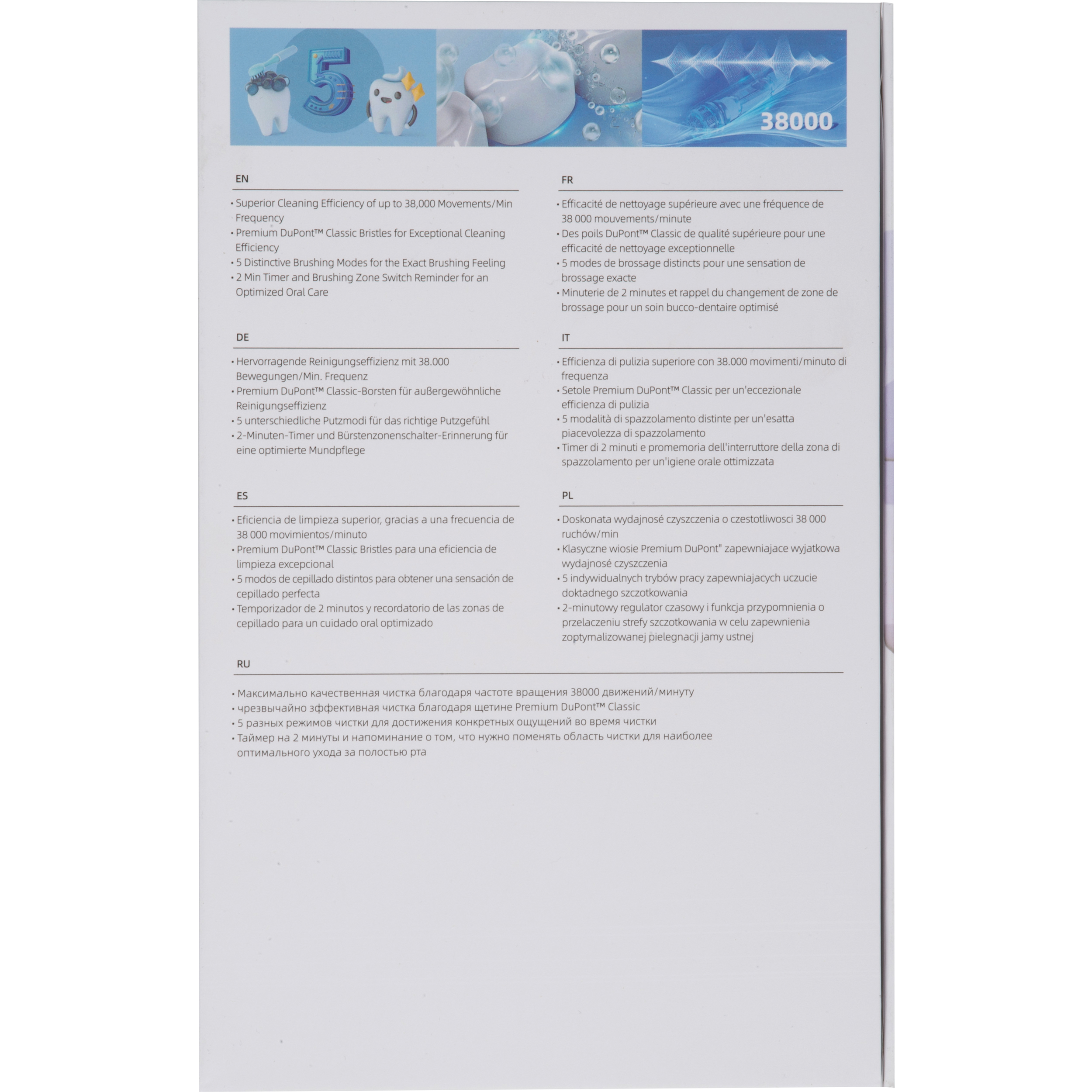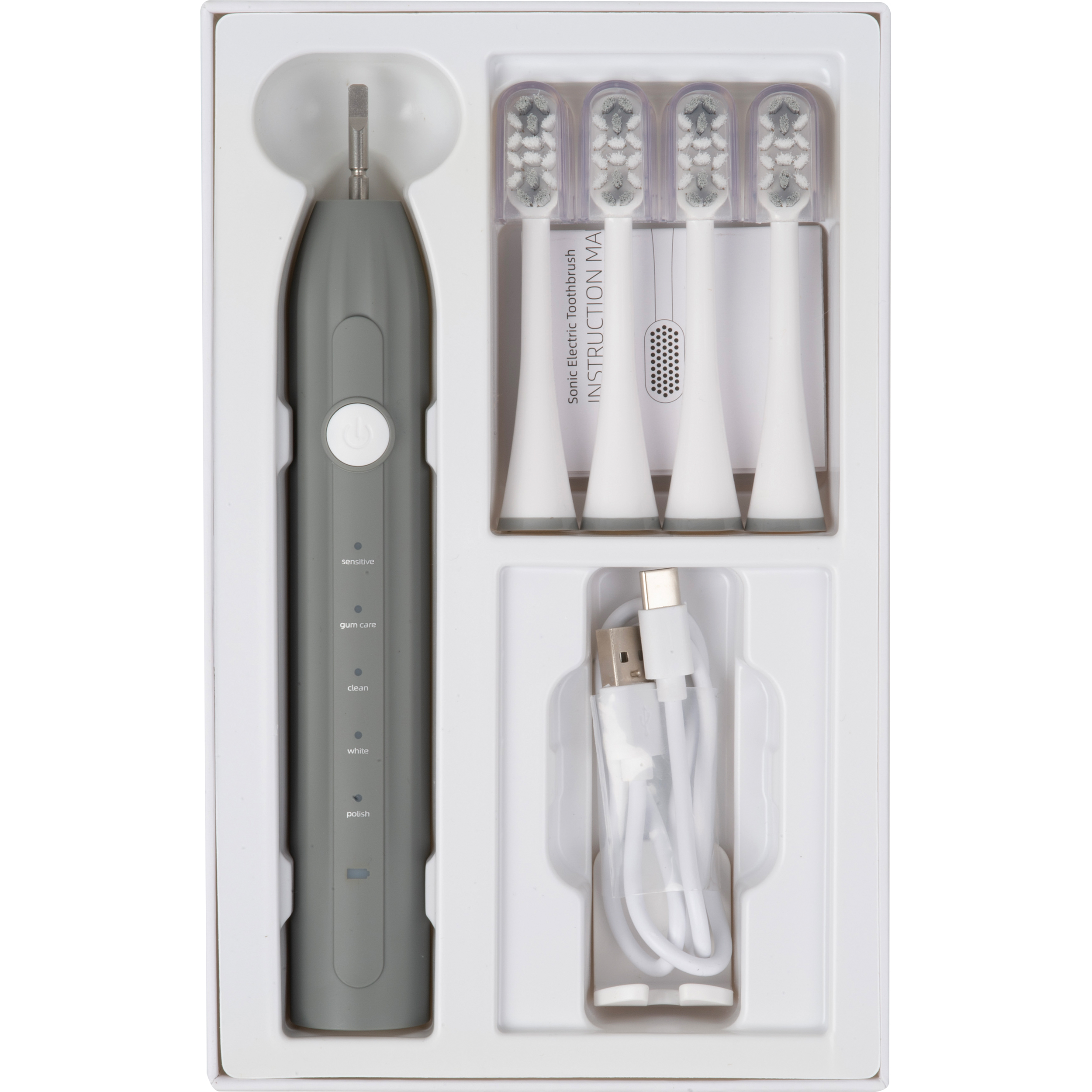 Elektryczna szczoteczka do zębów (200 mAh), z 4 zapasowymi wymiennymi końcówkami, ładowana przez złącze USB-C (kabel dołączony). Dodatkowe końcówki - 75274.