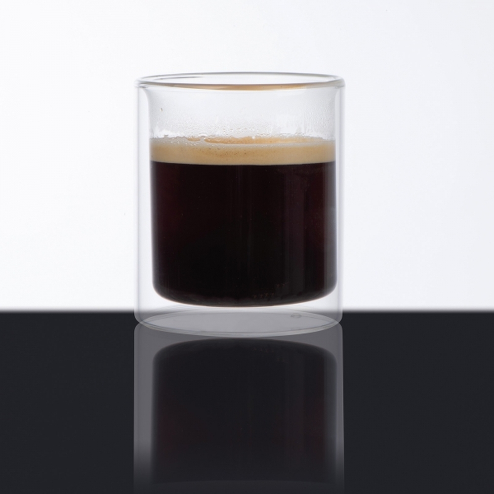 Szklanka z podwójnymi ściankami, wykonana ze szkła borokrzemowego, o pojemności 200 ml.