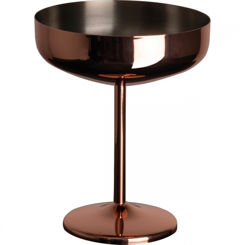 Stalowy kieliszek do Martini, z zewnątrz pokryty miedzianą powłoką, o pojemności 300 ml.