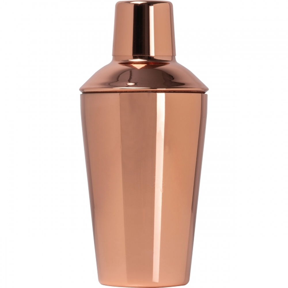 Shaker barmański o pojemności 500 ml, wykonany ze stali nierdzewnej, z zewnątrz pokryty miedzianą powłoką.
