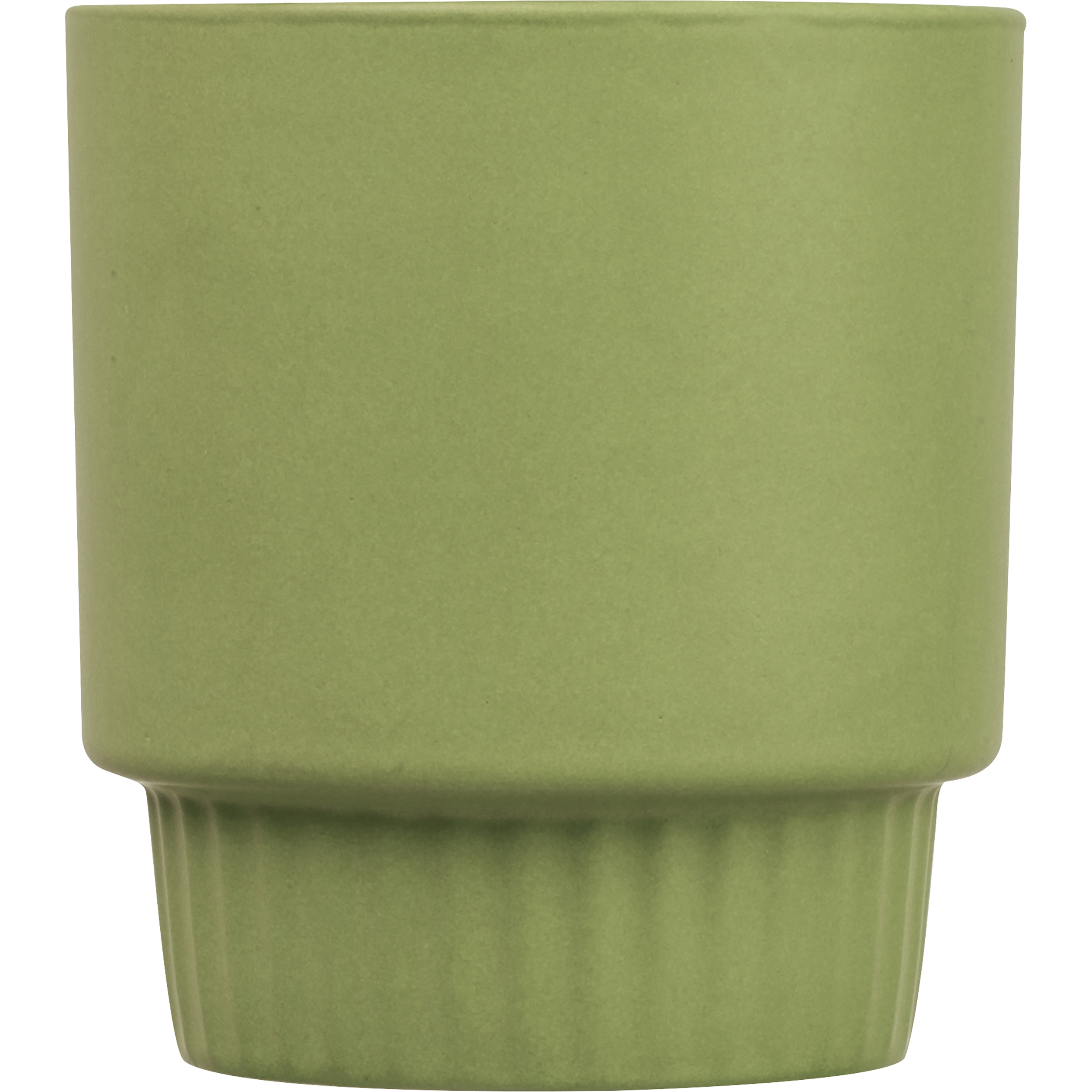 Ceramiczny kubek o pojemności 300 ml, ze zwężaną, ryflowaną dolną częścią. Matowe wykończenie zapewnia przyjemny chwyt.