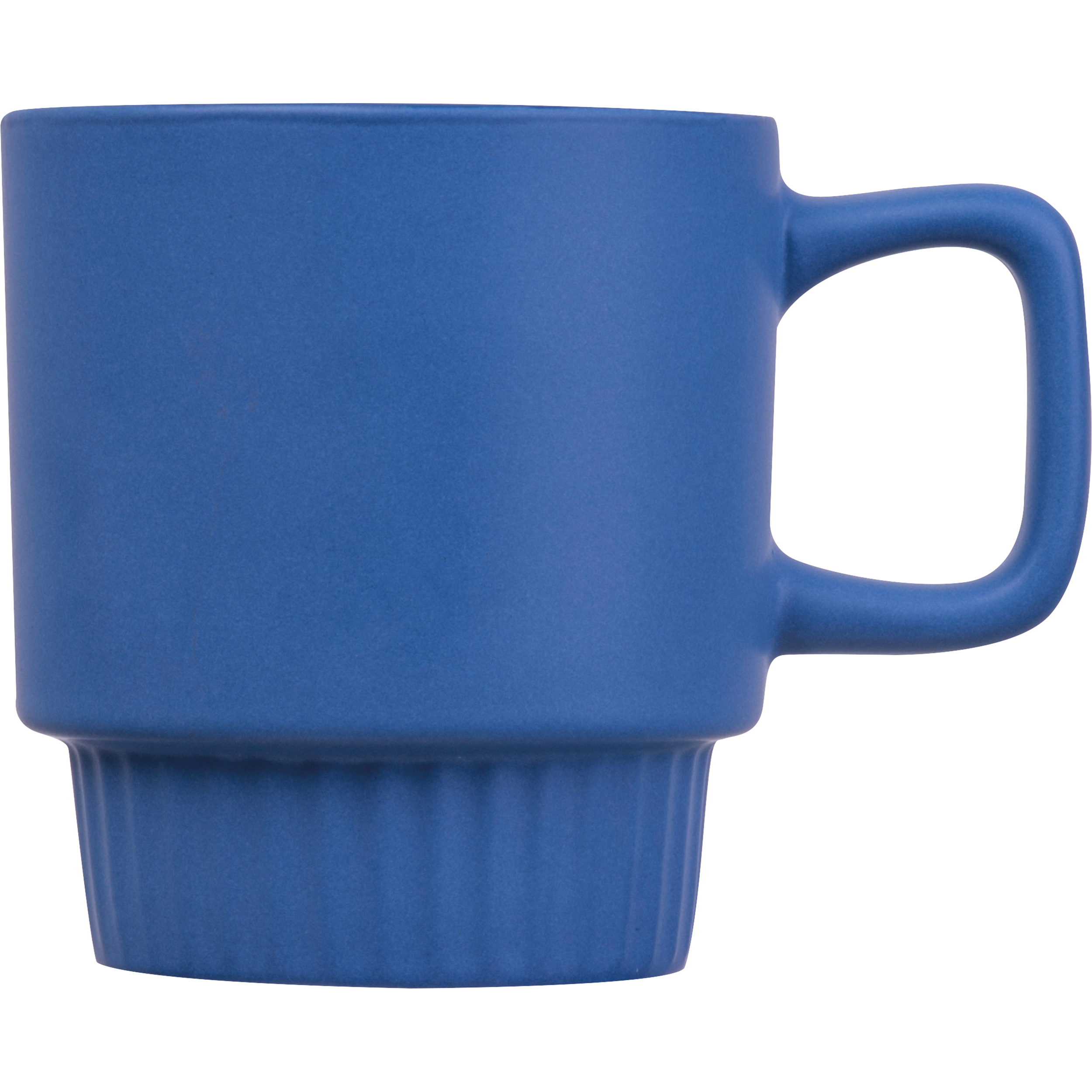 Ceramiczny kubek o pojemności 300 ml, ze zwężaną, ryflowaną dolną częścią. Matowe wykończenie zapewnia przyjemny chwyt.
