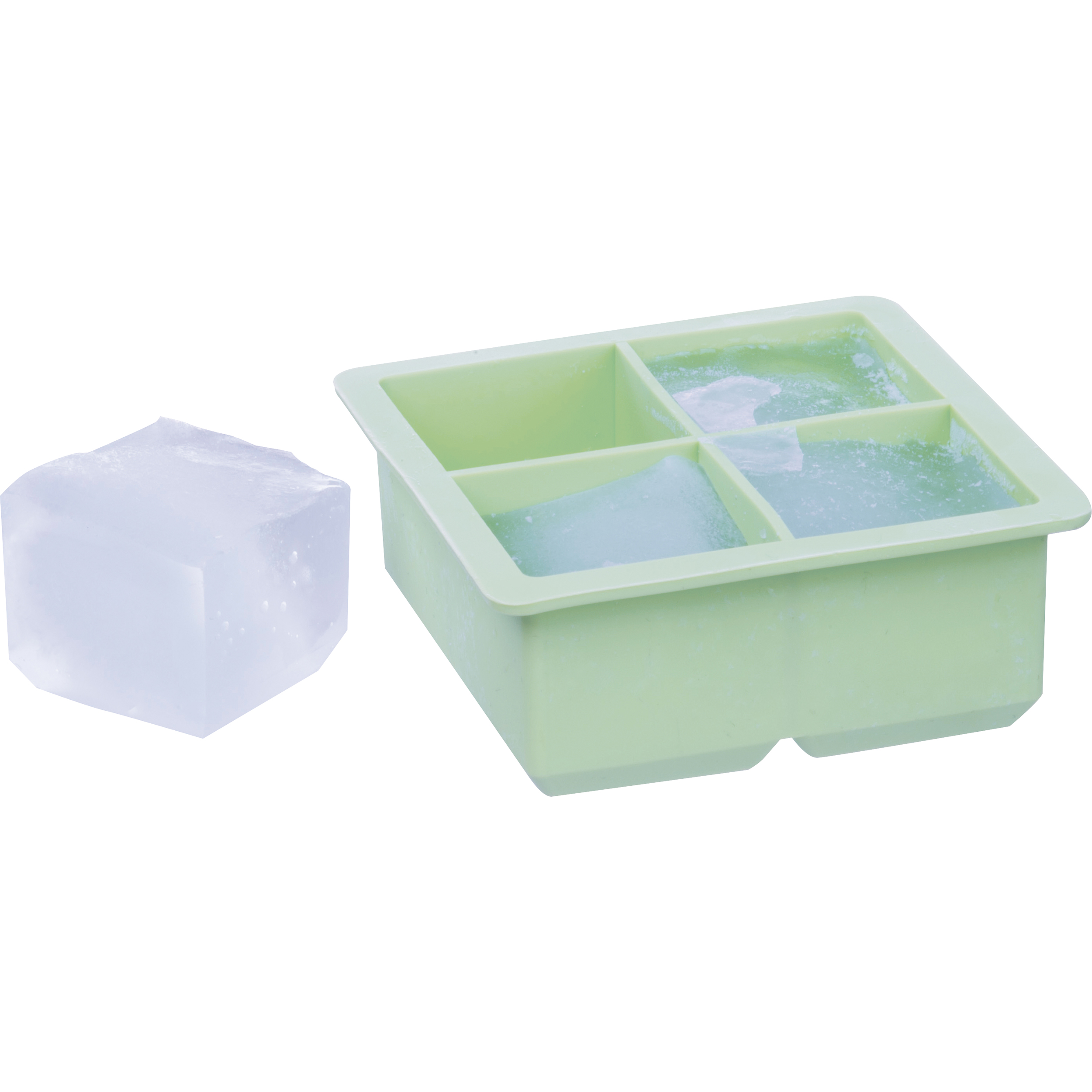 Silikonowa foremka na 4 kostki lodu XXL z przezroczystą pokrywką.