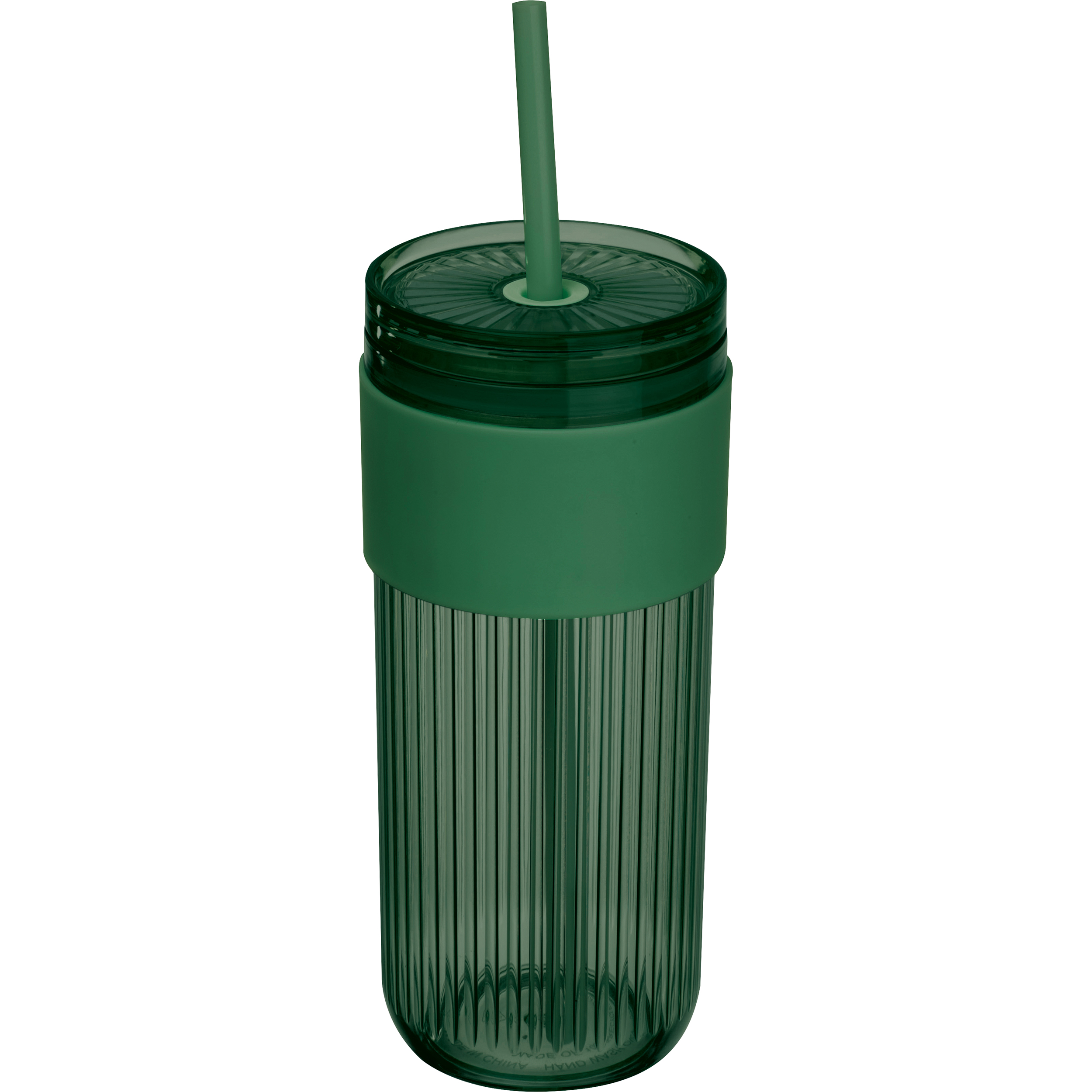 Ryflowany kubek, o pojemności 660 ml, ze słomką do picia i gumową strefą uchwytu.