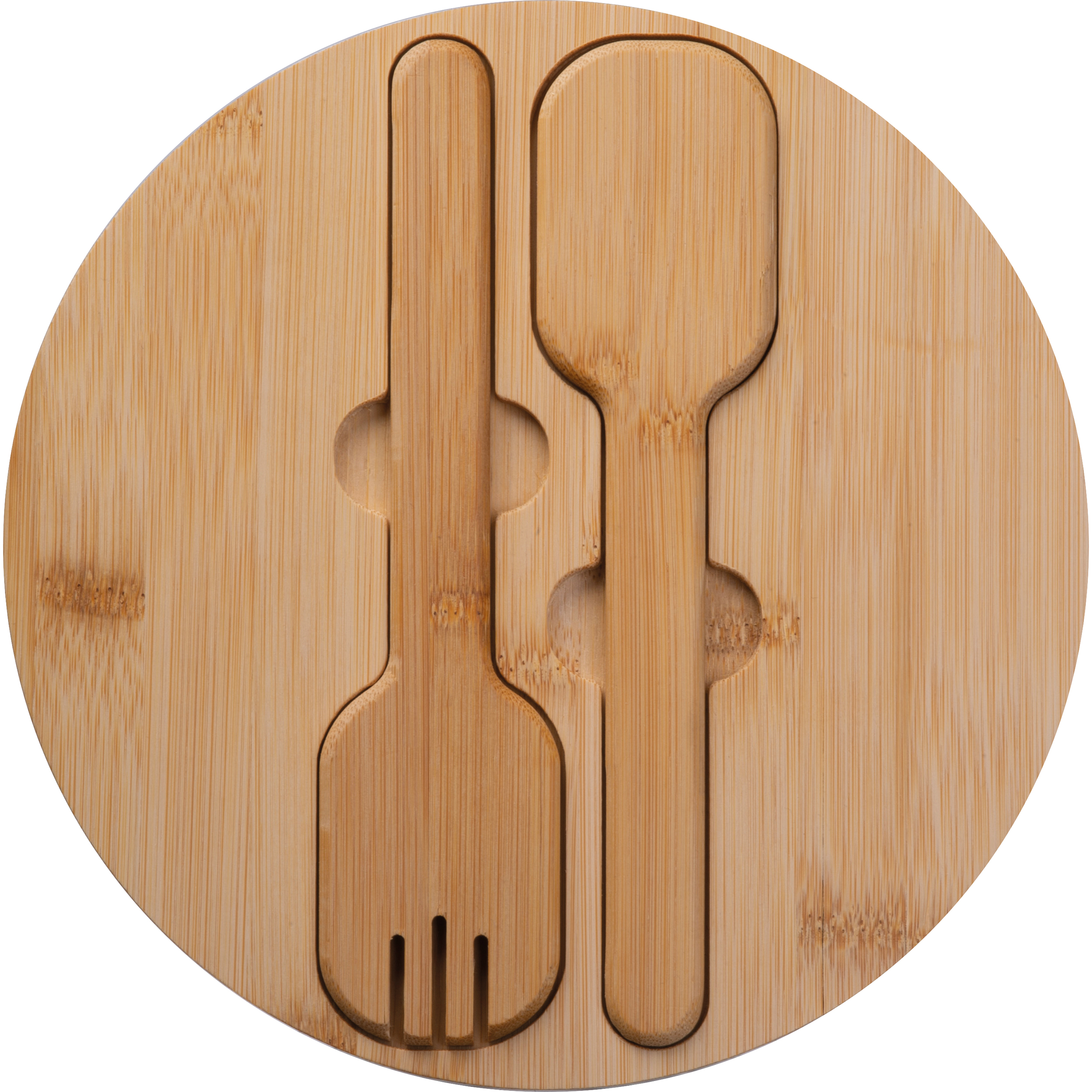 Miska na sałatę o pojemności 2 litrów, wykonana ze stali nierdzewnej z bambusową pokrywką i sztućcami.