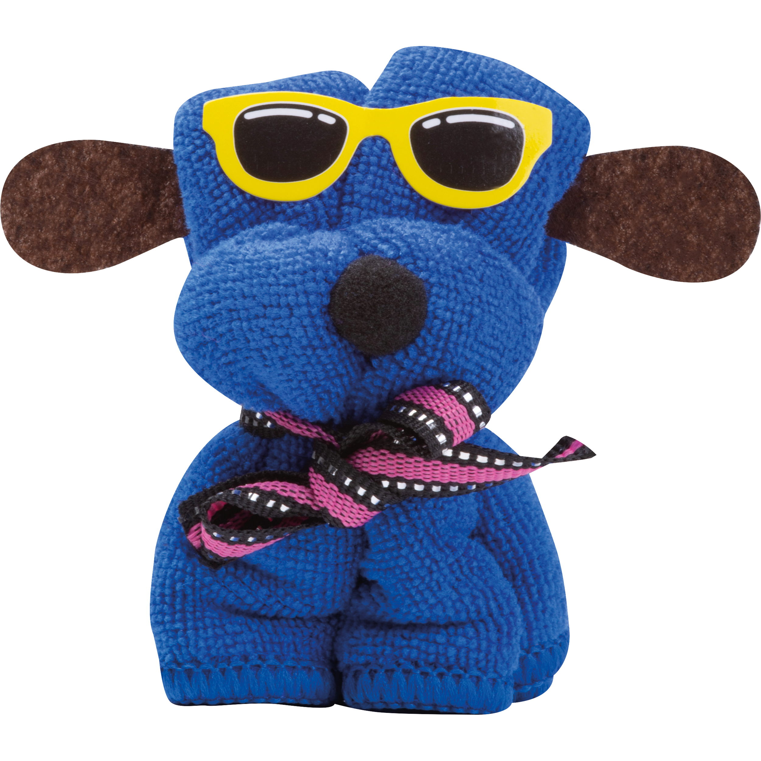 Miękki ręcznik 20 x 20 cm, zawinięty w kształt pieska.
