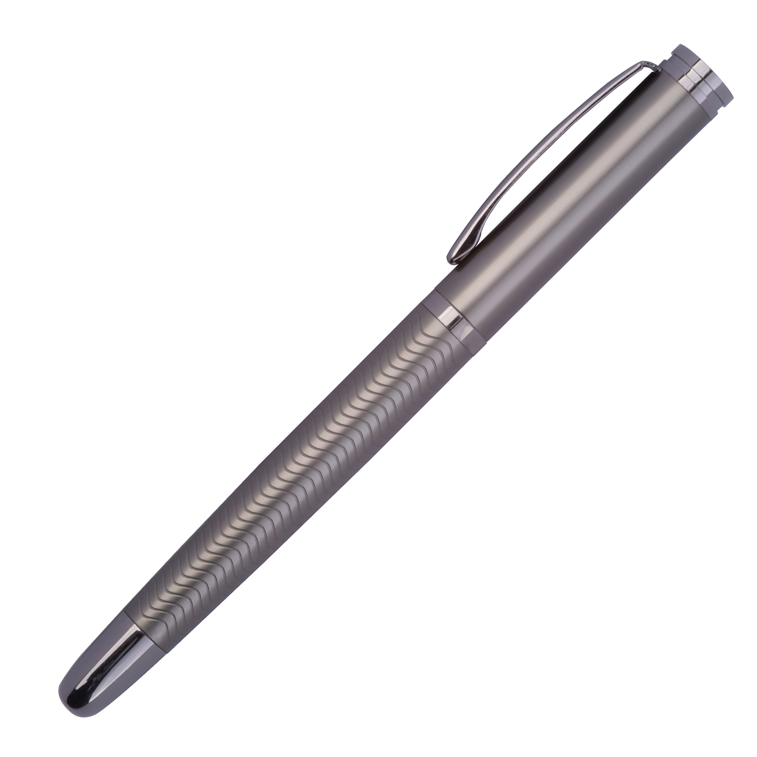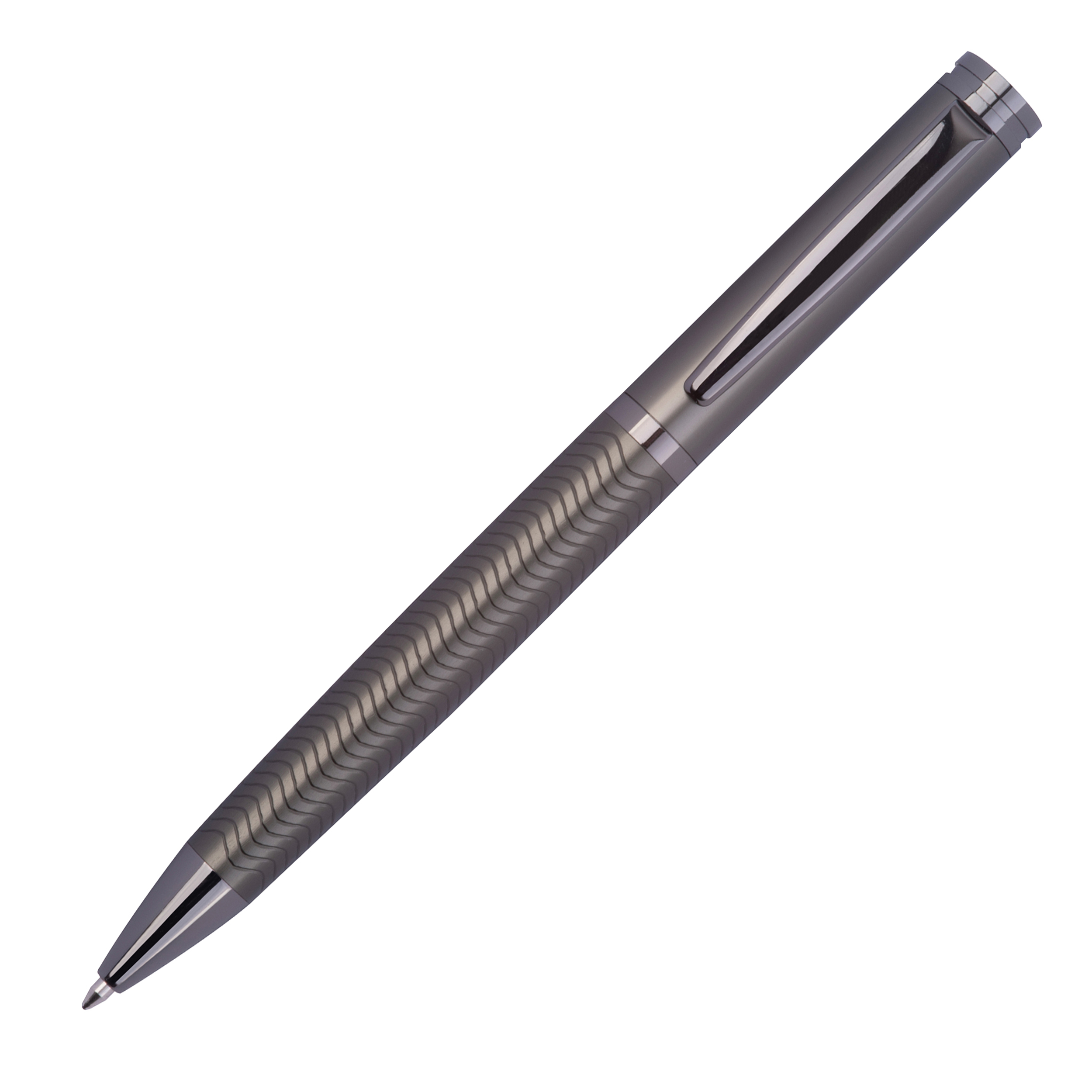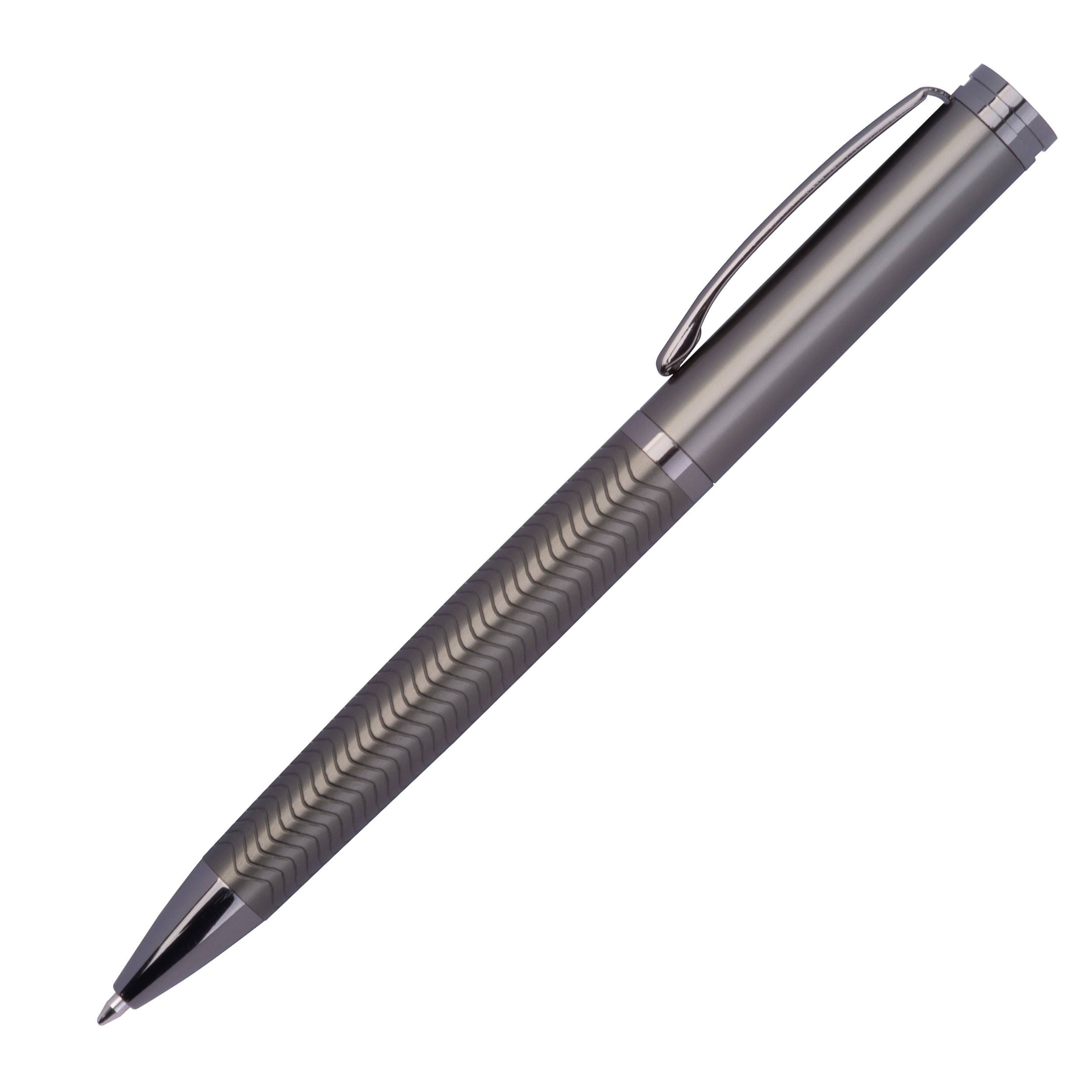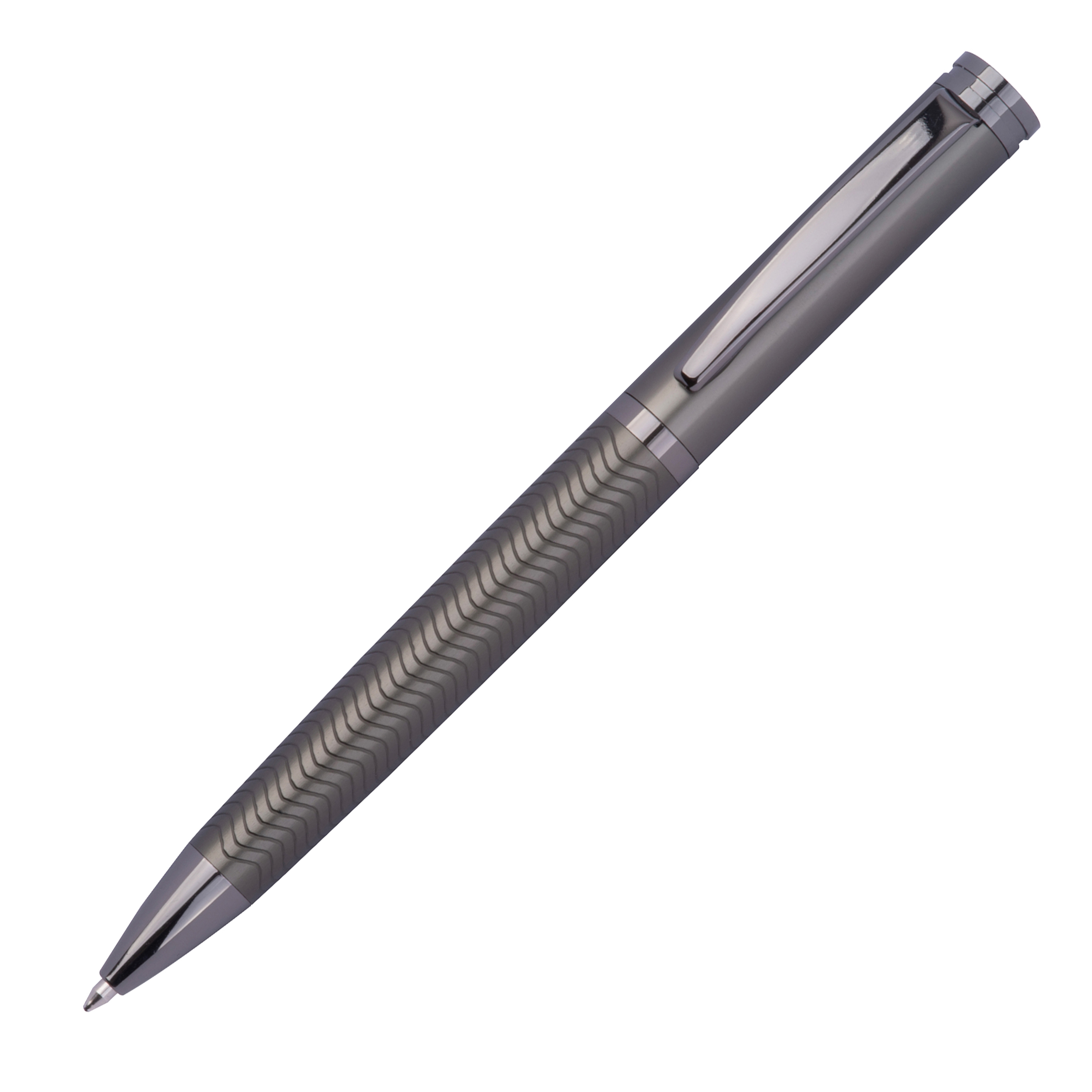 Zestaw piśmienniczy Ferraghini, w skład którego wchodzi długopis obrotowy z niebieskim wkładem (o długości pisania do 600 m) oraz pióro wieczne ze stali nierdzewnej, wyposażone w niebieski wkład.