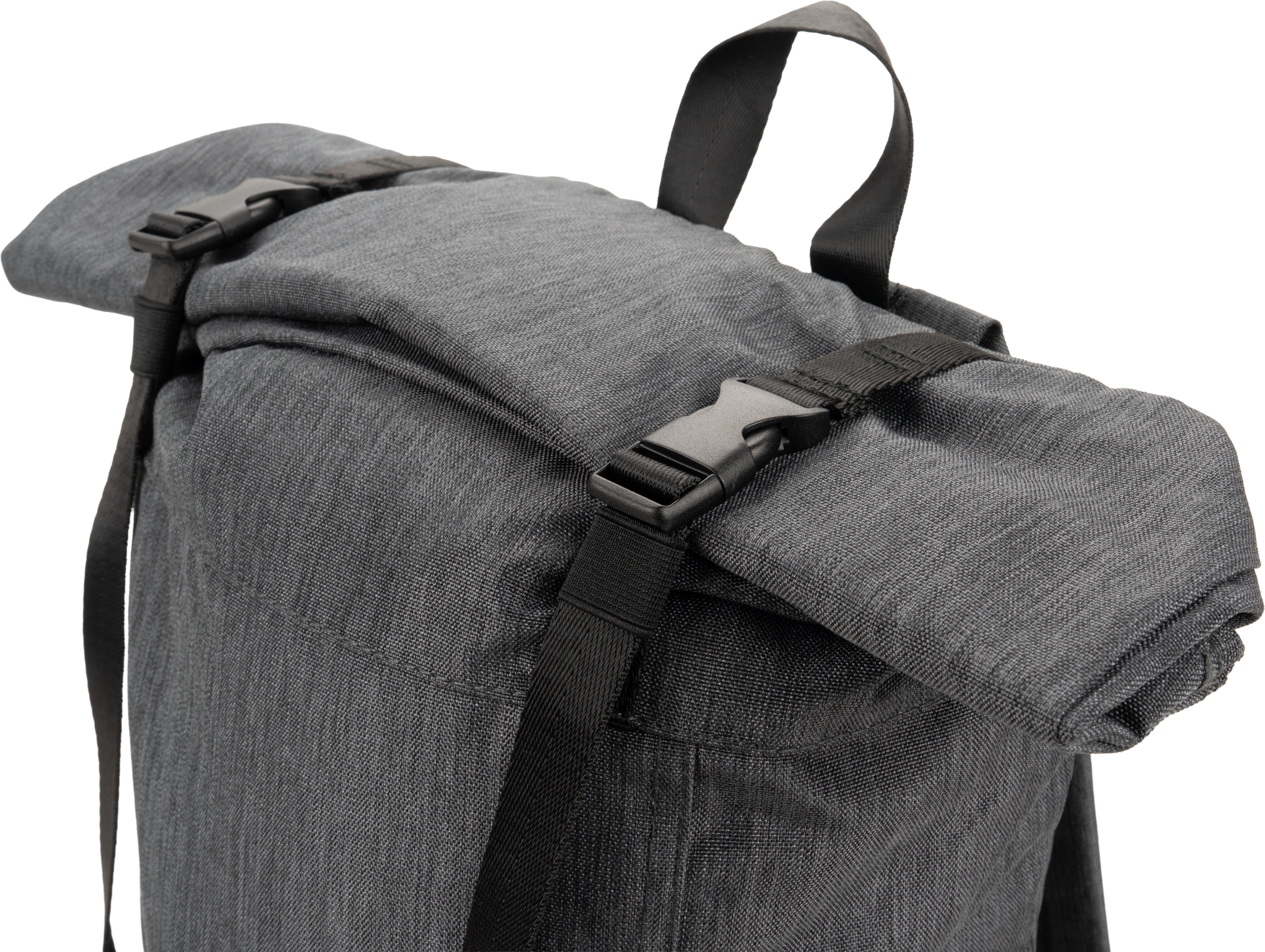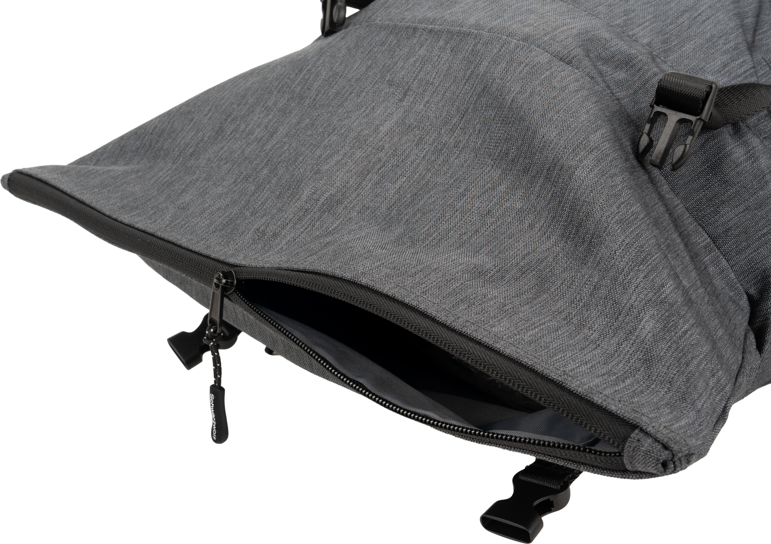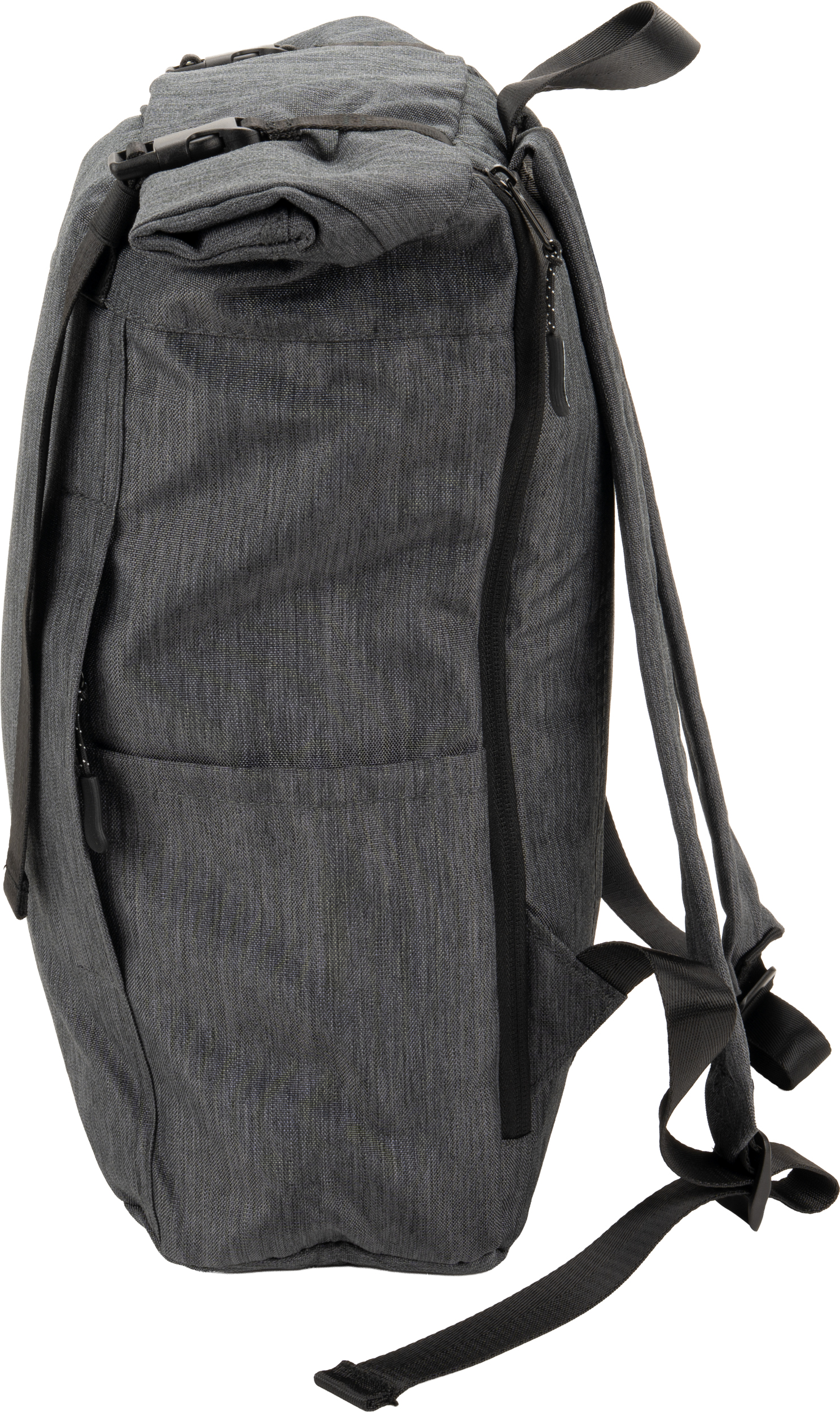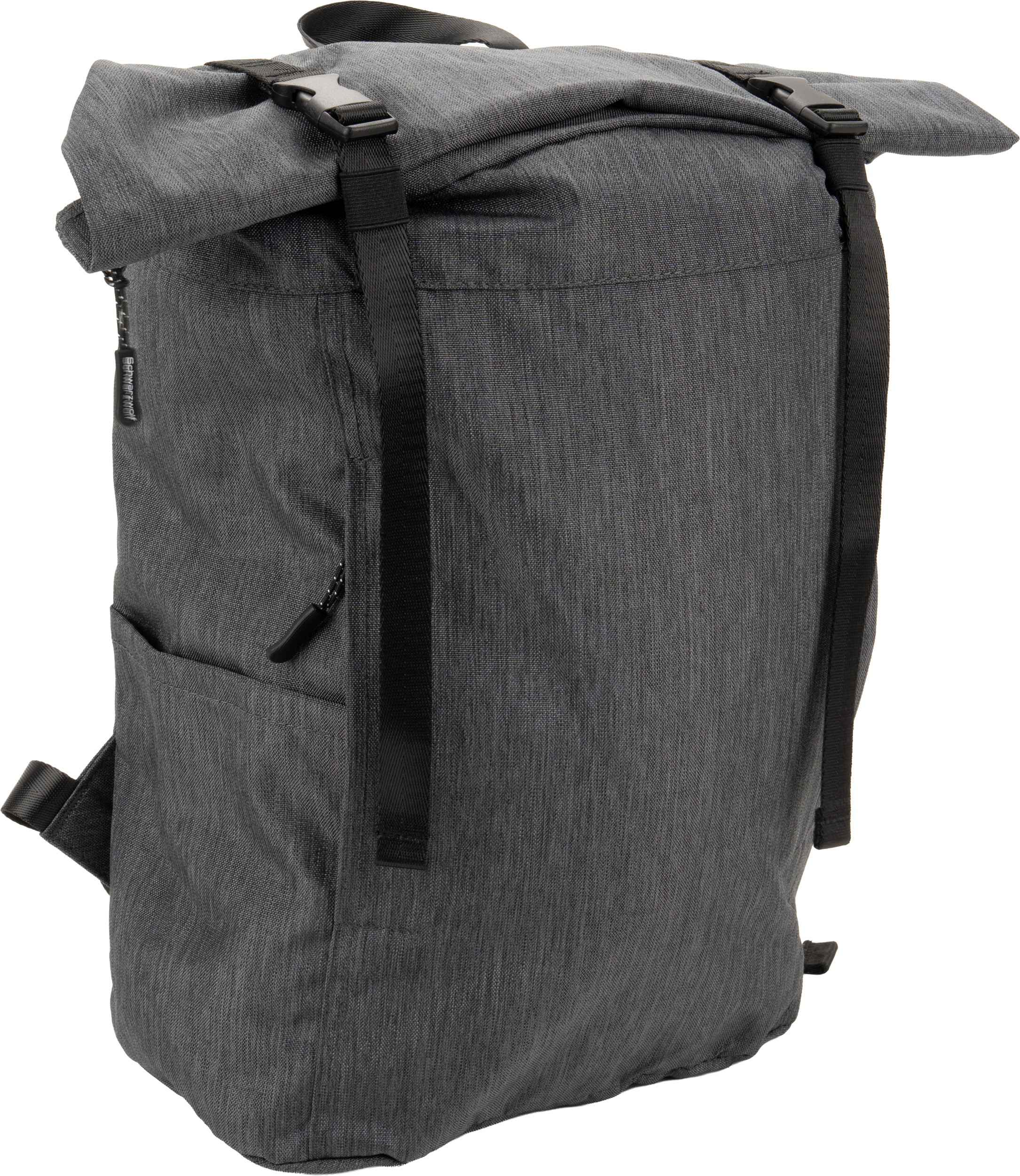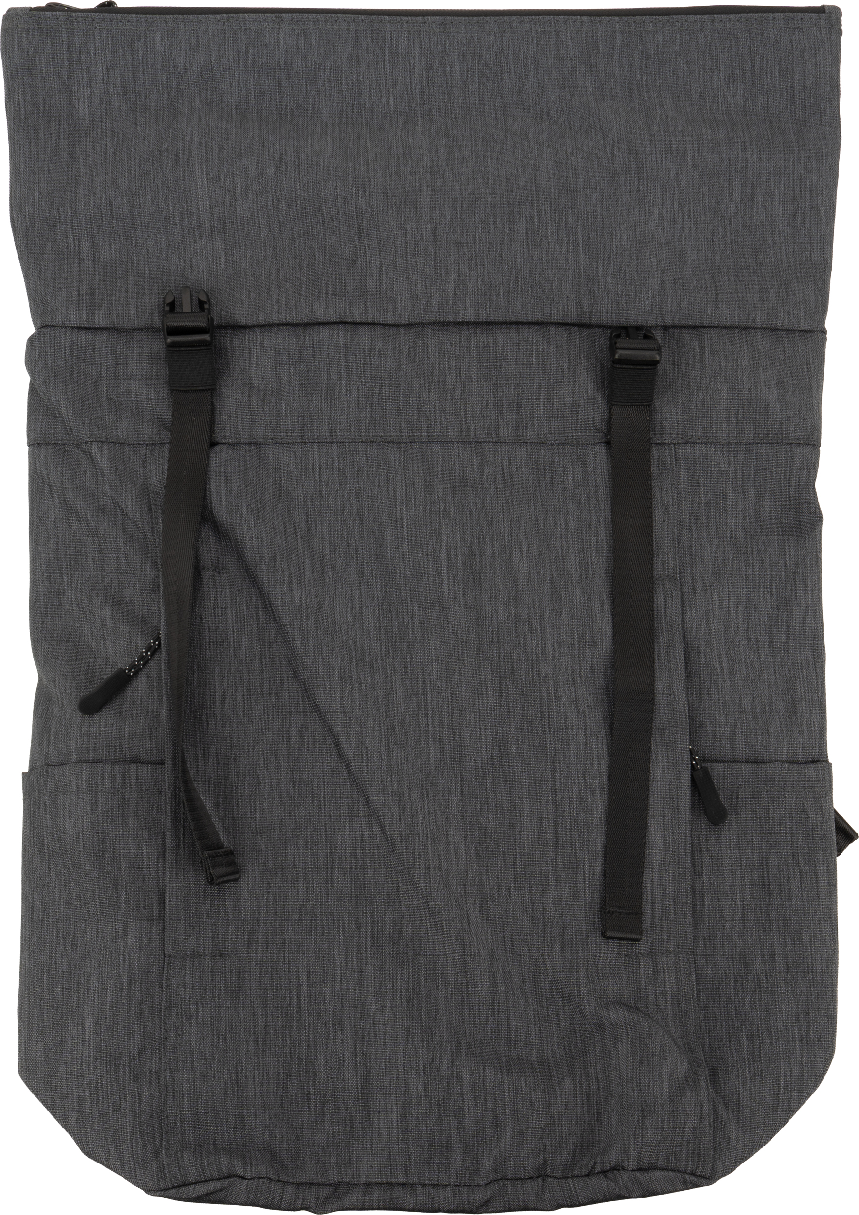 Plecak ze zwijanym zamknięciem, wyposażony w dwie frontowe kieszenie zapinane na zamek, dwie boczne kieszonki, zamek z tyłu zapewniający dostęp do dużej komory głównej, która została wydzielona na jedną dużą kieszeń oraz jedną małą - na akcesoria. Po zrolowaniu górnej części plecaka całość zamykamy dwoma paskami z plastikowymi klamerkami. Plecak posiada watowane szelki i plecy.