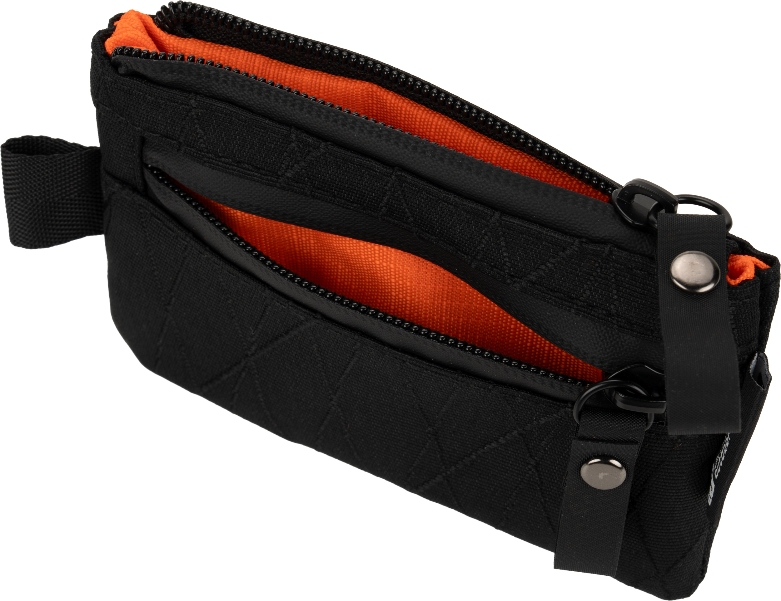 Mały portfel podróżny z ochroną RFID, posiada główną kieszeń oraz mniejszą, frontową, obie zapinane na zamek. Portfel wykonany z materiału odpornego na ścieranie.