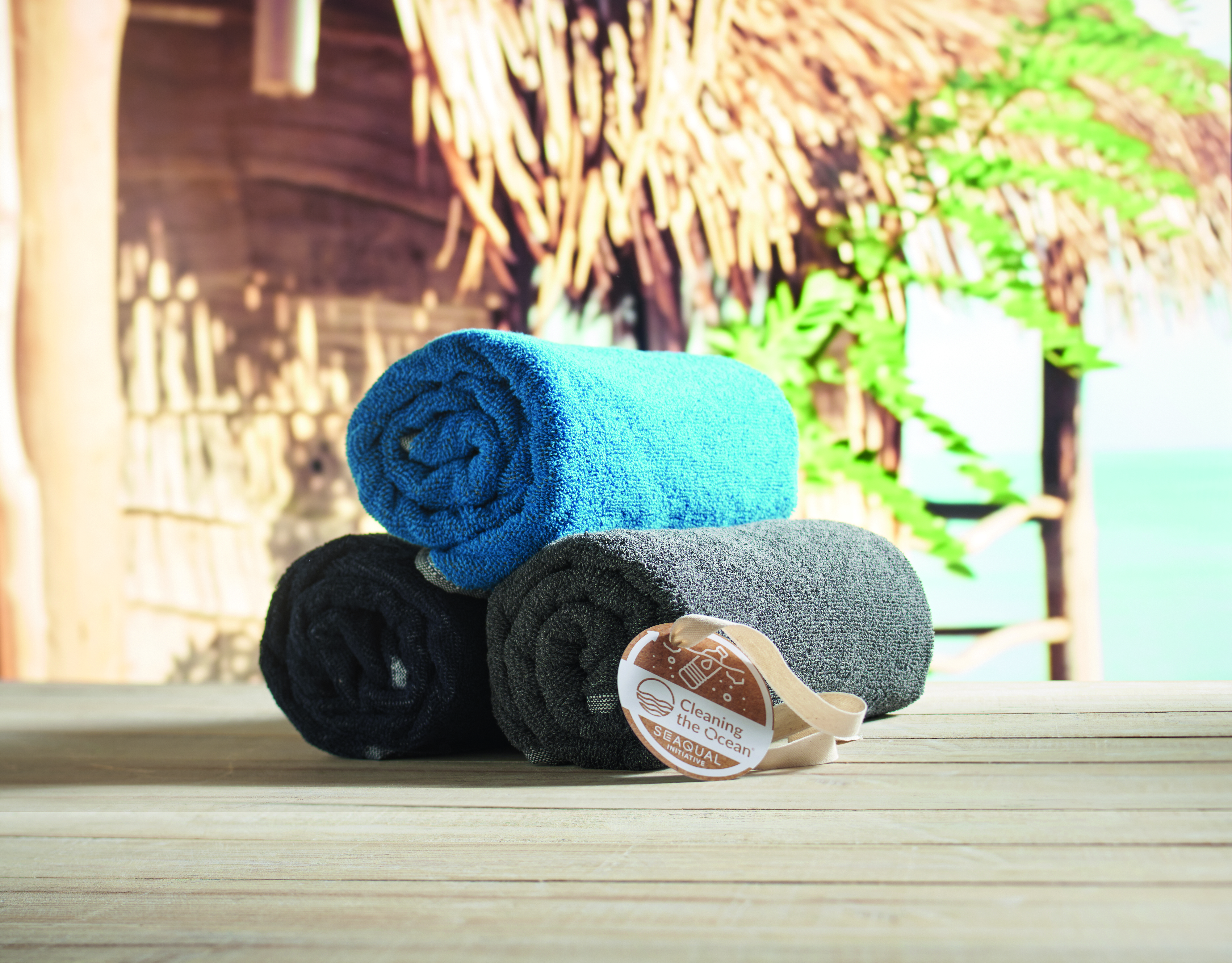 Ekologiczny żakardowy ręcznik kąpielowy lub plażowy z recyklingu. 70% bawełna z recyklingu i 30% poliester SEAQUAL® z recyklingu. 500 gr/m². 70x140 cm. INICJATYWA SEAQUAL współpracuje z organizacjami sprzątającymi oceany na całym świecie, aby nadać wartość odzyskiwanym odpadom. Wyprodukowano w UE.