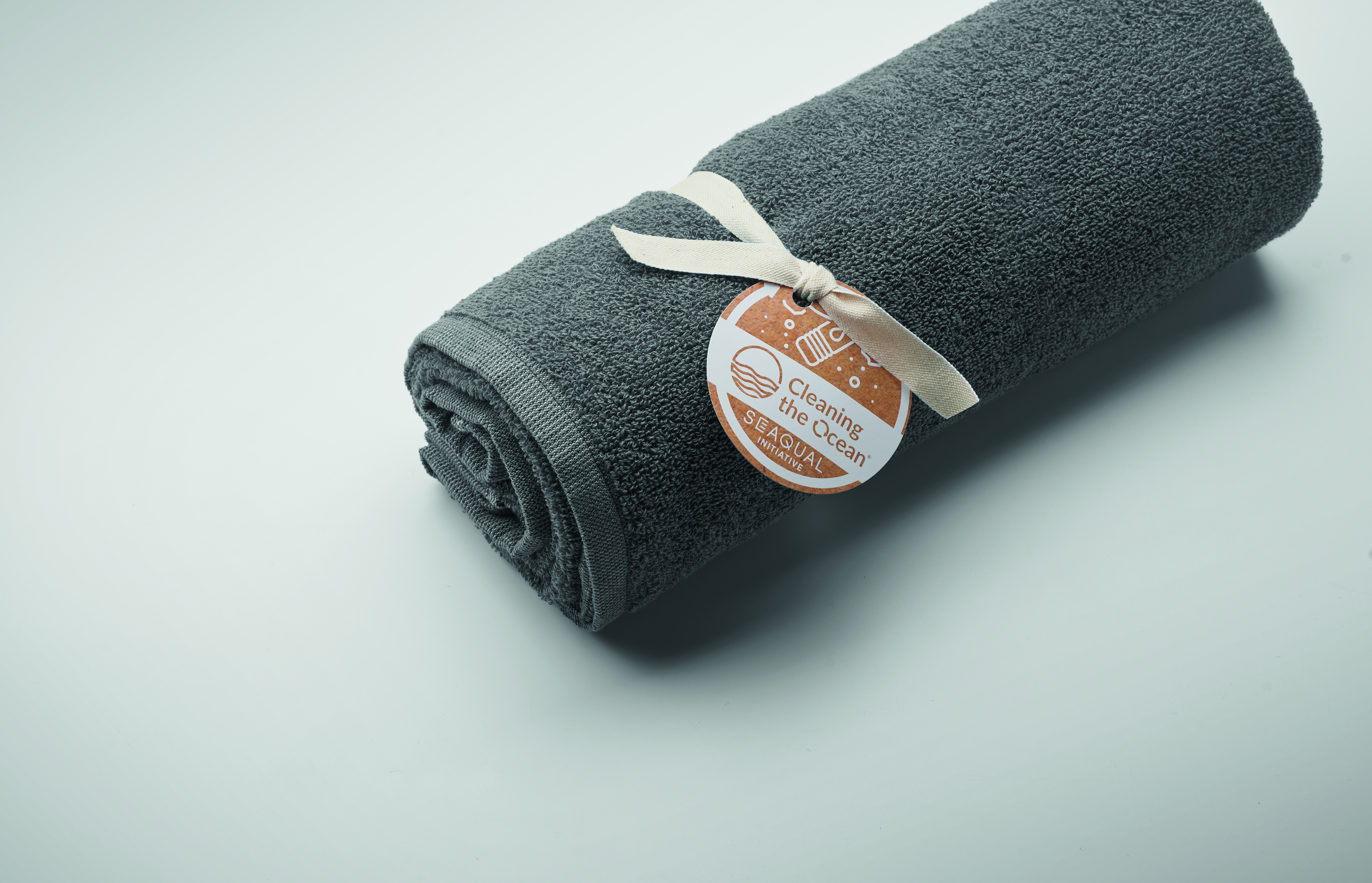 Ekologiczny żakardowy ręcznik kąpielowy lub plażowy z recyklingu. 70% bawełna z recyklingu i 30% poliester z recyklingu SEAQUAL® YARN. 500 gr/m². 100x170 cm. SEAQUAL INITIATIVE współpracuje z organizacjami oczyszczania oceanów na całym świecie, aby nadać wartość odzyskiwanym odpadom. Wyprodukowano w UE.
