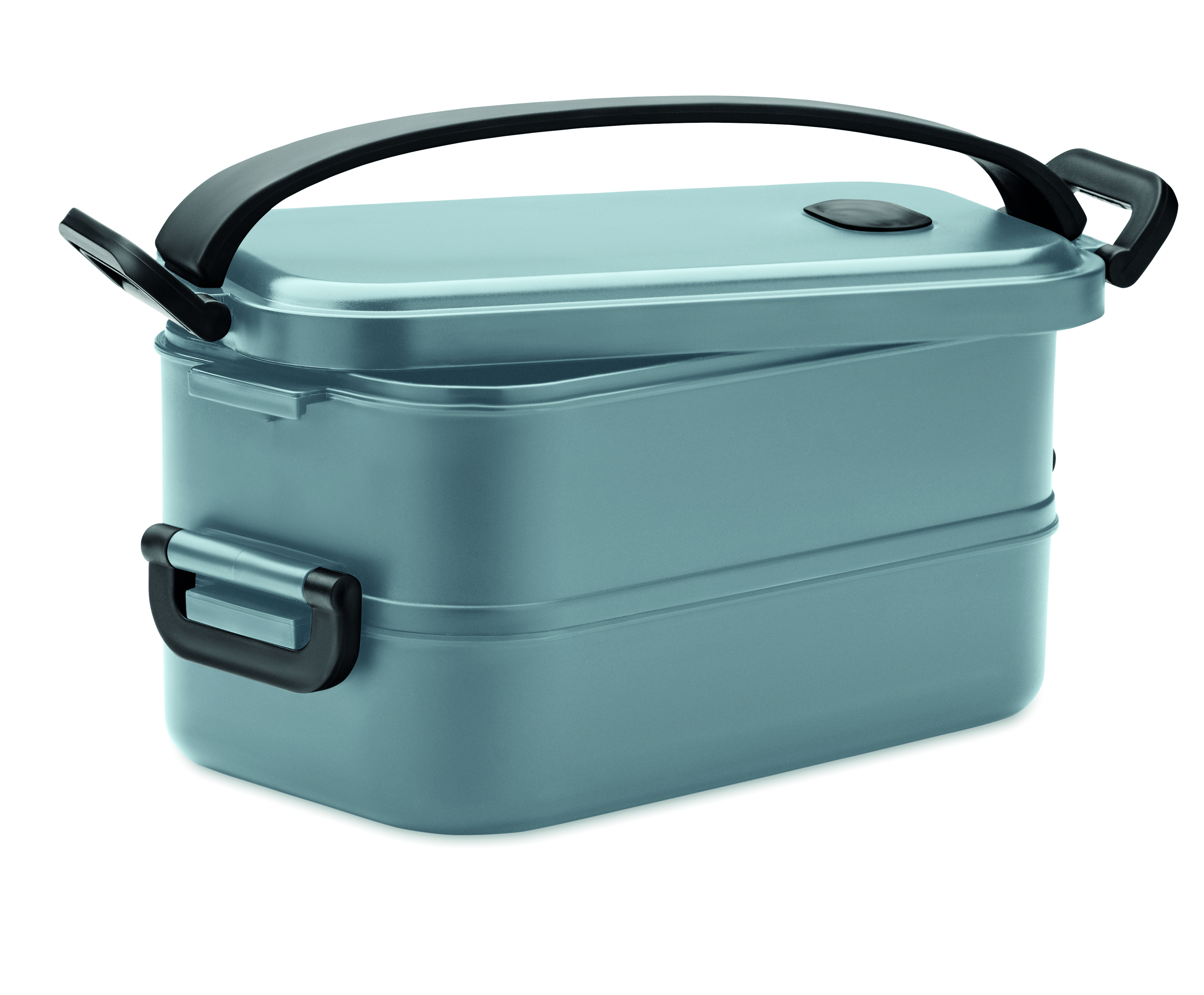 Dwupoziomowy pojemnik na lunch z PP z wyjmowaną przegrodą z bocznymi klamrami i hermetyczną pokrywką. Pojemność: 800 ml (2x).