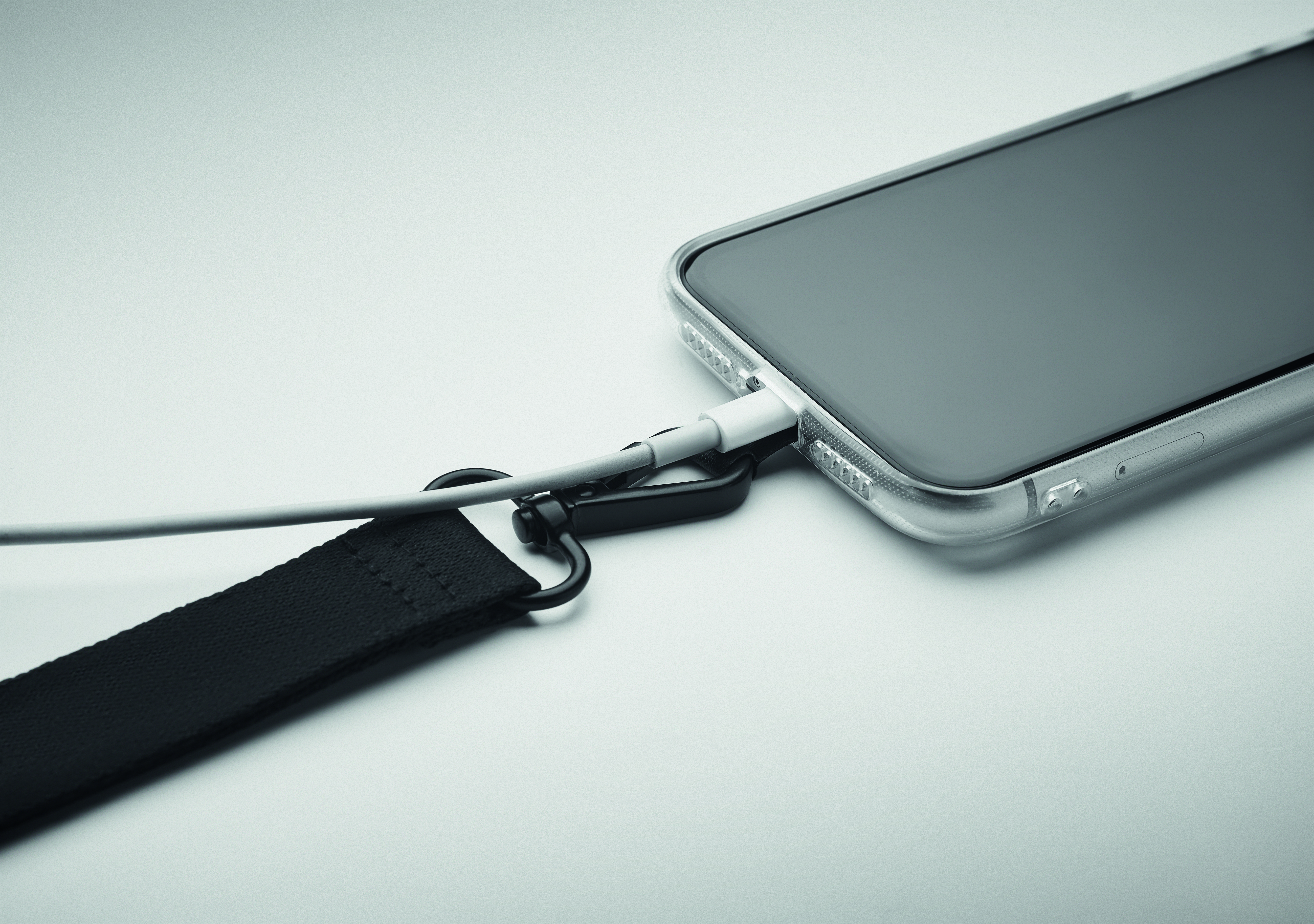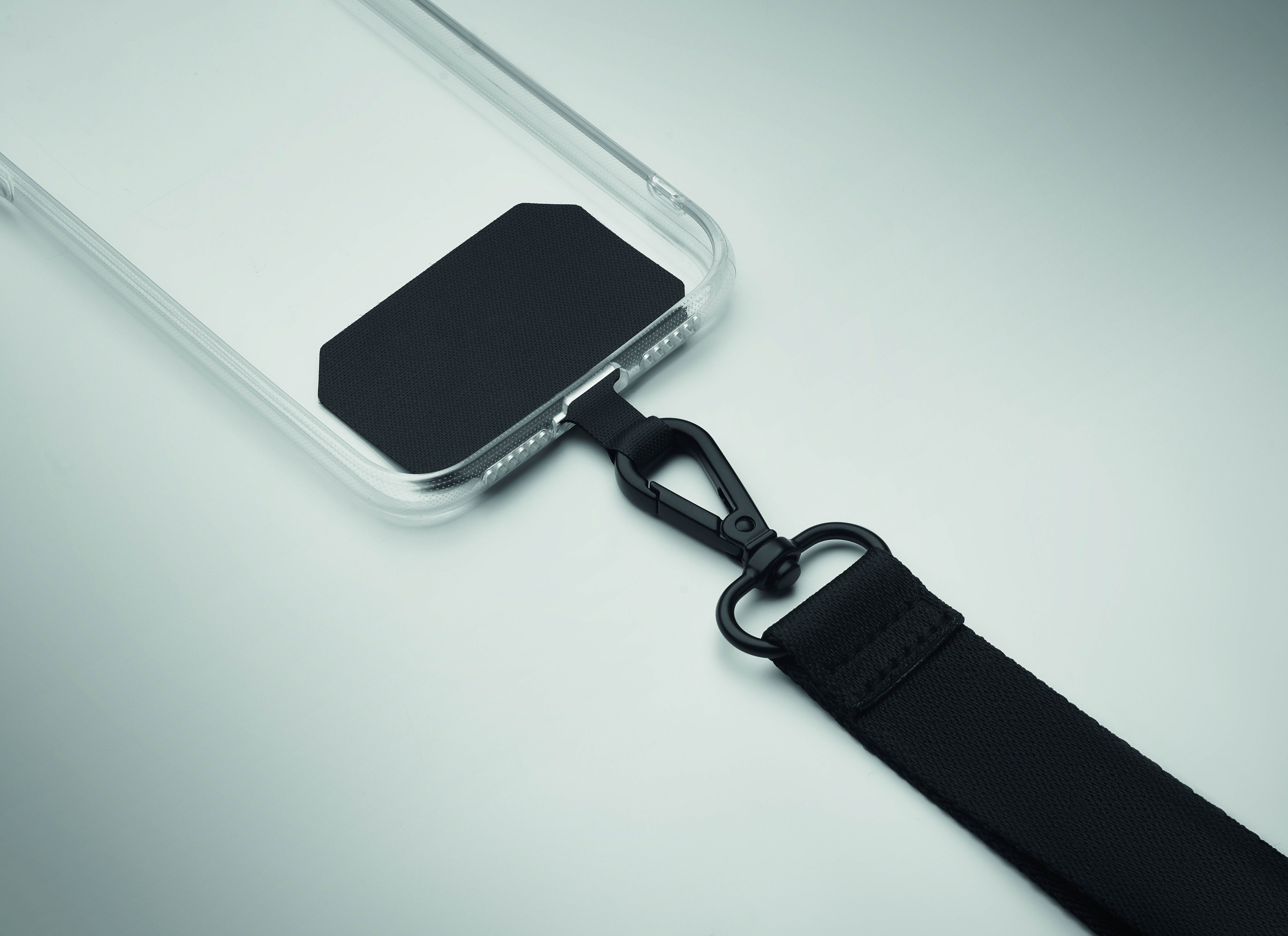Smycz do telefonu typu crossbody na nadgarstek wykonana z poliestru z bezpieczną klamrą. 2,5 cm.