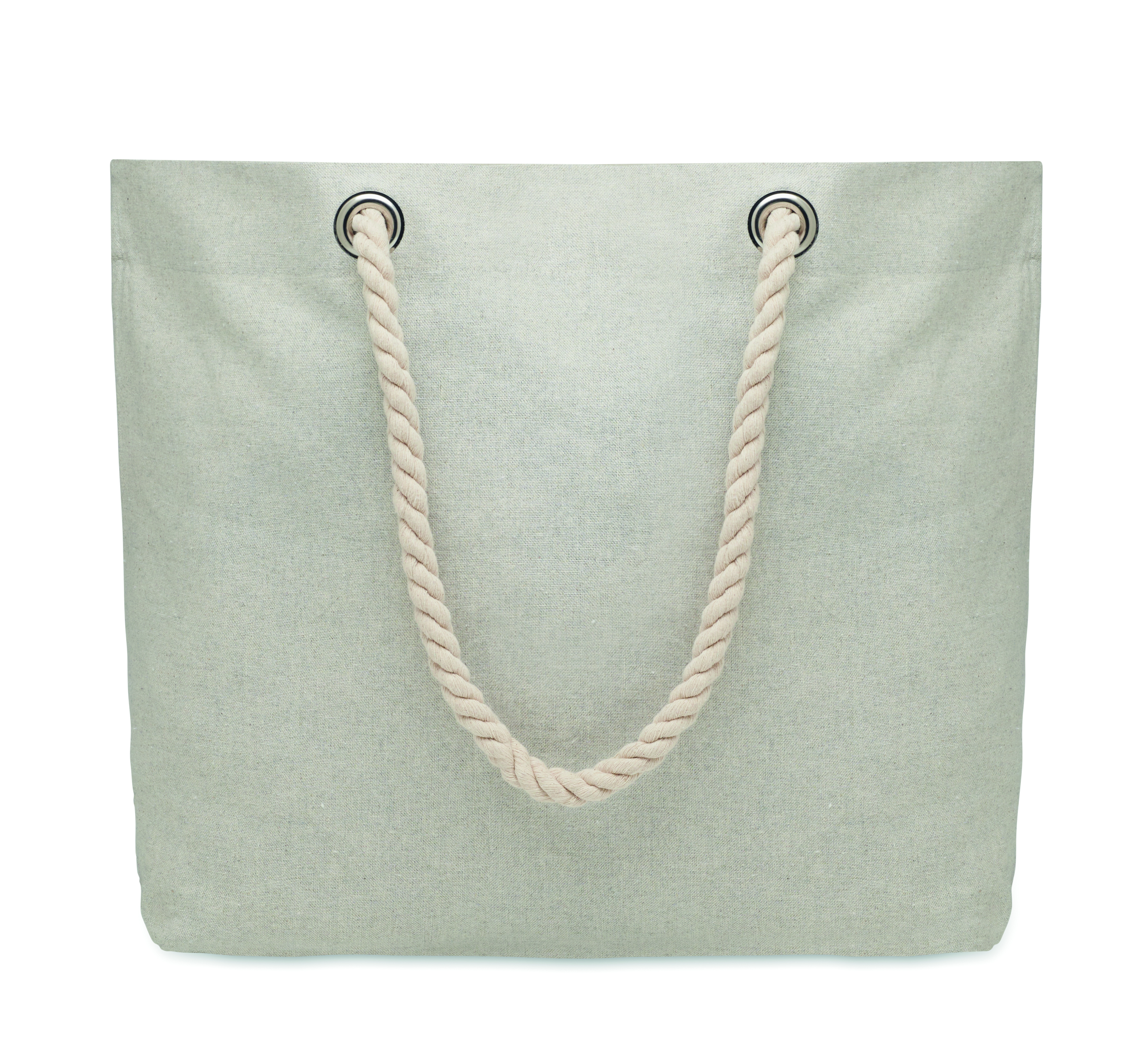 Torba plażowa lub na zakupy z bawełny z recyklingu (80% bawełny z recyklingu, 20% zwykłej bawełny)z uchwytami ze sznurka. 220 gr/m².