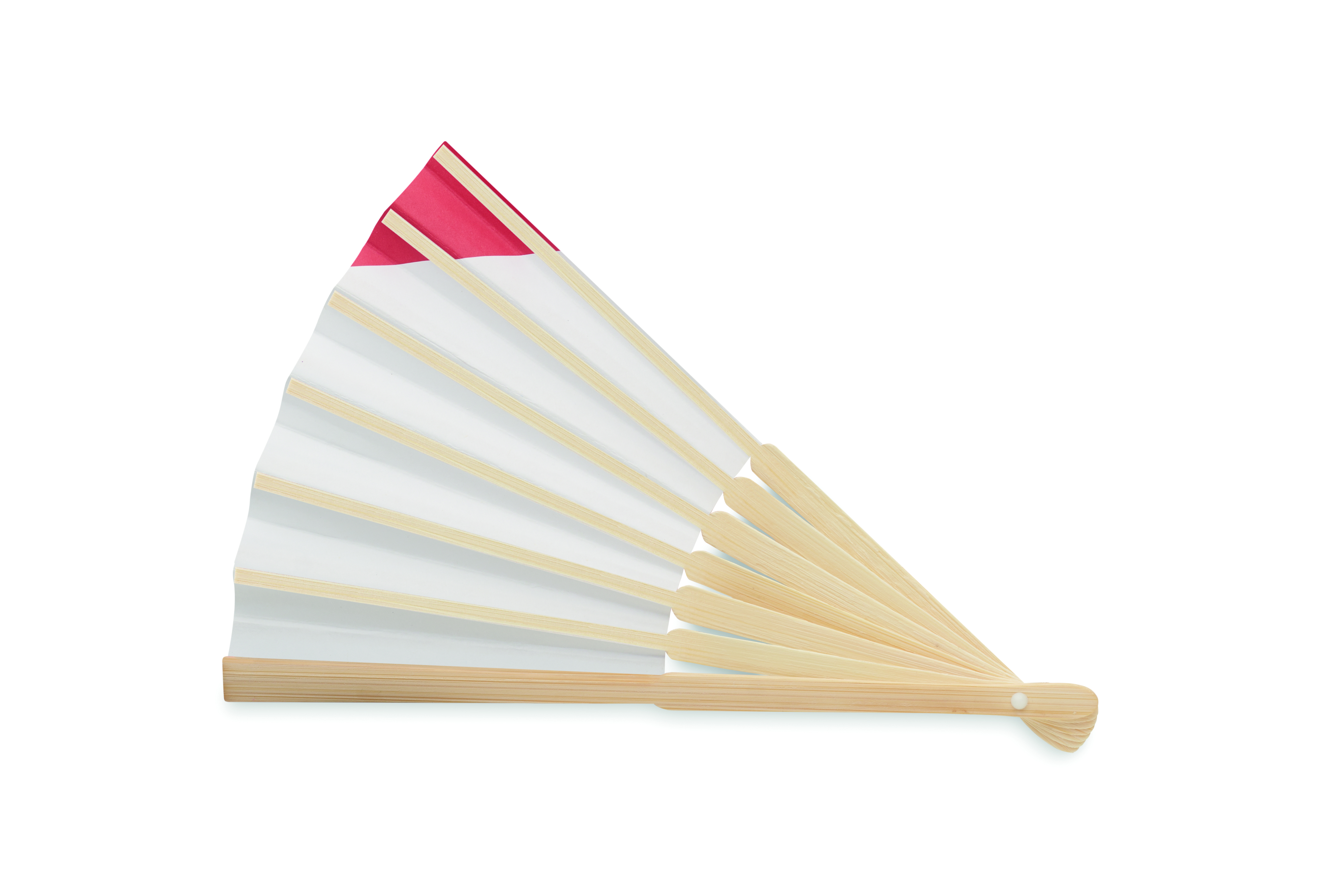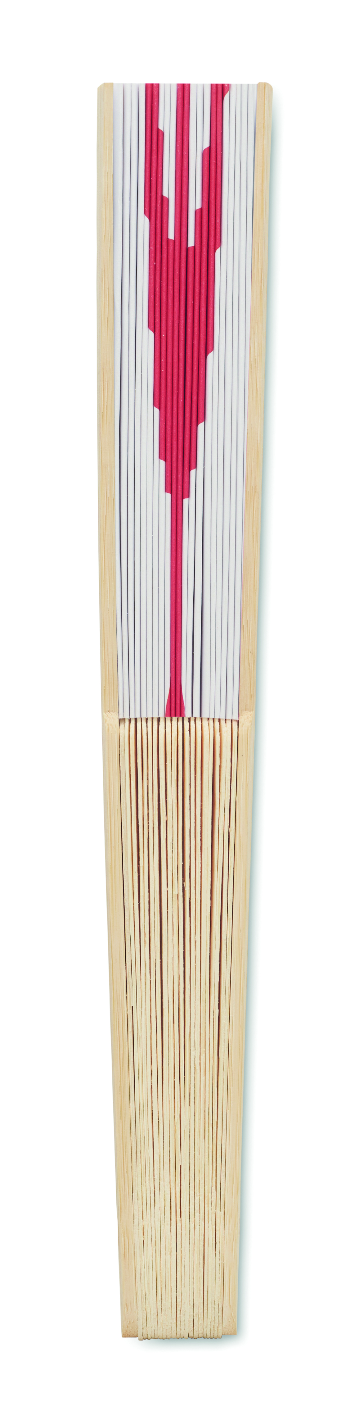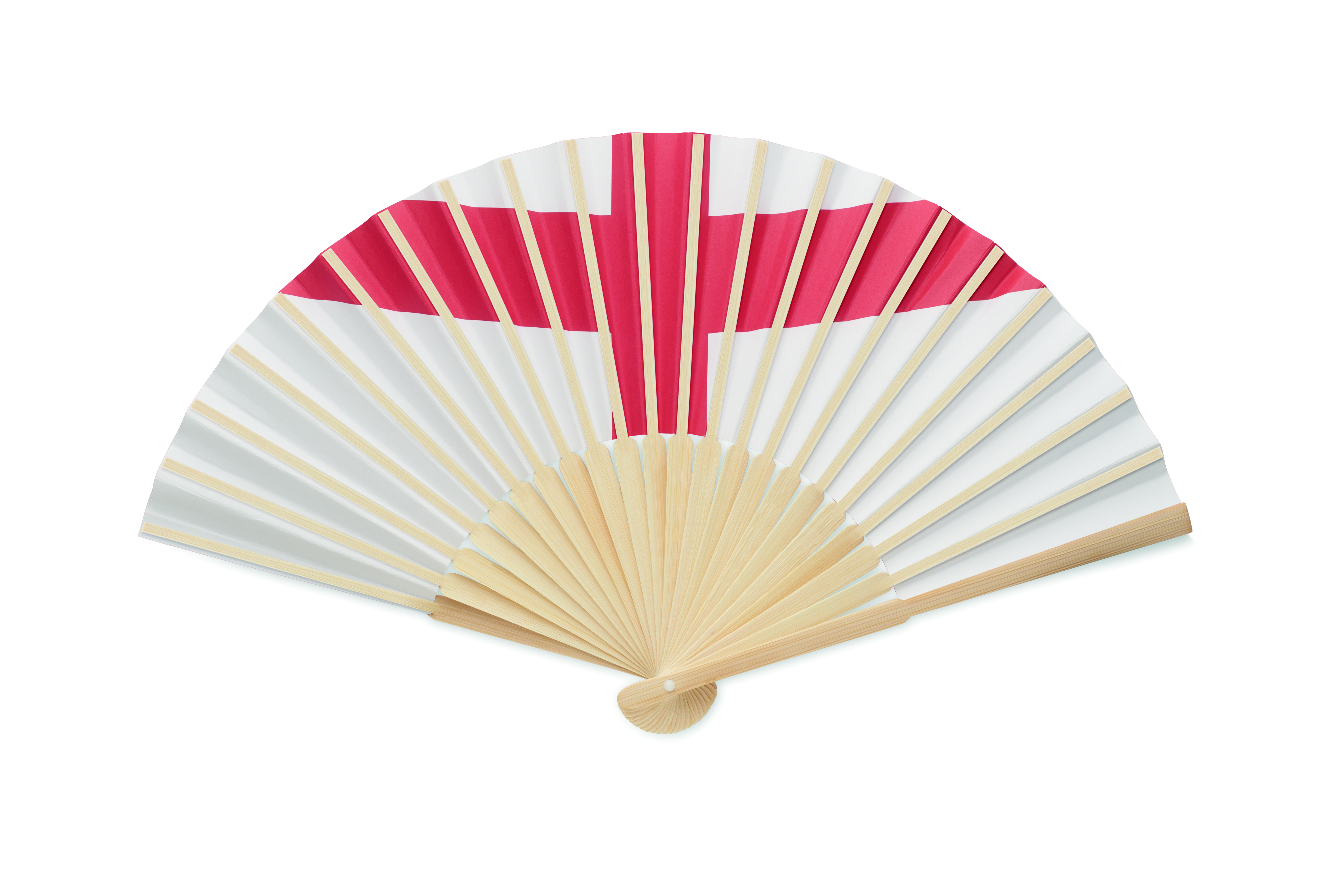 Wykonany z bambusa ręczny wachlarz z flagą na papierowym materiale.