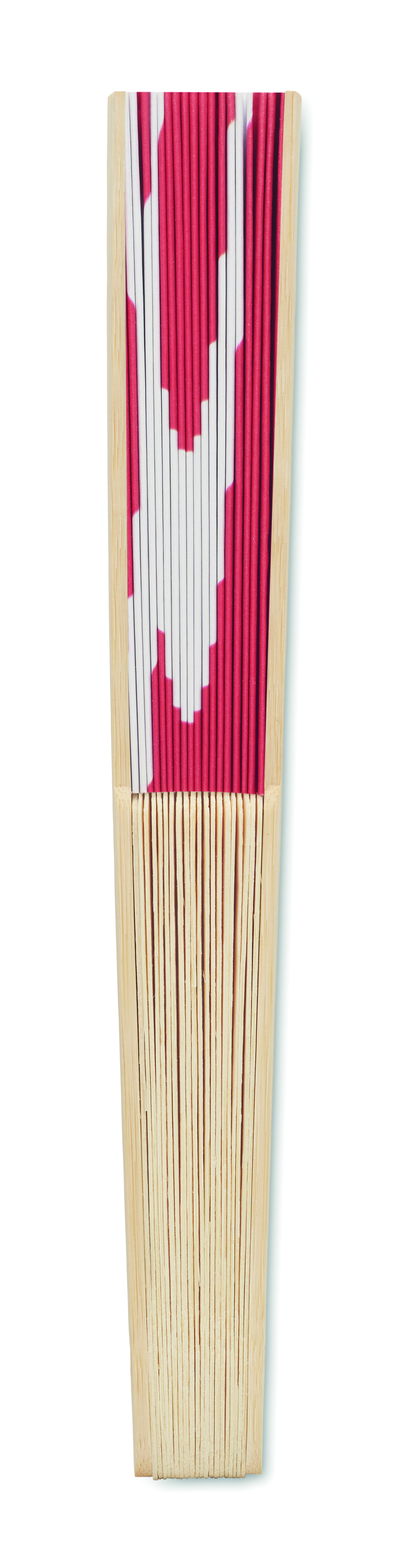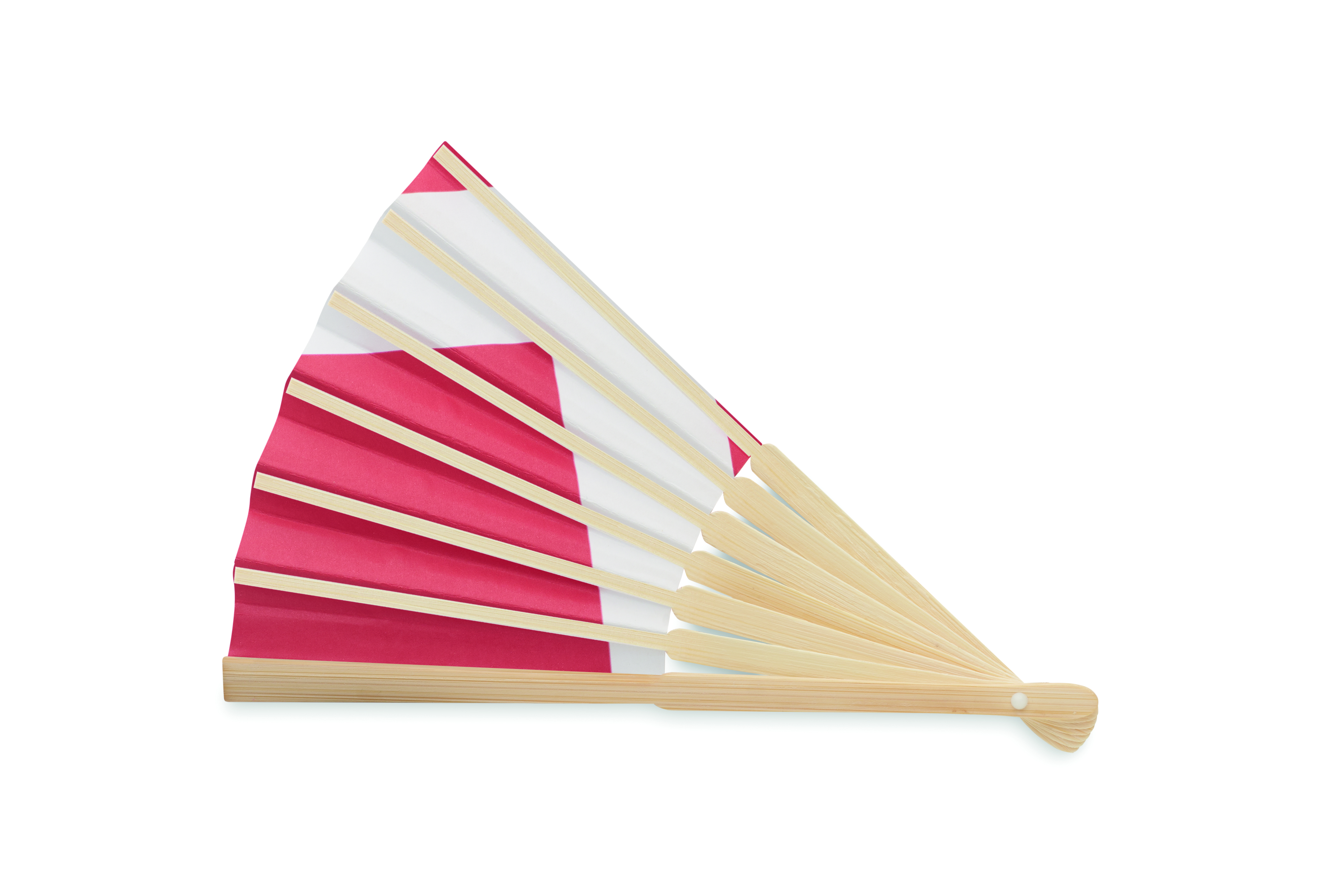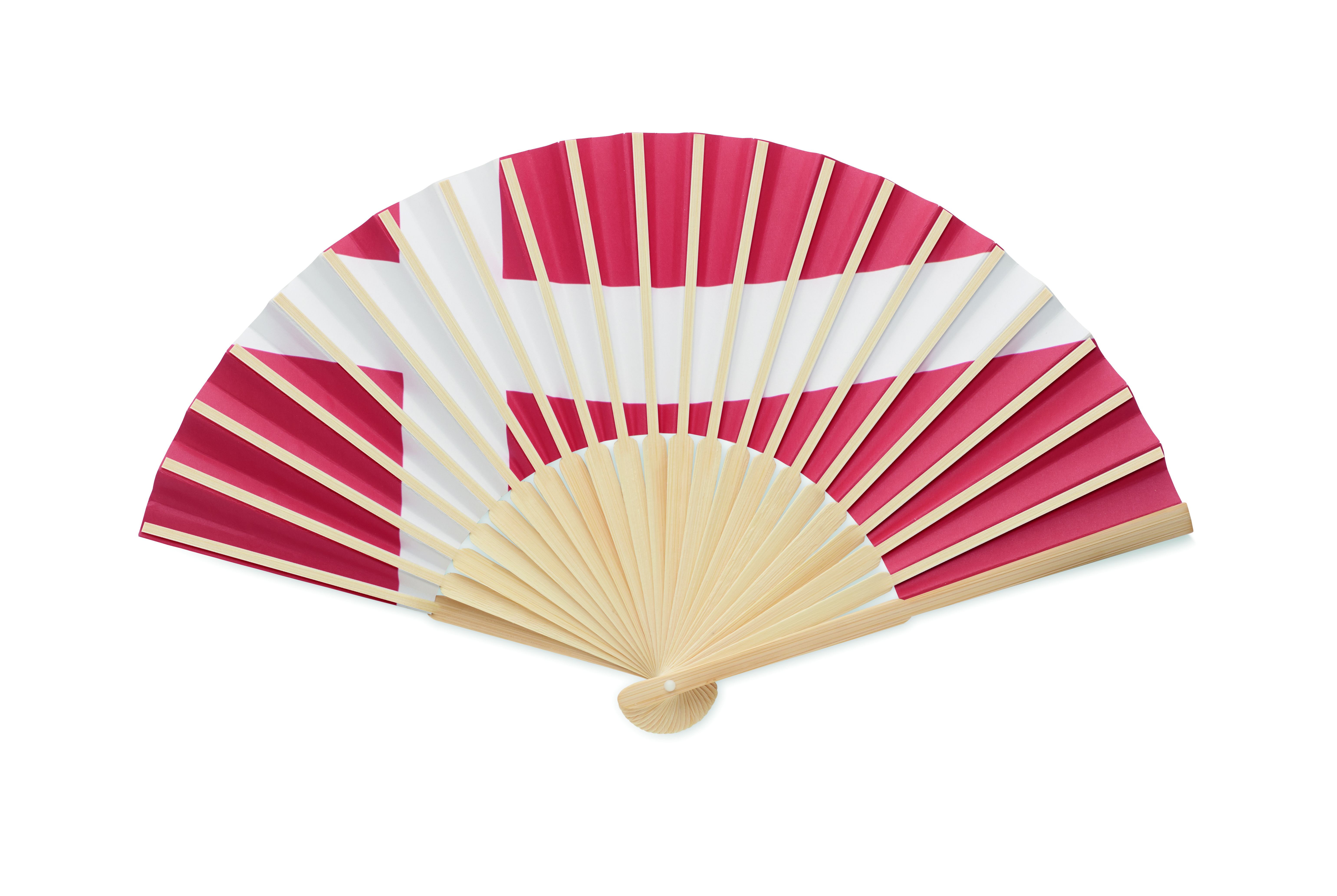 Wykonany z bambusa ręczny wachlarz z flagą na papierowym materiale.