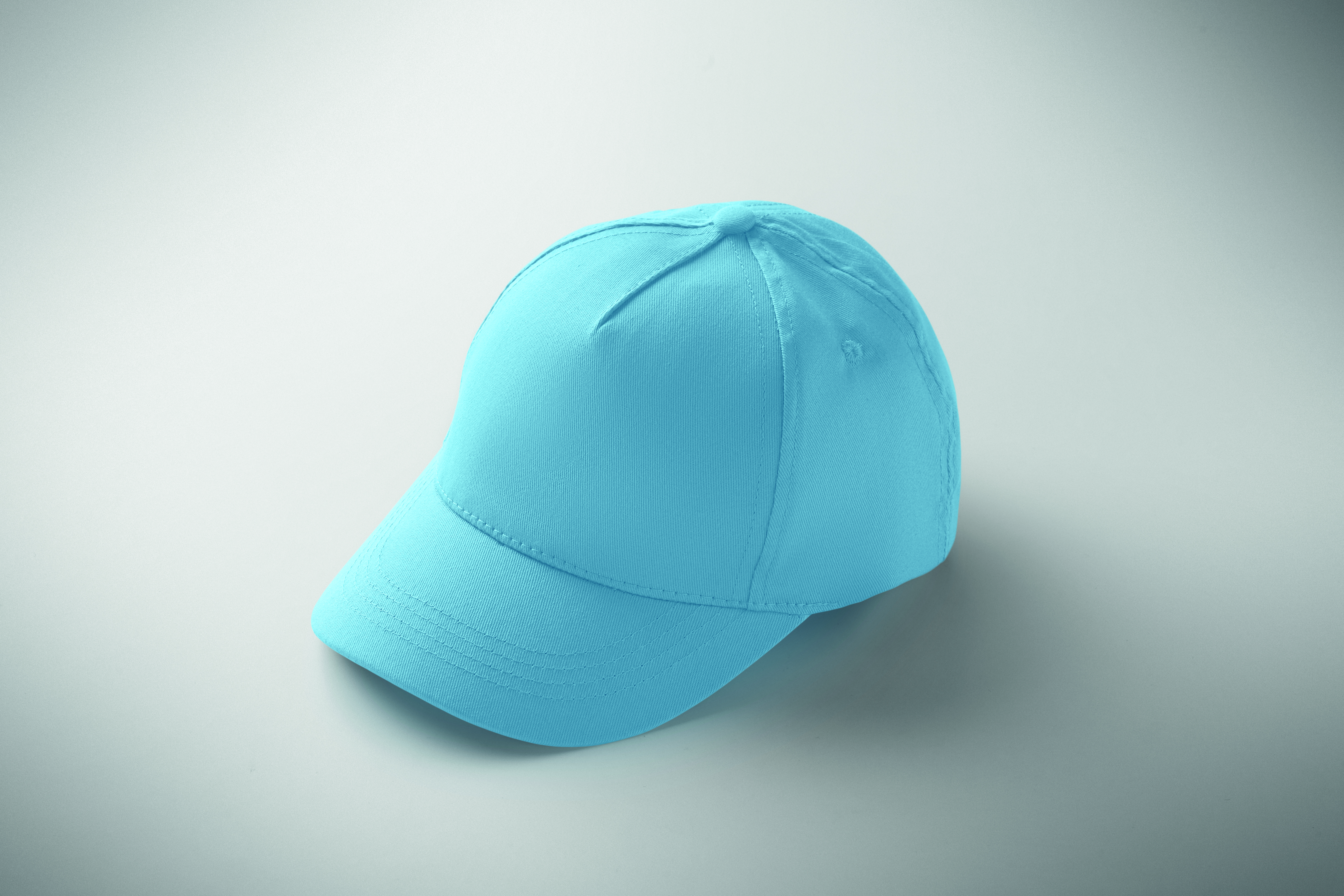 5-panelowa dziecięca czapka z daszkiem z bawełny twill 180 gr/m² z regulowanym zapięciem na rzep dla wygodnego dopasowania.