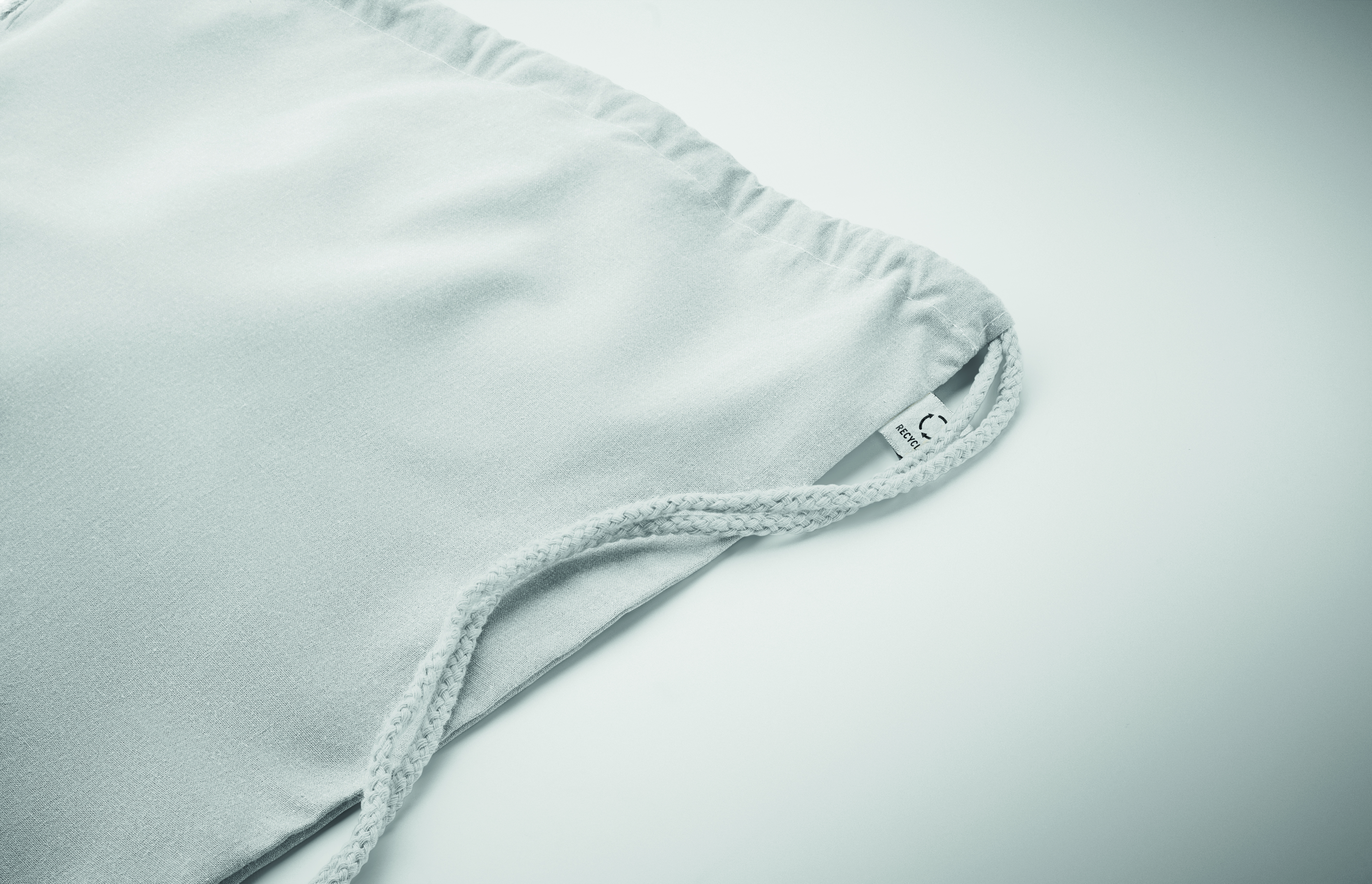 Worek ze sznurkiem wykonany z przetworzonej bawełny (70%) i RPET (30%). 140 gr/m². Ten produkt może się kurczyć po zadrukowaniu.
