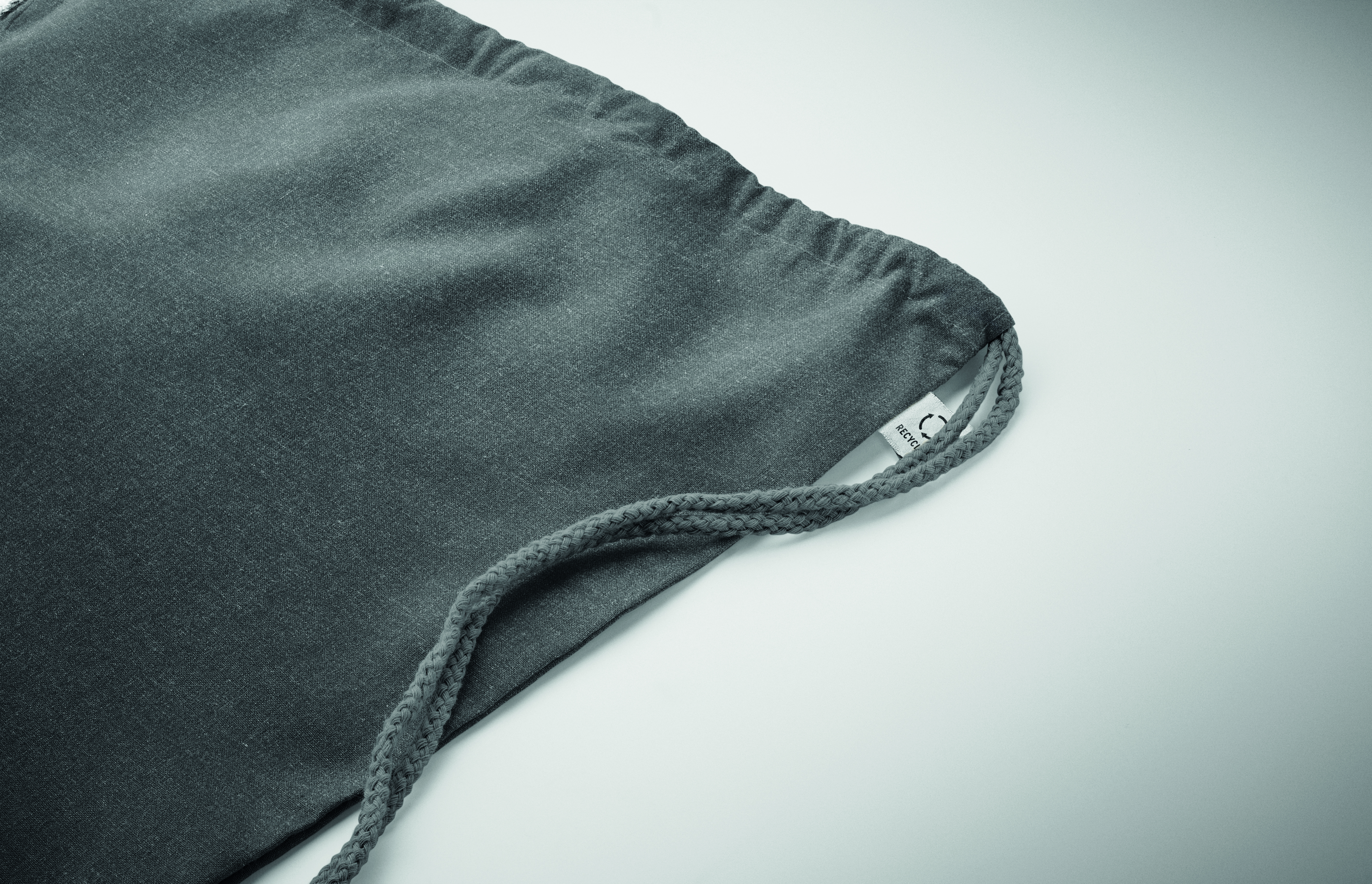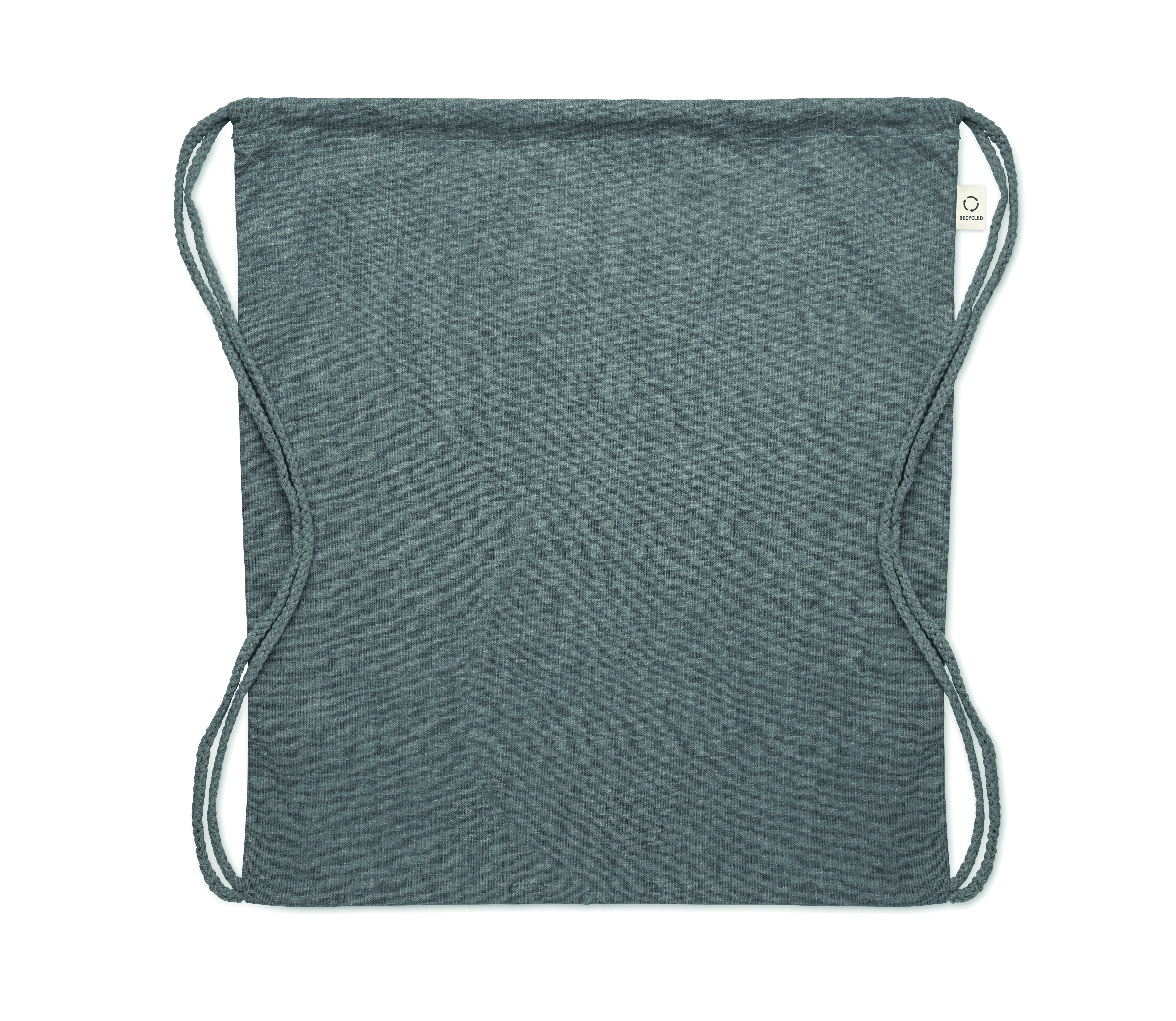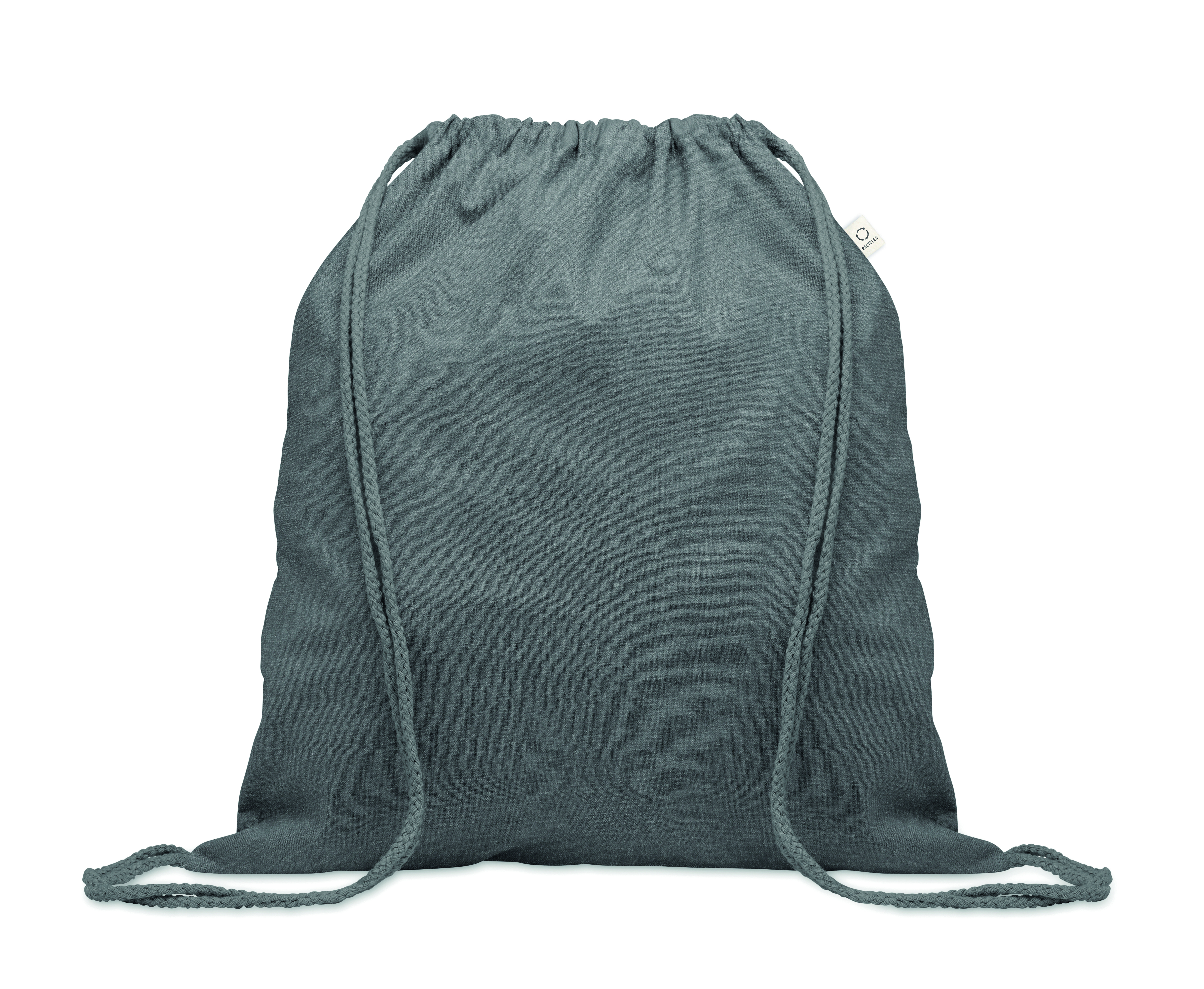 Worek ze sznurkiem wykonany z przetworzonej bawełny (70%) i RPET (30%). 140 gr/m². Ten produkt może się kurczyć po zadrukowaniu.