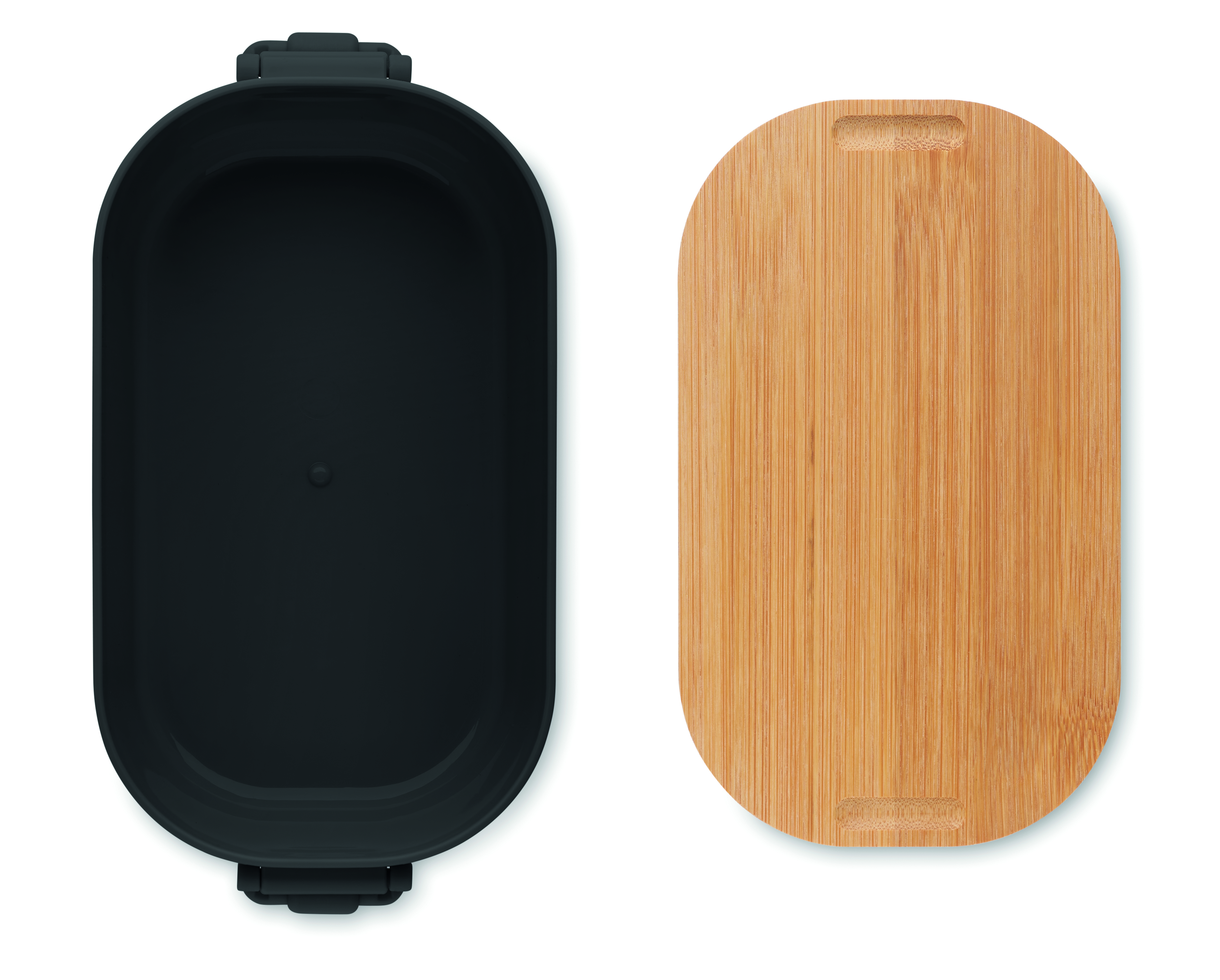 Pojemnik na lunch z PP z zapięciem z 2 stron i z bambusową pokrywką. Pojemność 700 ml.