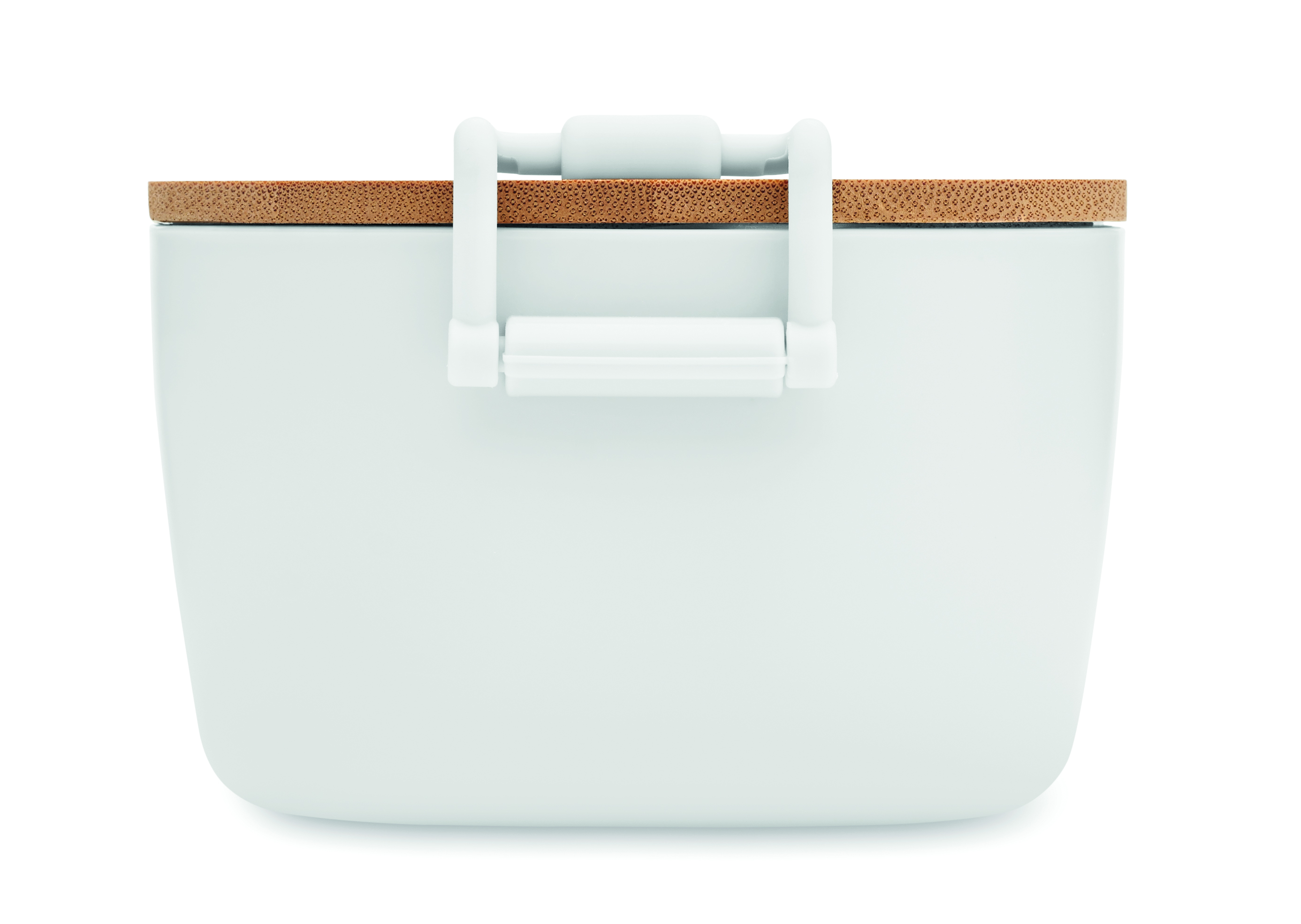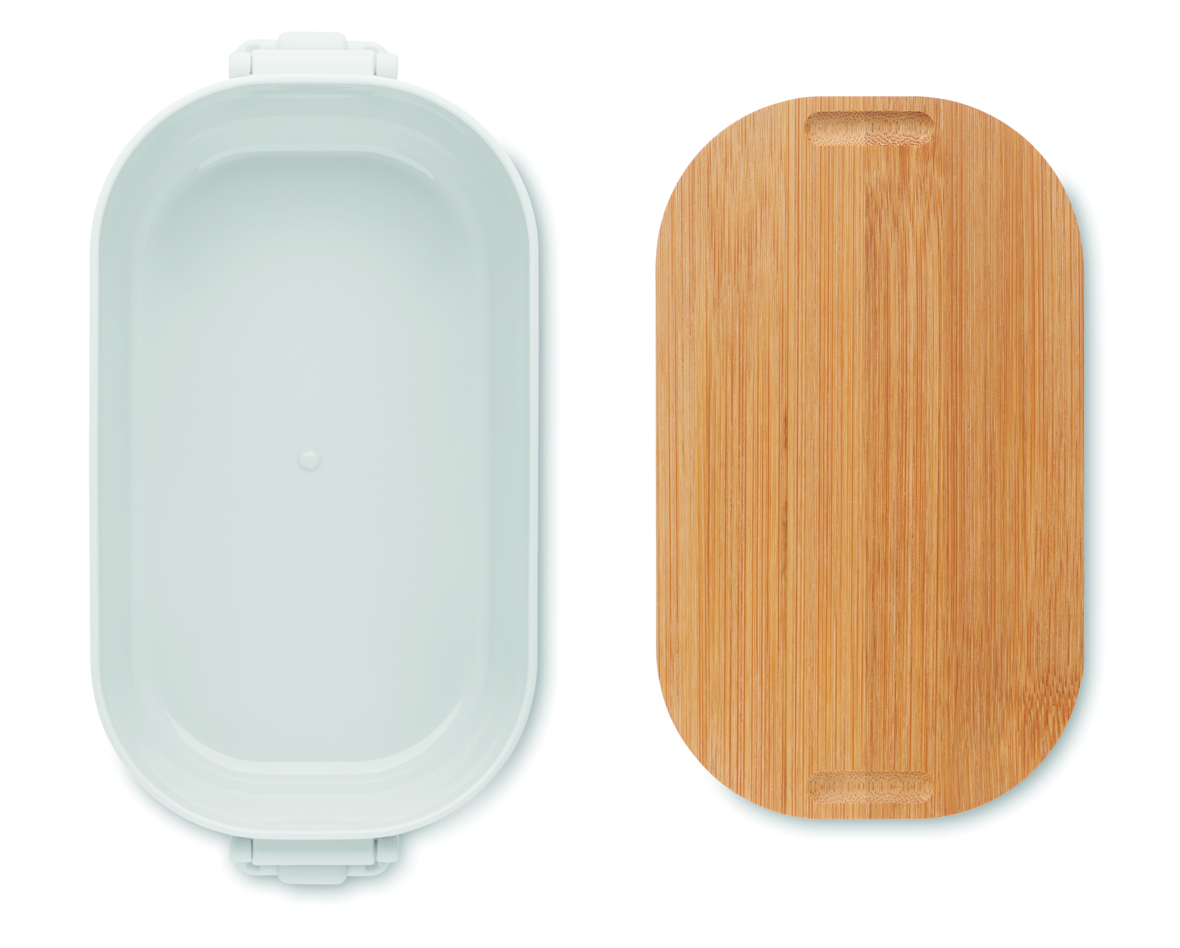 Pojemnik na lunch z PP z zapięciem z 2 stron i z bambusową pokrywką. Pojemność 700 ml.