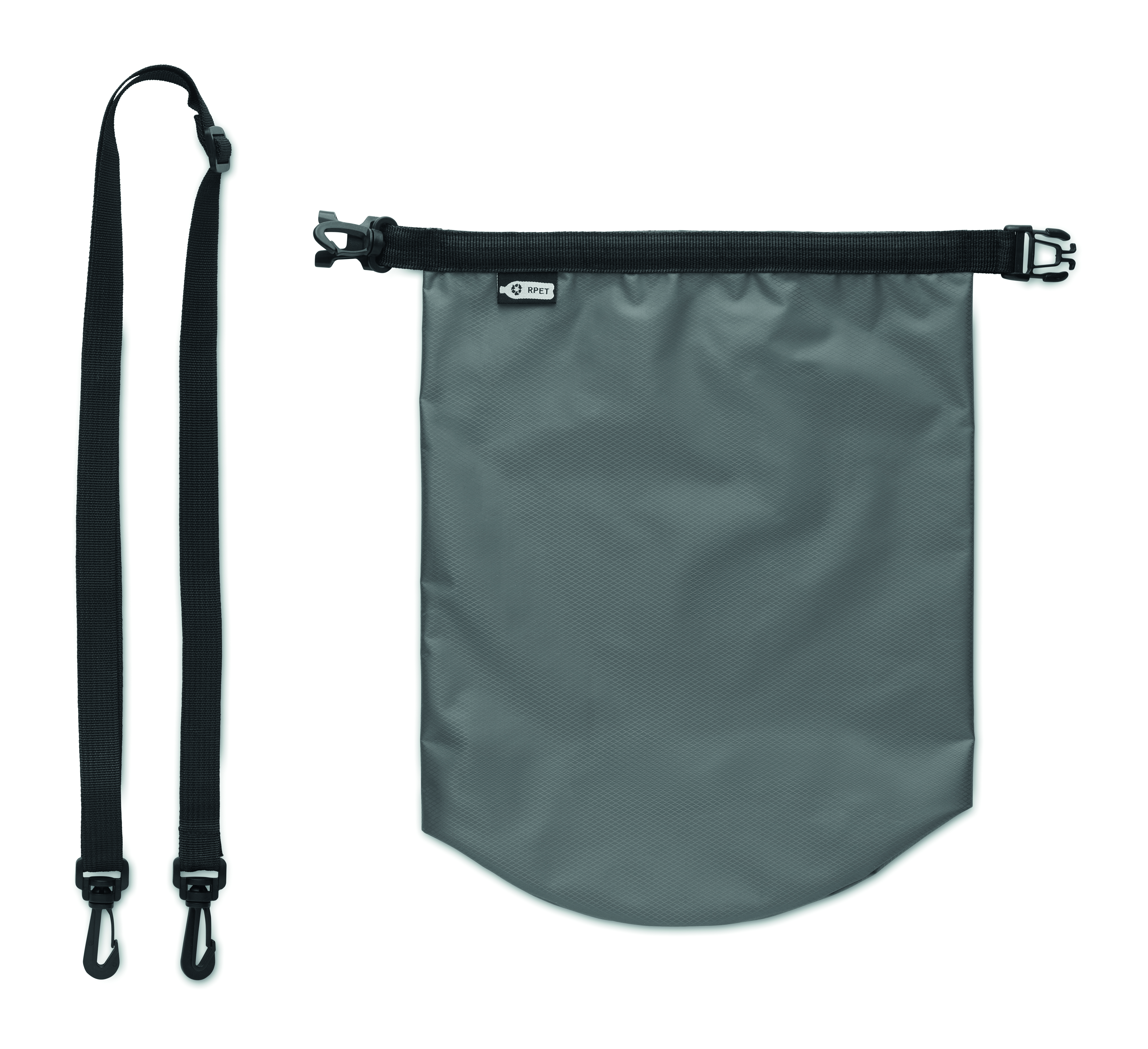 Wodoodporna (IPX6) torba z 210T RPET ripstop z paskiem na ramię. Pojemność 5 l.
