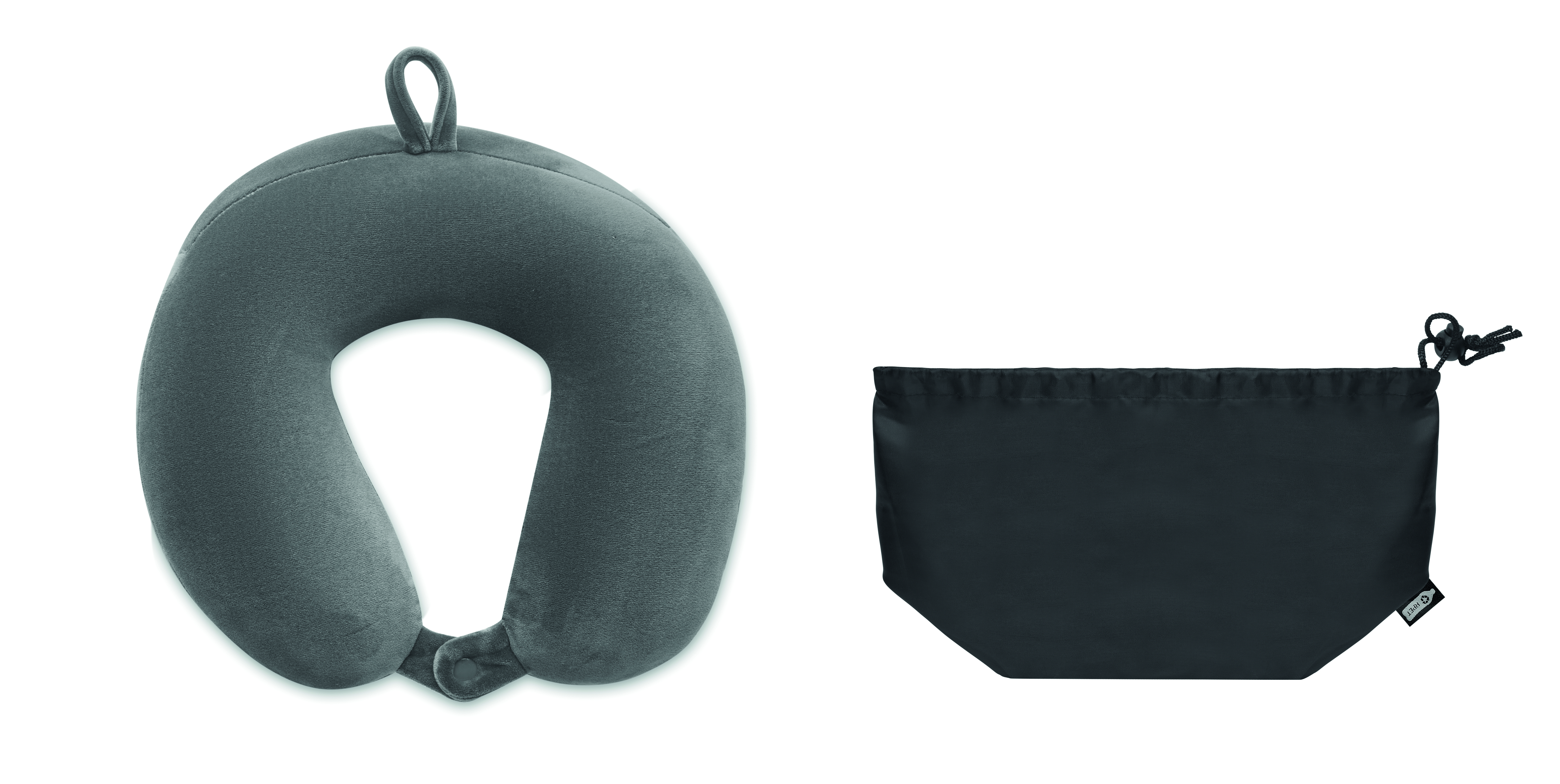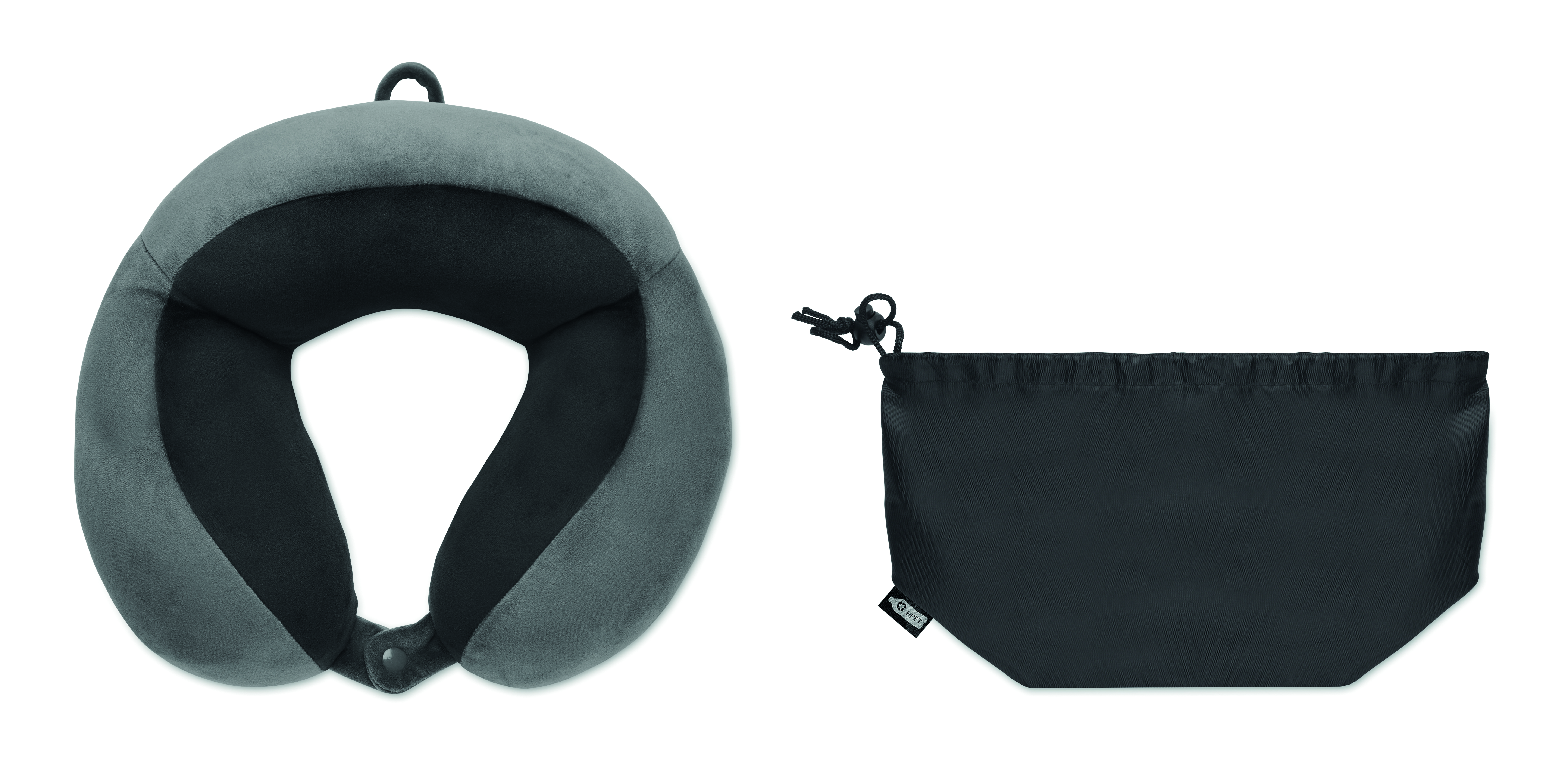 Poduszka podróżna z pianki z miękkim spandeksem. W etui ze sznurkiem z poliestru 210D RPET.
