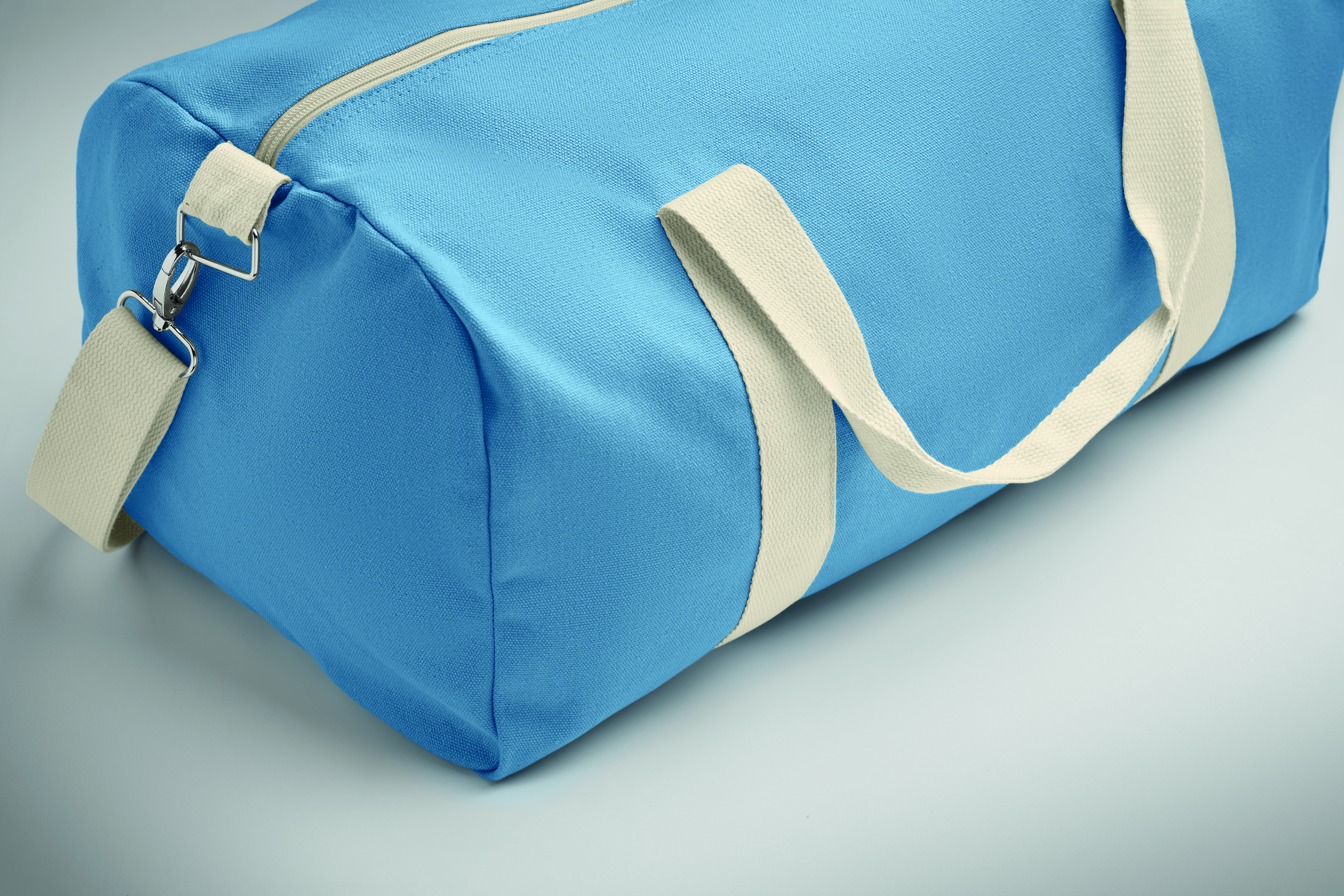 Torba na ramię wykonana z materiałów pochodzących z recyklingu (60% bawełna z recyklingu, 40% poliester z recyklingu) o gramaturze 320 gr/m² z uchwytem z naturalnej bawełny oraz regulowanym i odpinanym paskiem na ramię.