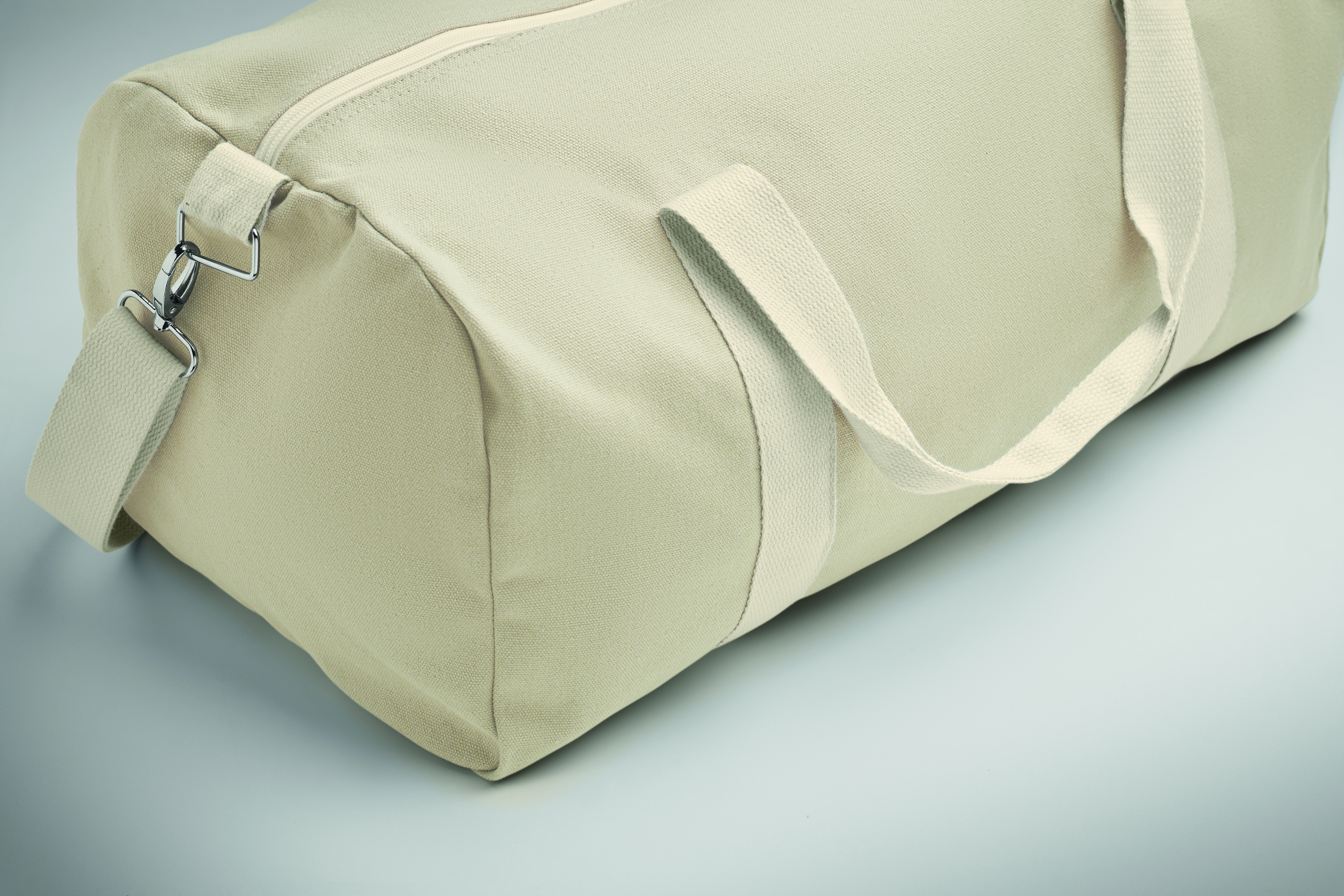 Torba na ramię wykonana z materiałów pochodzących z recyklingu (60% bawełna z recyklingu, 40% poliester z recyklingu) o gramaturze 320 gr/m² z uchwytem z naturalnej bawełny oraz regulowanym i odpinanym paskiem na ramię.