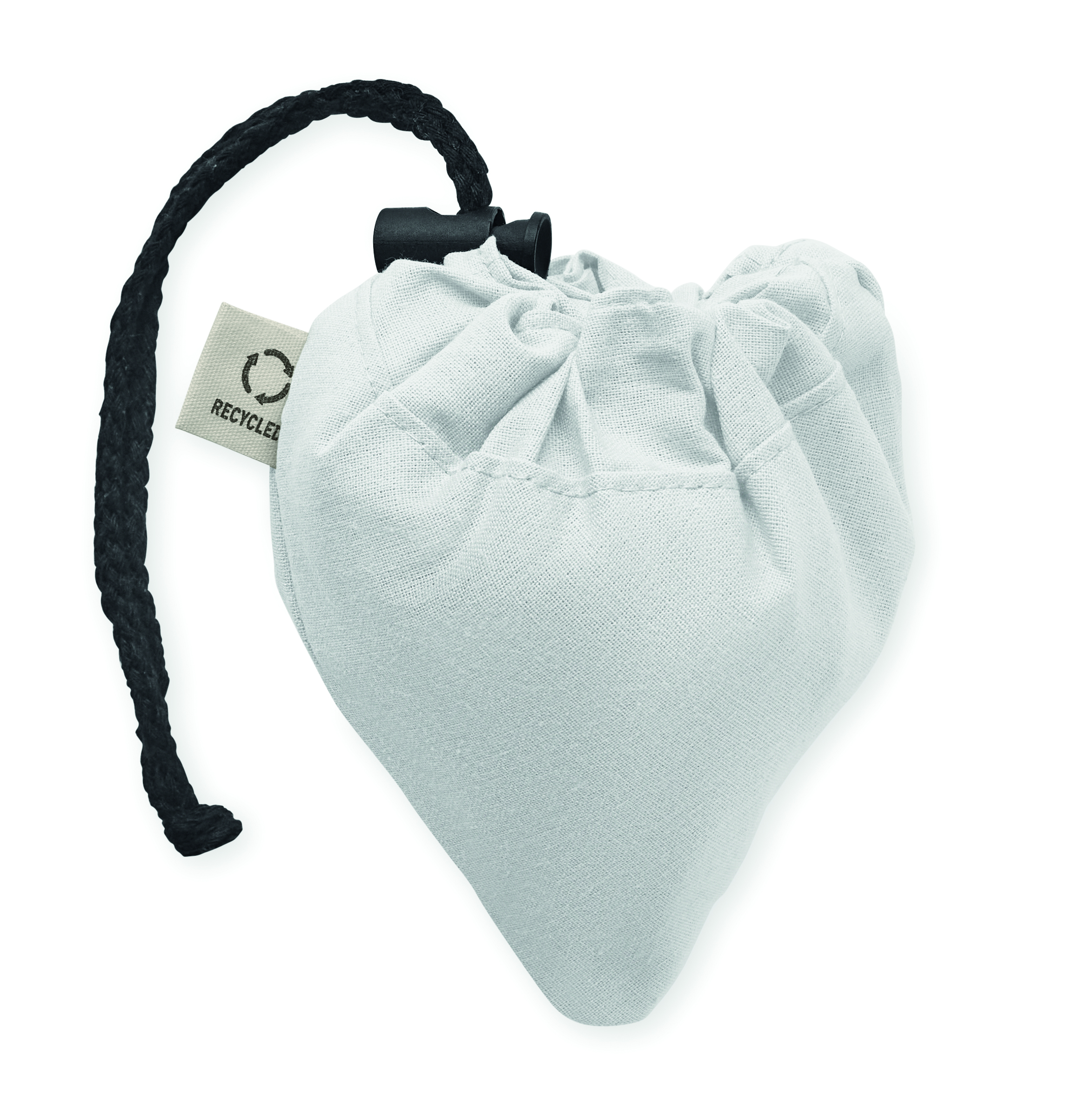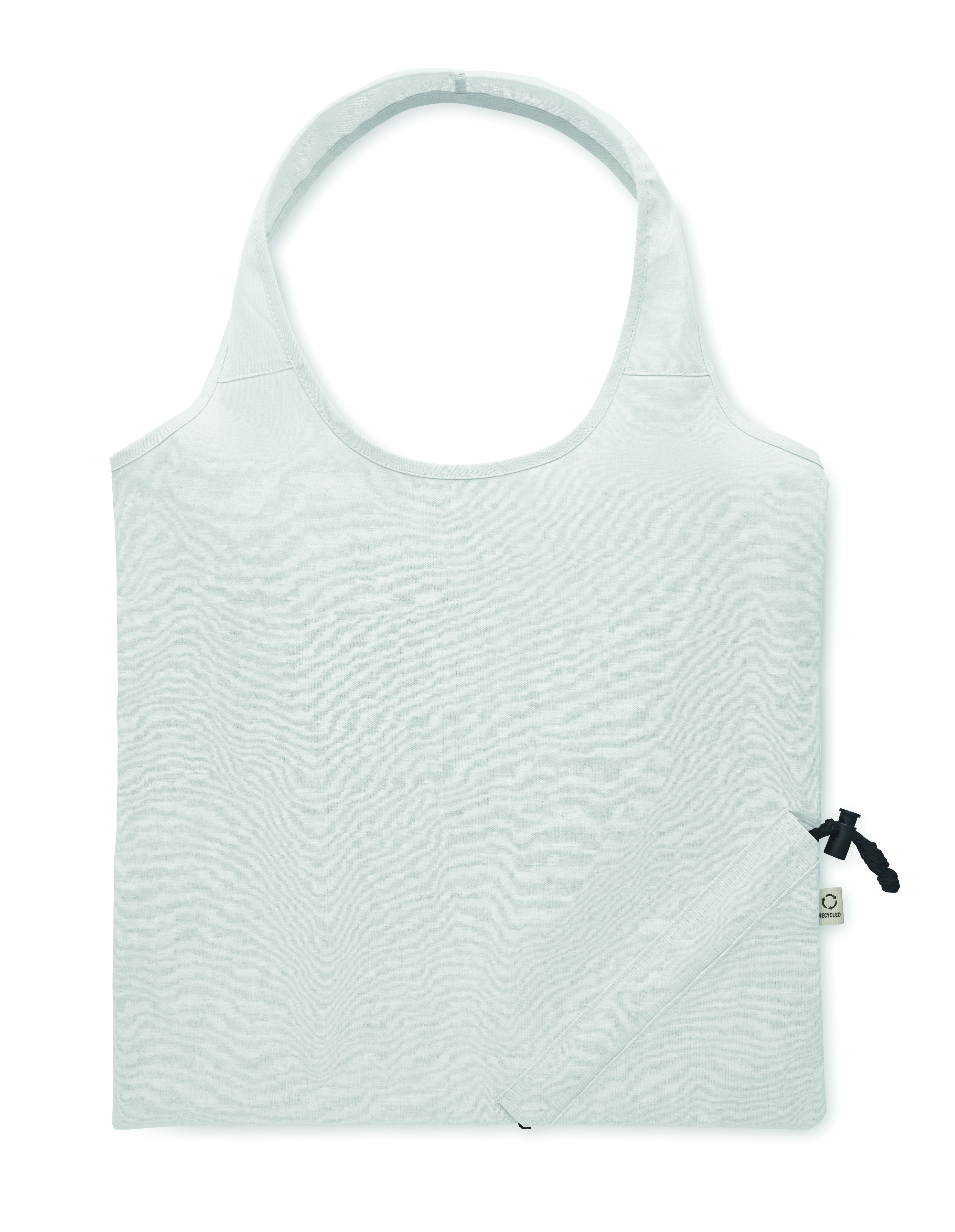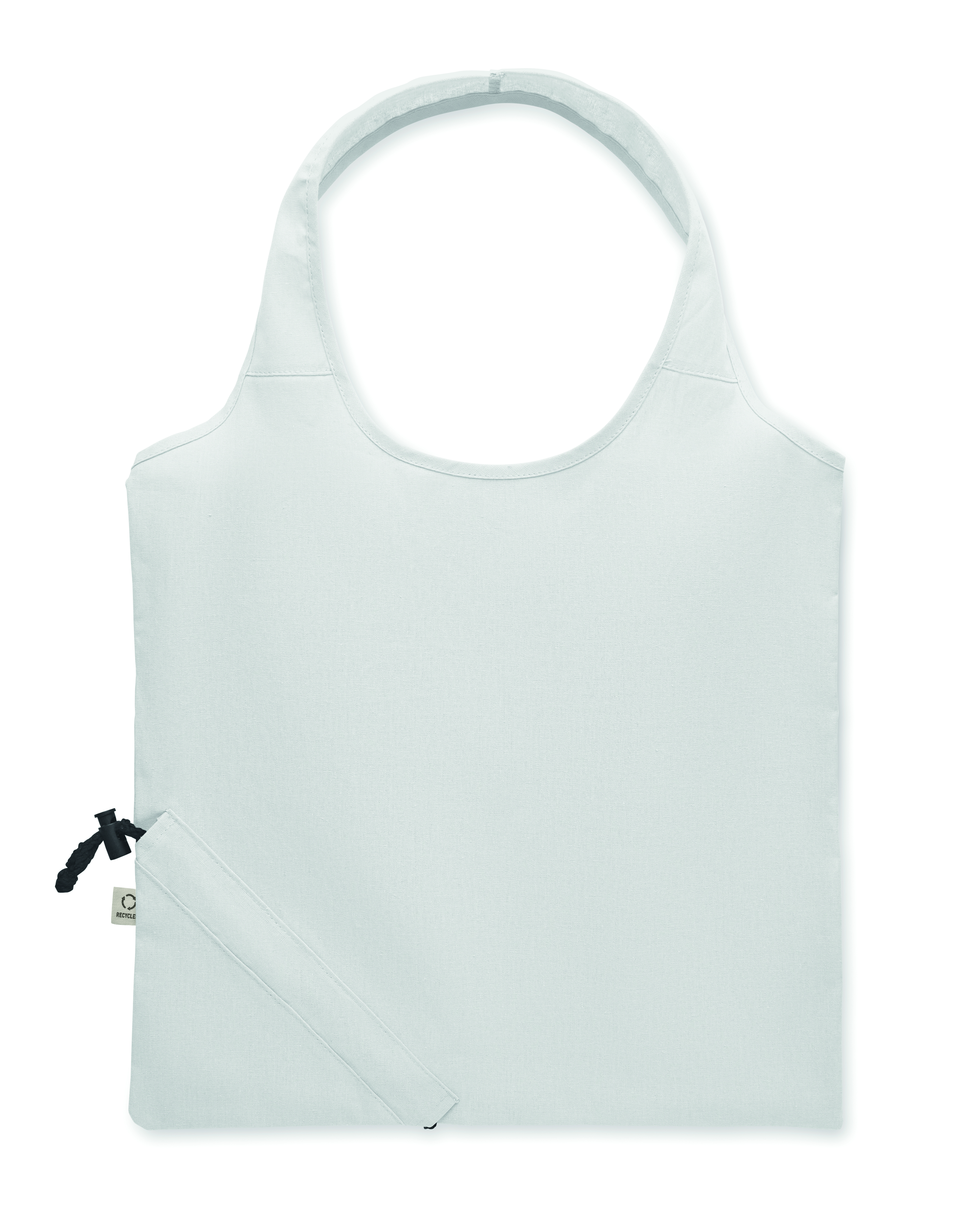 Składana torba na zakupy z bawełny pochodzącej z recyklingu (70% bawełny z recyklingu i 30% RPET). 140 gr/m². Ten produkt może się kurczyć po zadrukowaniu.