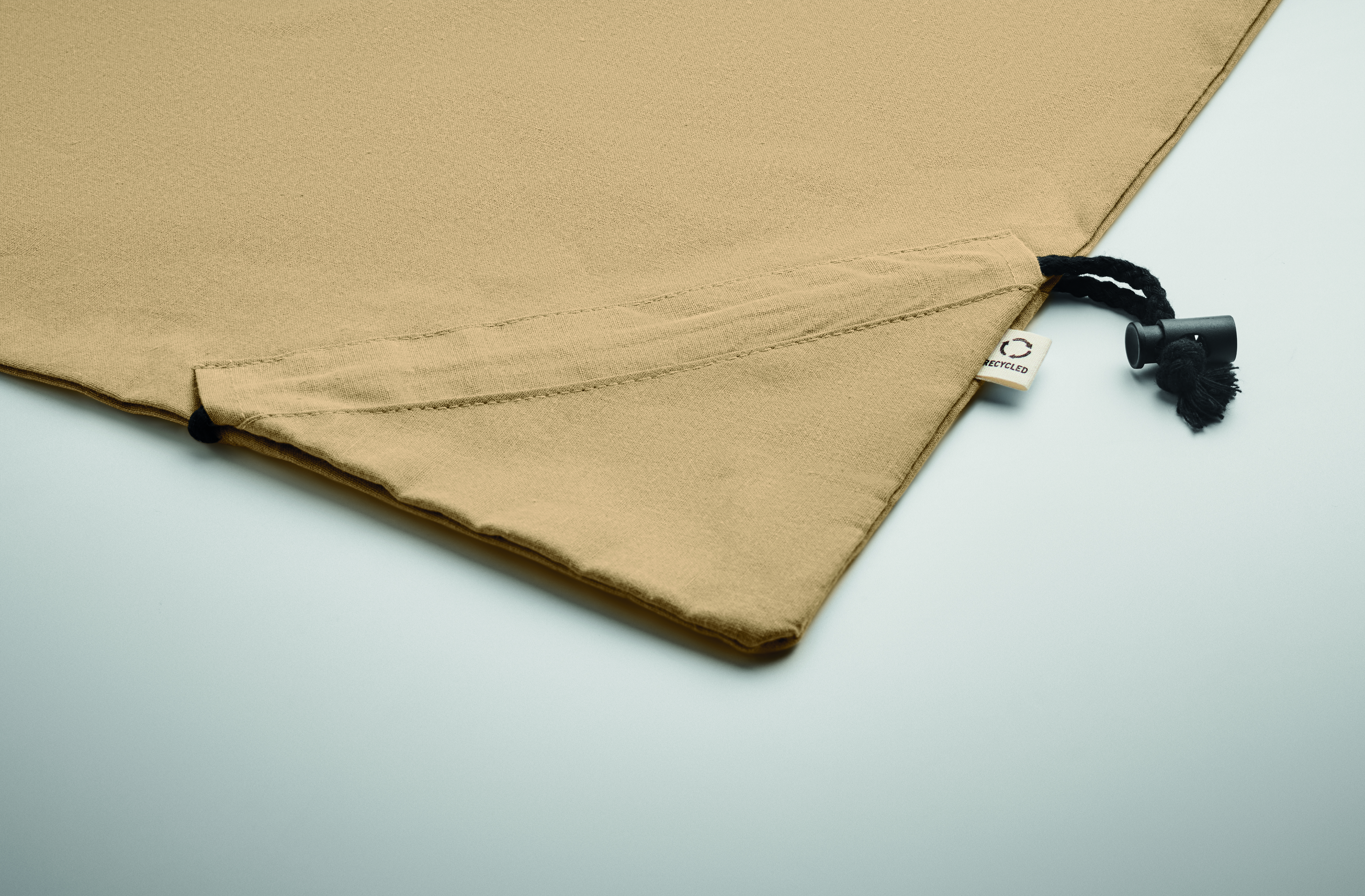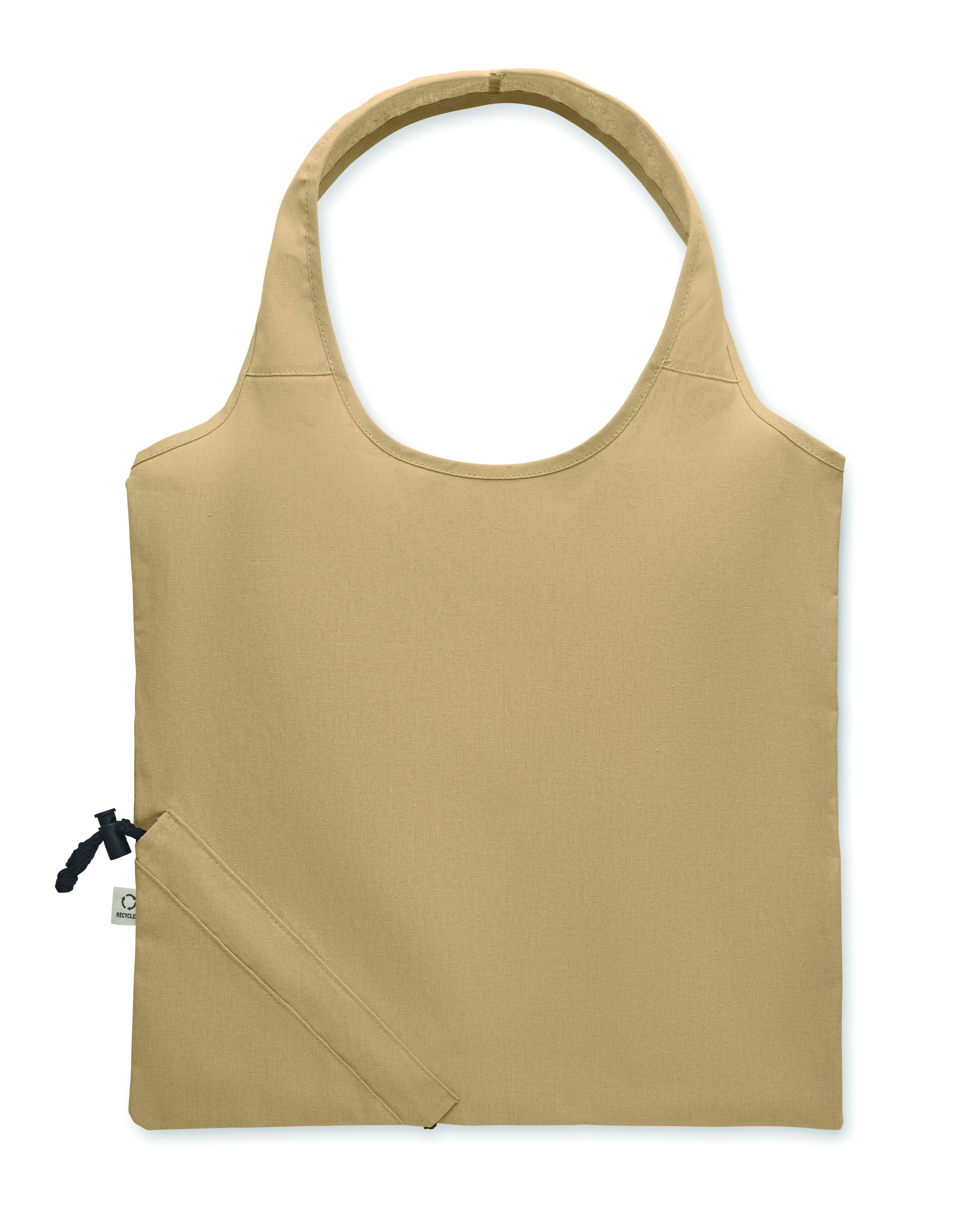 Składana torba na zakupy z bawełny pochodzącej z recyklingu (70% bawełny z recyklingu i 30% RPET). 140 gr/m². Ten produkt może się kurczyć po zadrukowaniu.