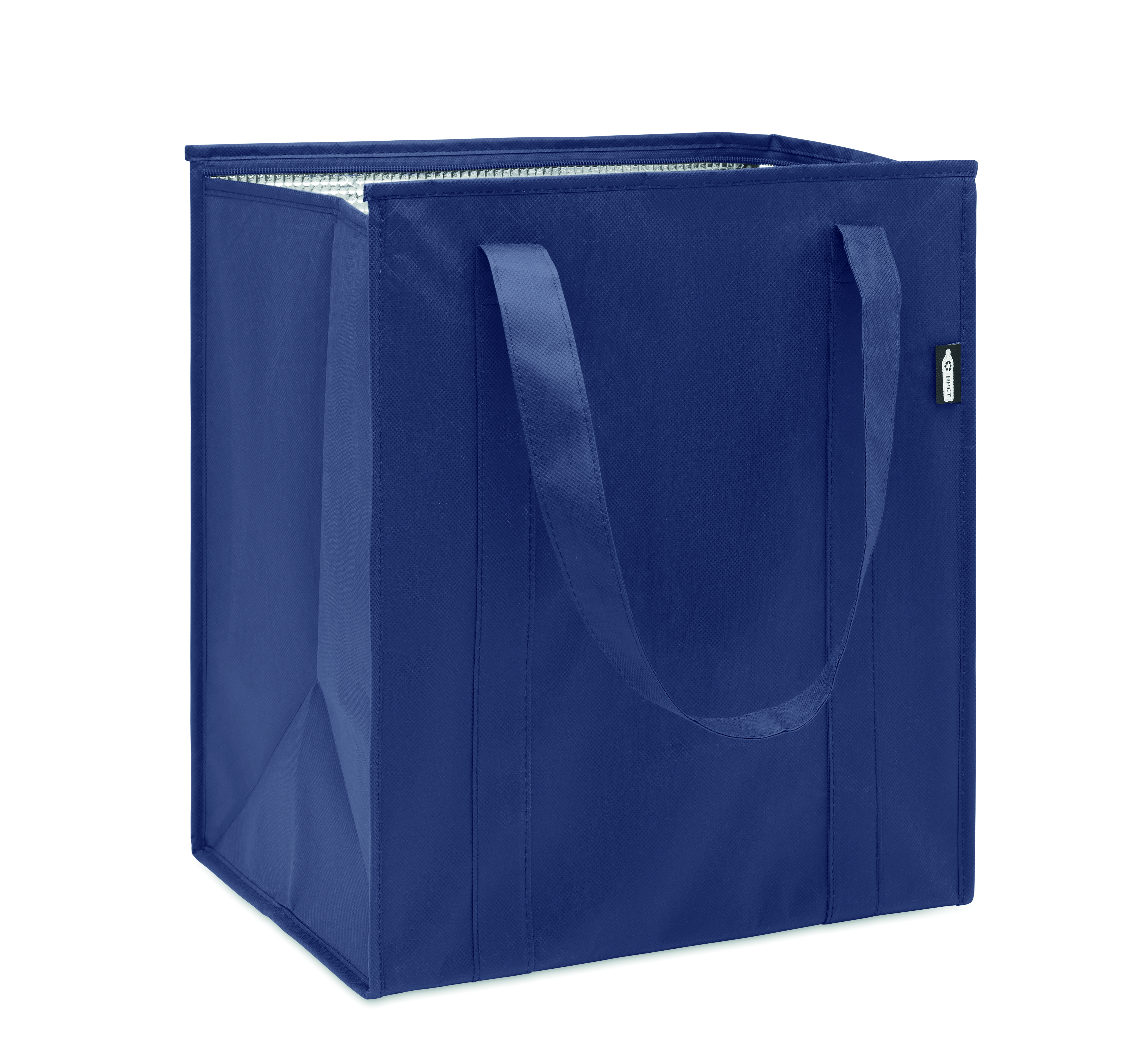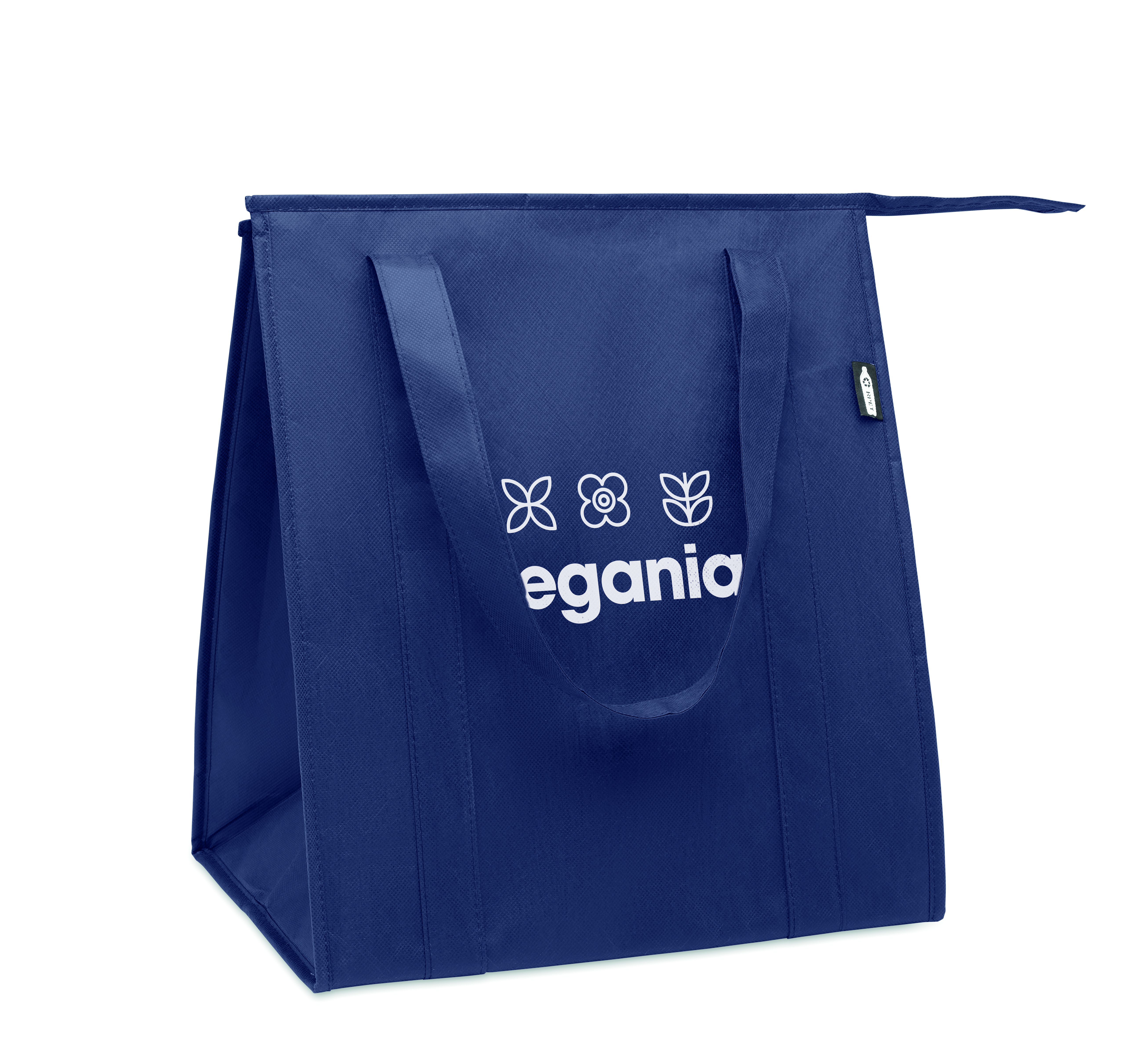 Torba chłodząca z włókniny RPET 80gr/m². Materiał izolacyjny: folia aluminiowa. Pojemność 25 l. Główna komora z zamkiem błyskawicznym na górze.