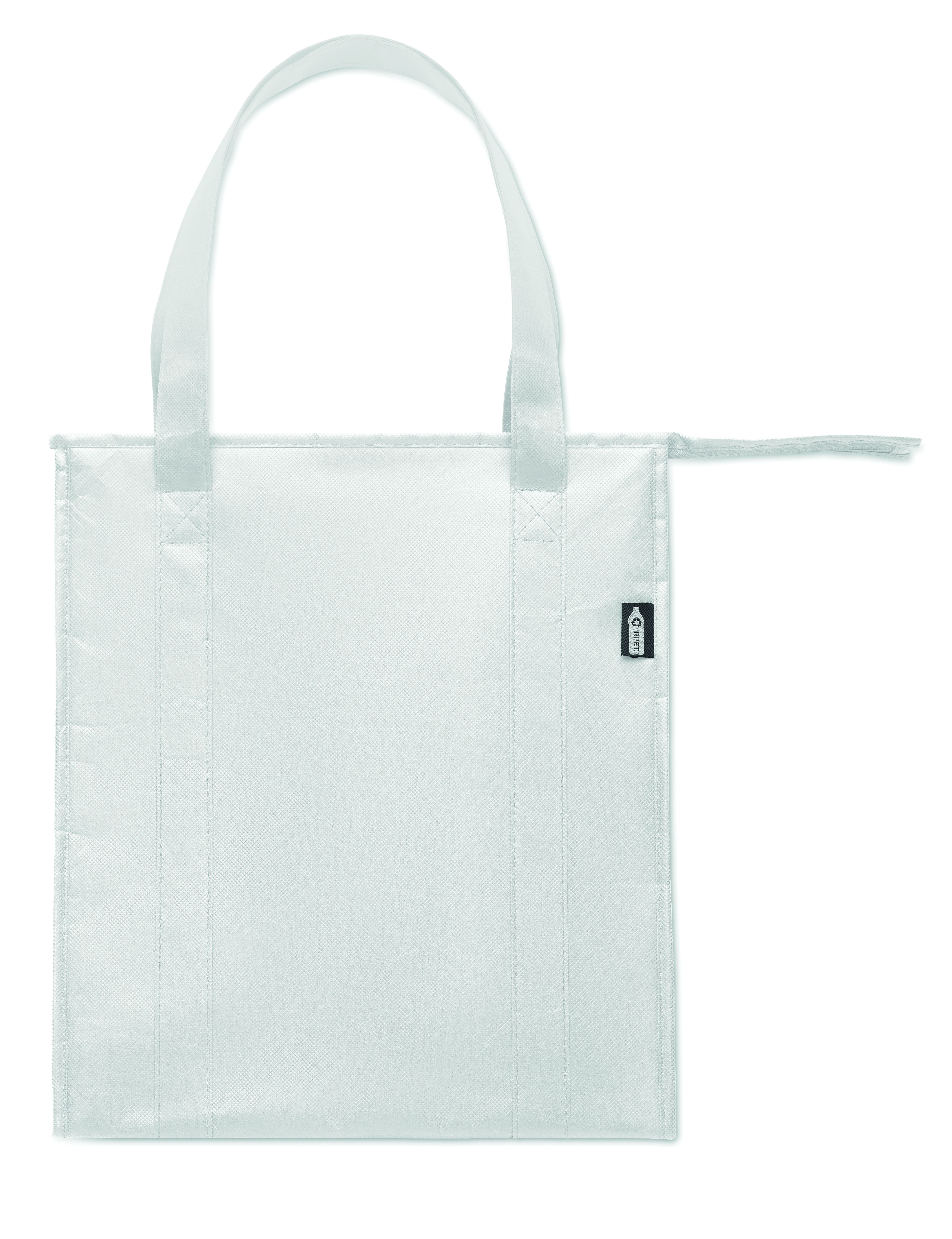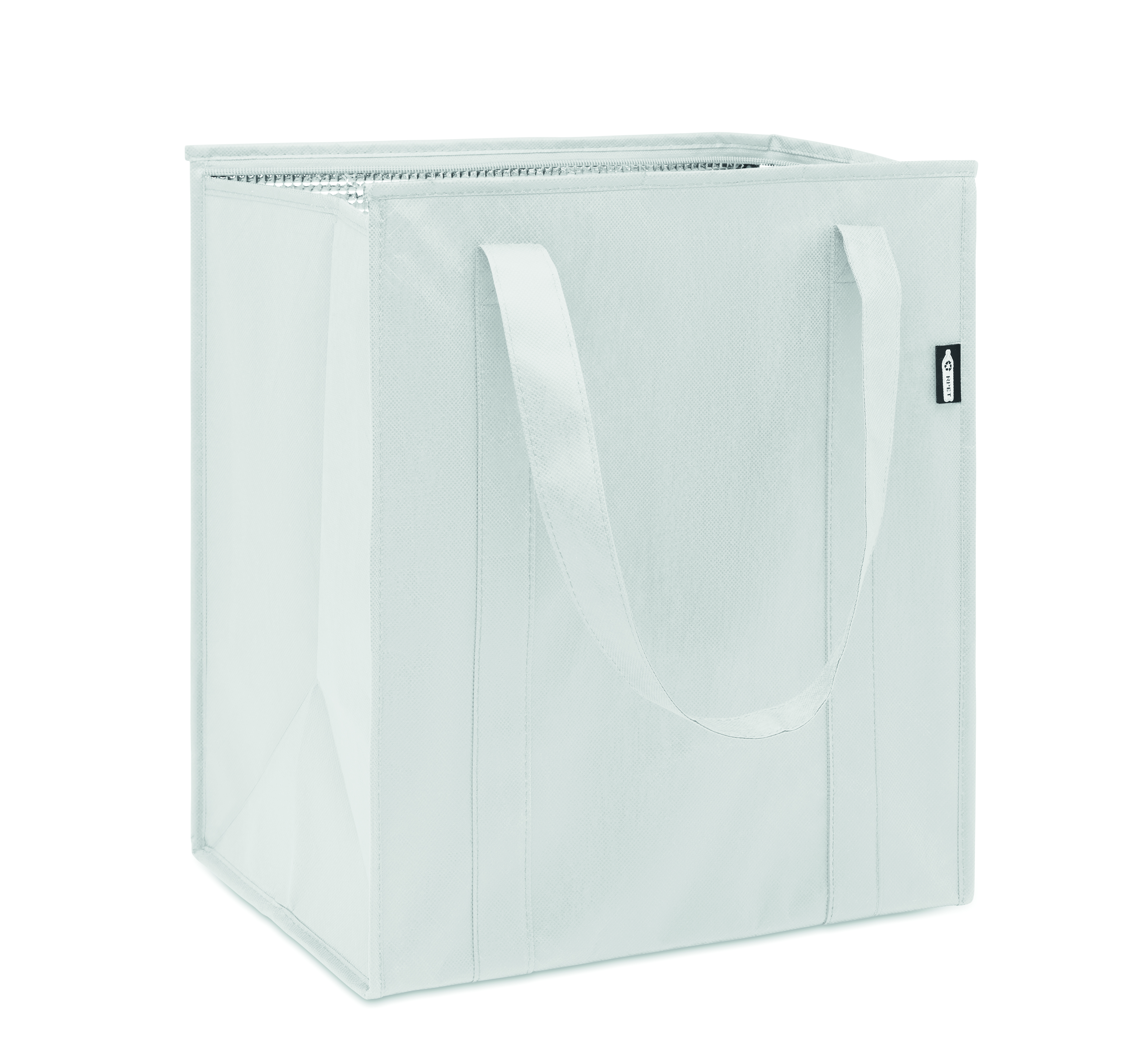 Torba chłodząca z włókniny RPET 80gr/m². Materiał izolacyjny: folia aluminiowa. Pojemność 25 l. Główna komora z zamkiem błyskawicznym na górze.