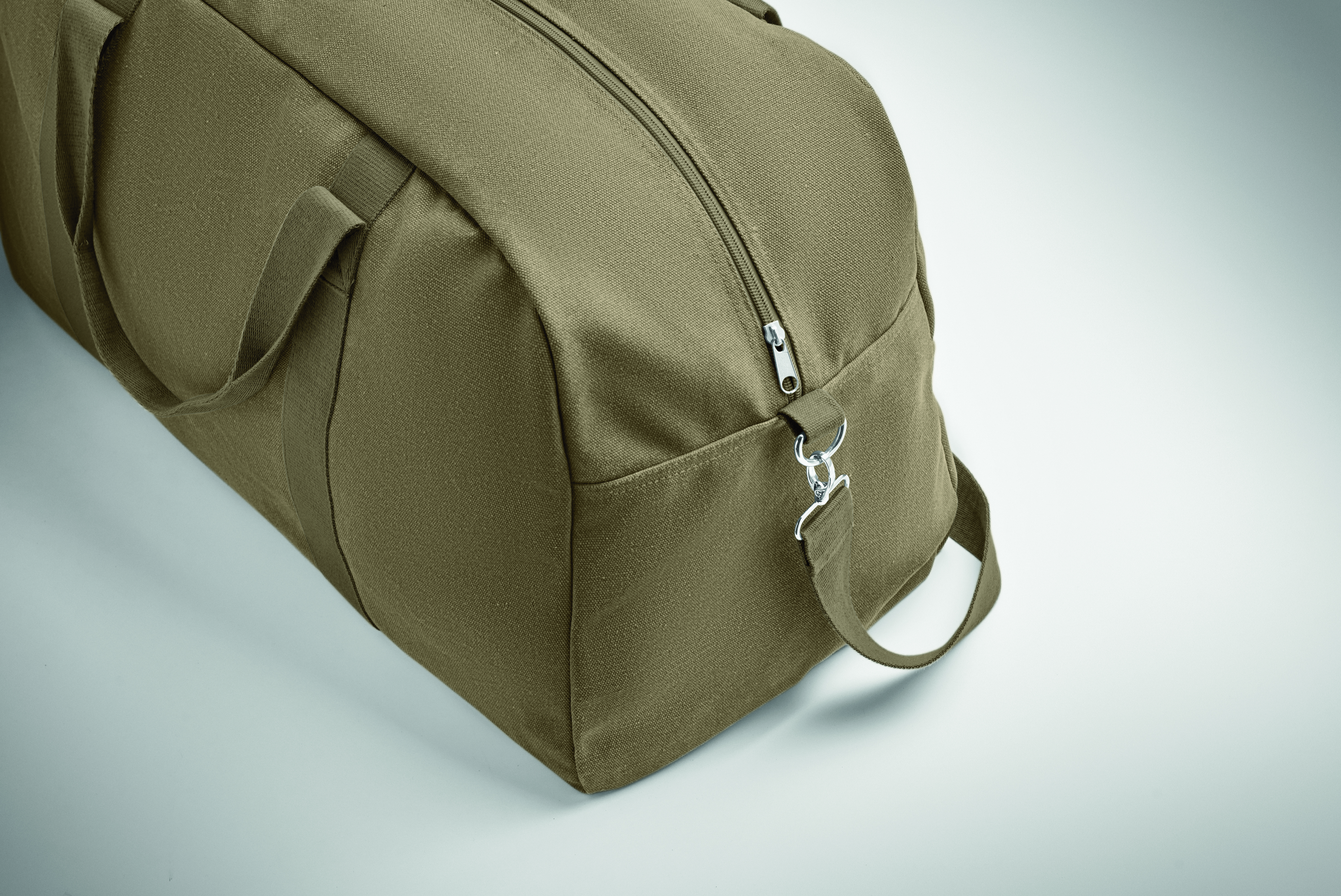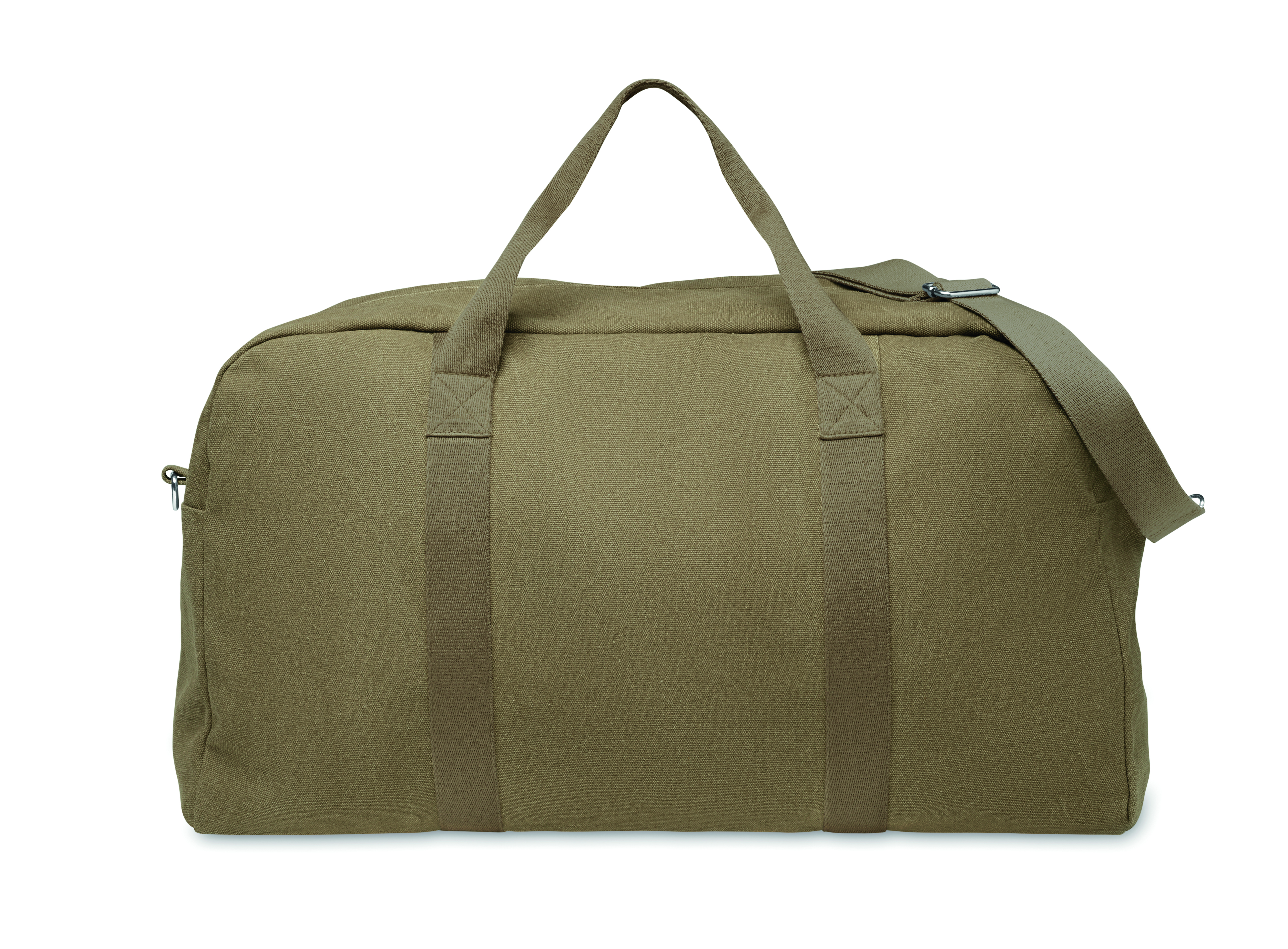 Torba podróżna Duffle wykonana z materiałów pochodzących z recyklingu o gramaturze 450 gr/m² (60% bawełna z recyklingu i 40% poliester z recyklingu) z regulowanym i odpinanym bawełnianym paskiem.