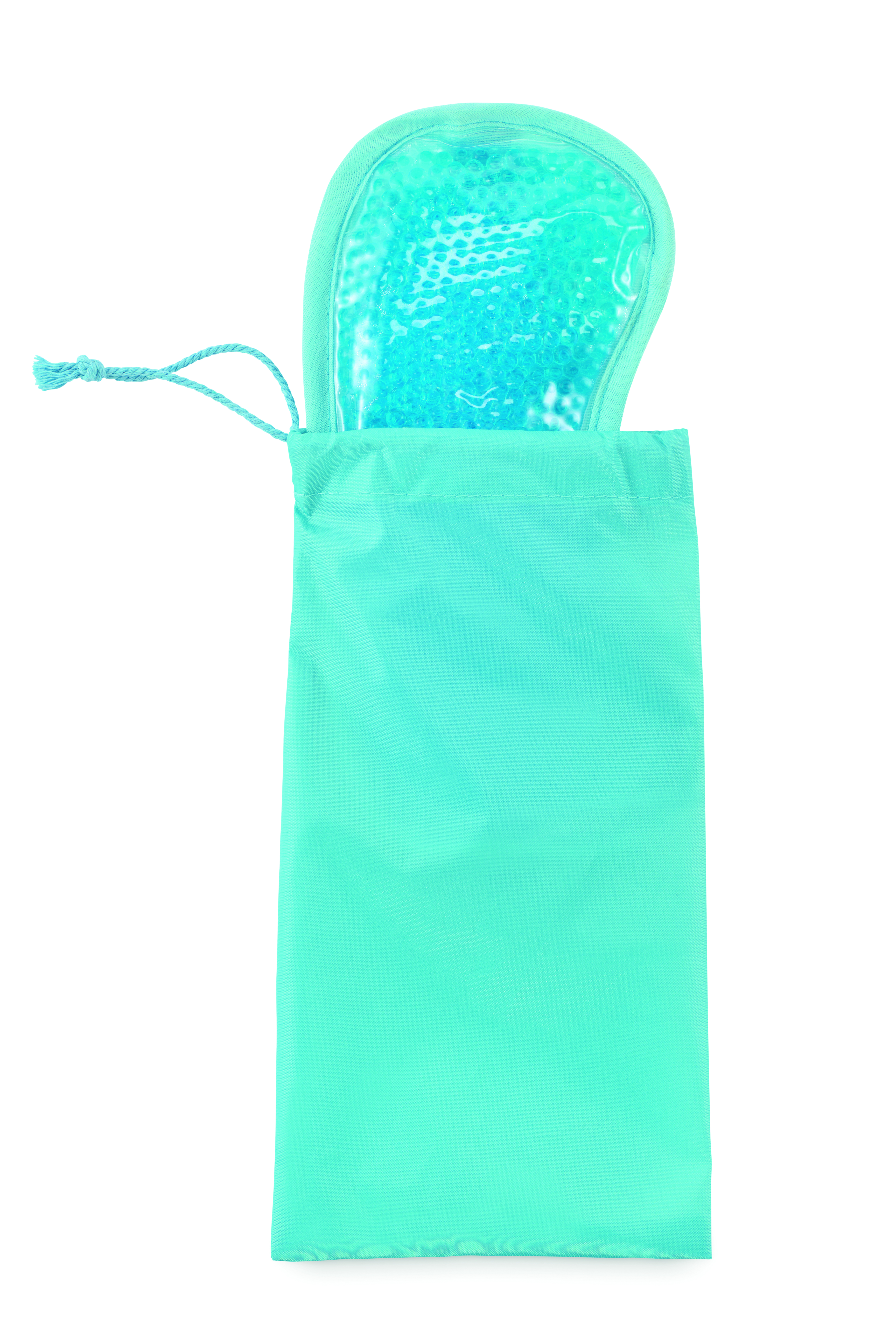 Dwustronna chłodząca maska na oczy wypełniona żelowymi kulkami w poliestrowym woreczku ze sznurkiem 190T.